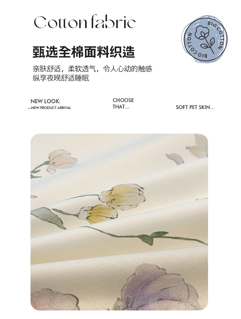 洺兰家居 2025新款高支高密轻奢数码印花四件套长绒棉纯棉四件套 盛晨-米