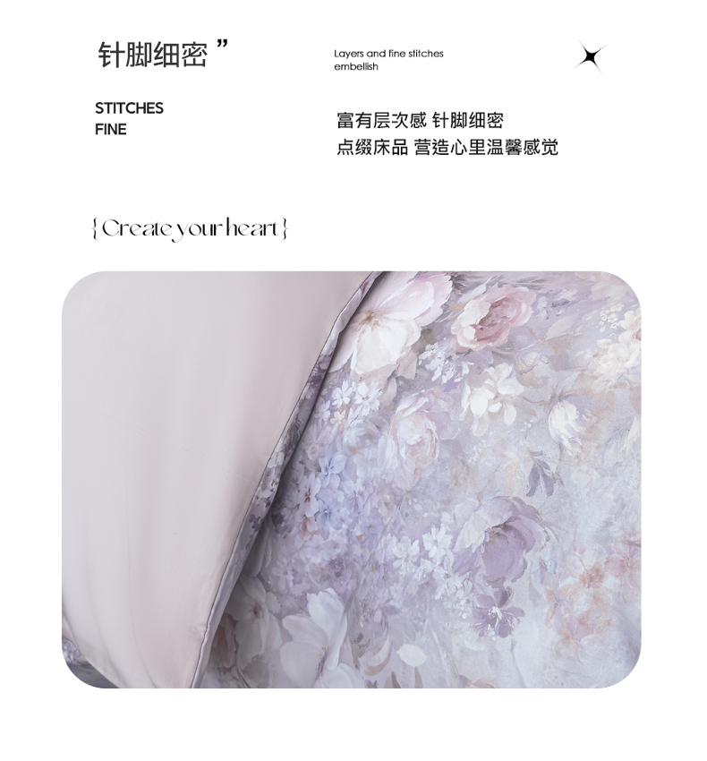 商品名称:洺兰家居 2025新款高支高密轻奢数码印花四件套长绒棉纯棉四件套 枝瑾-紫