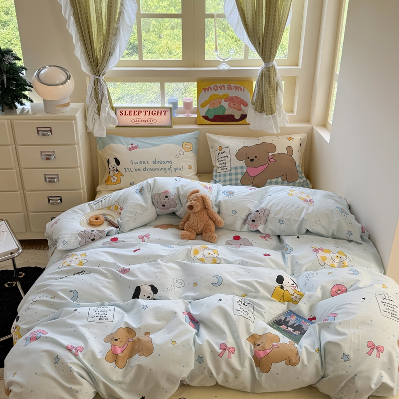 当前位置: 91家纺网 > 商品网购 > 床品套件 > 四件套 > 全棉普通四件套 > 觅糖家纺 2025新款开学季40支13370全棉纯棉斜纹四件套 腊肠狗咖