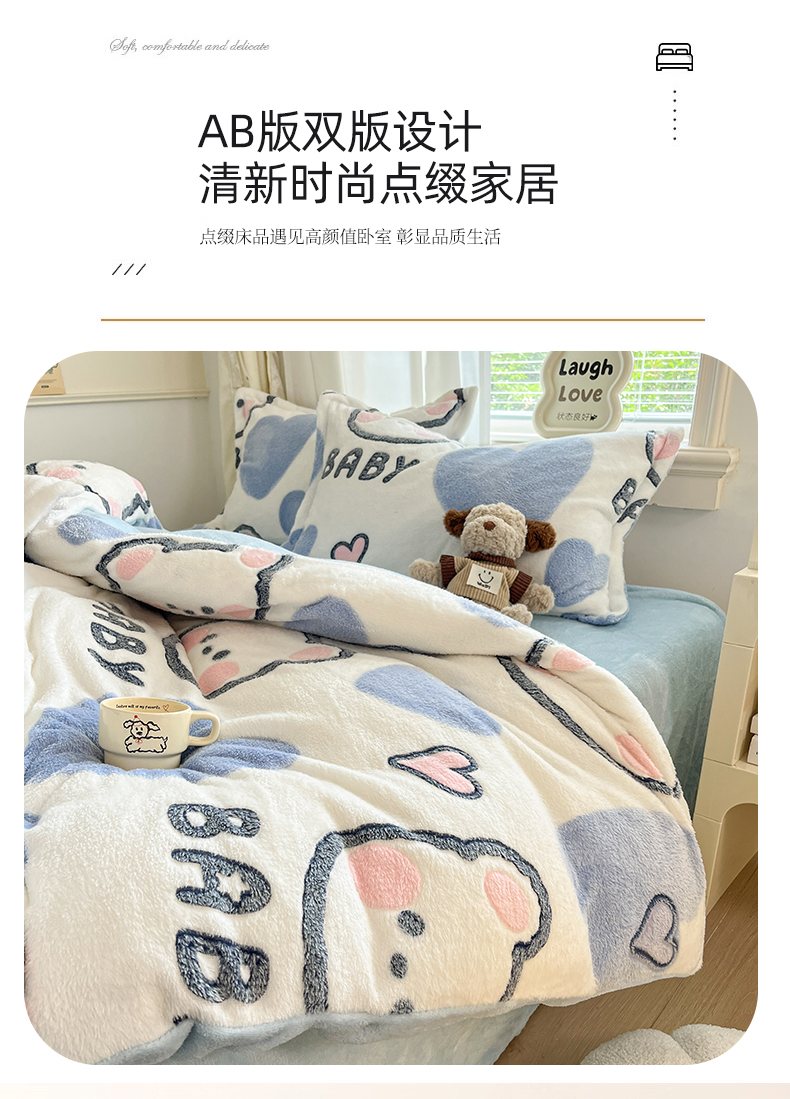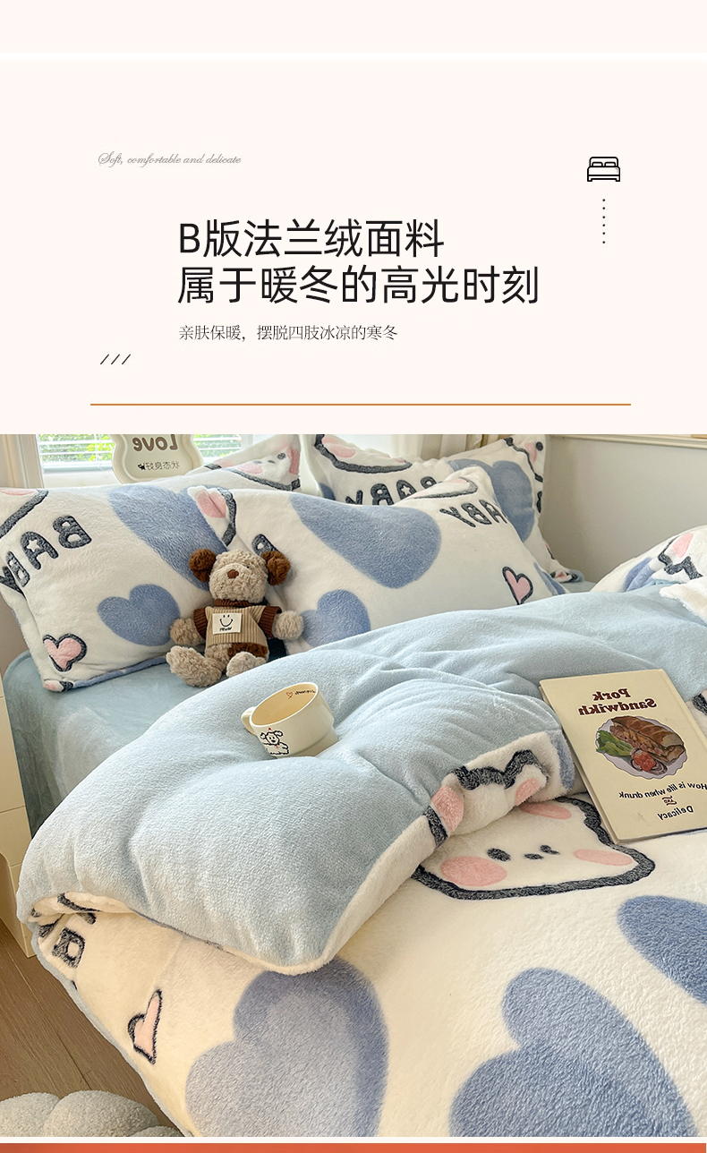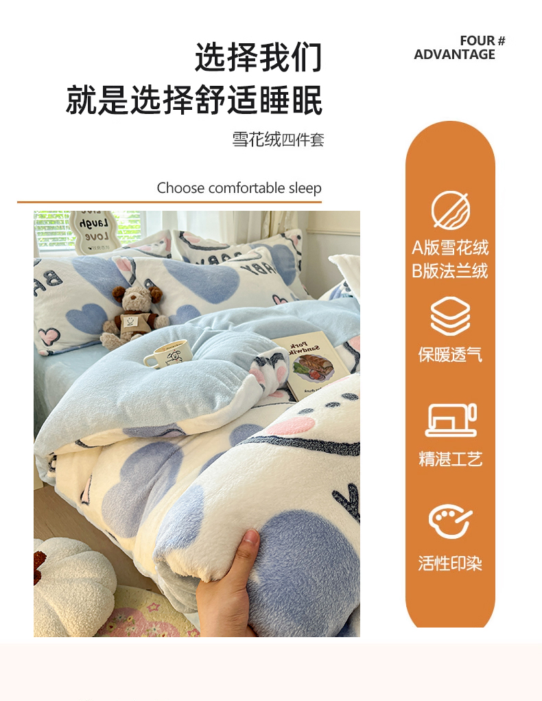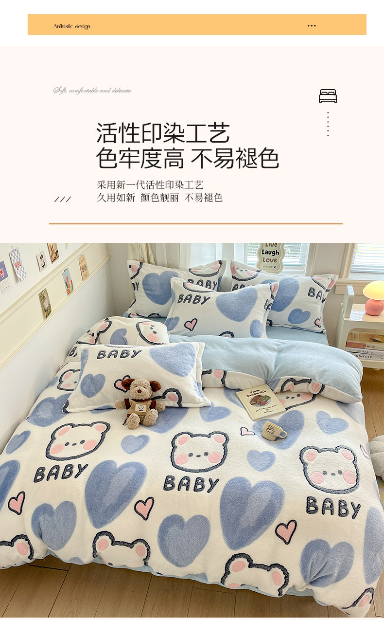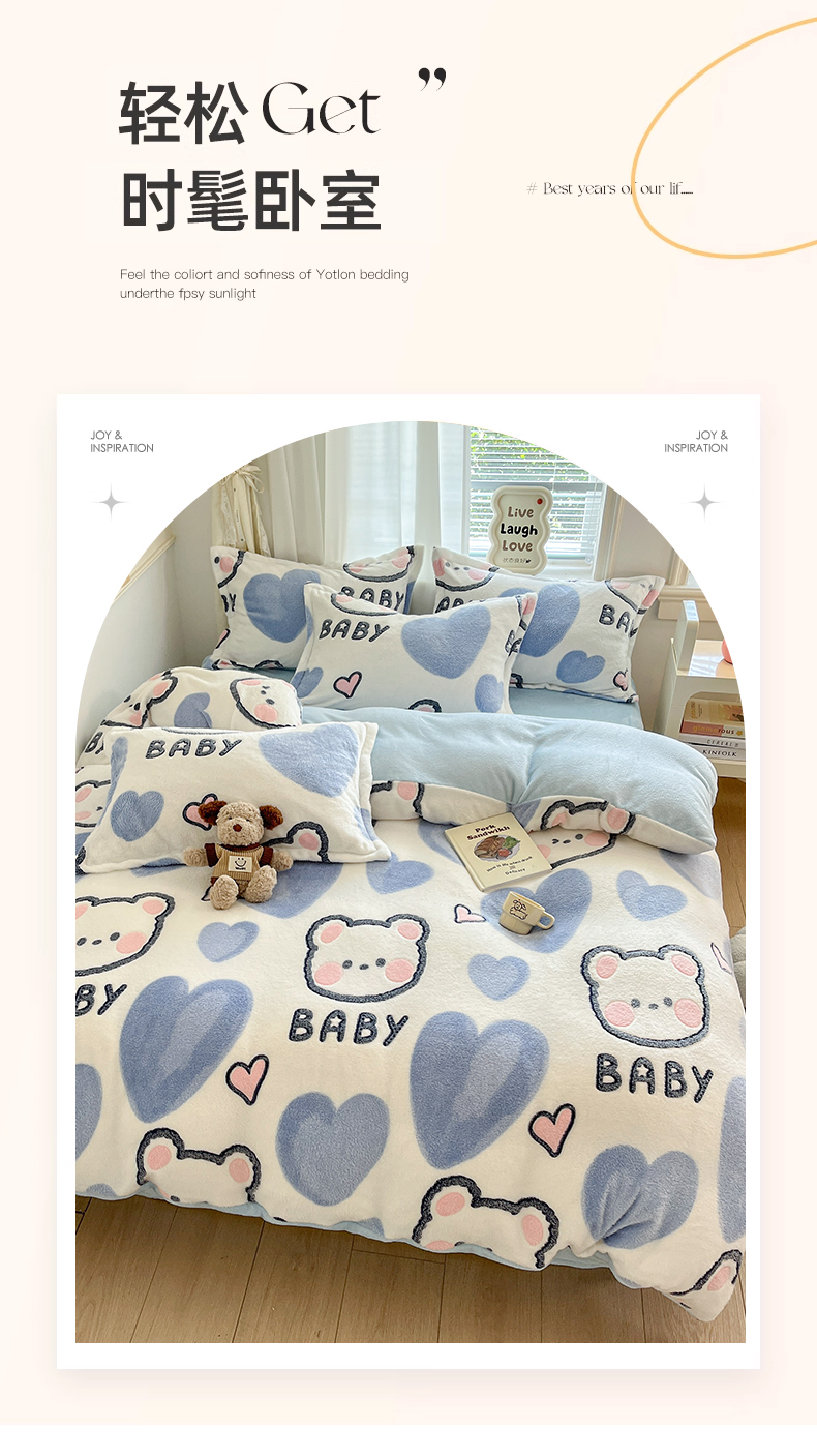 当前位置: 91家纺网 > 商品网购 > 床品套件 > 四件套 > 法莱绒四件套 > 川悦生活 2025新款立体雪花绒印花大床四件套系列一场景二 可爱熊