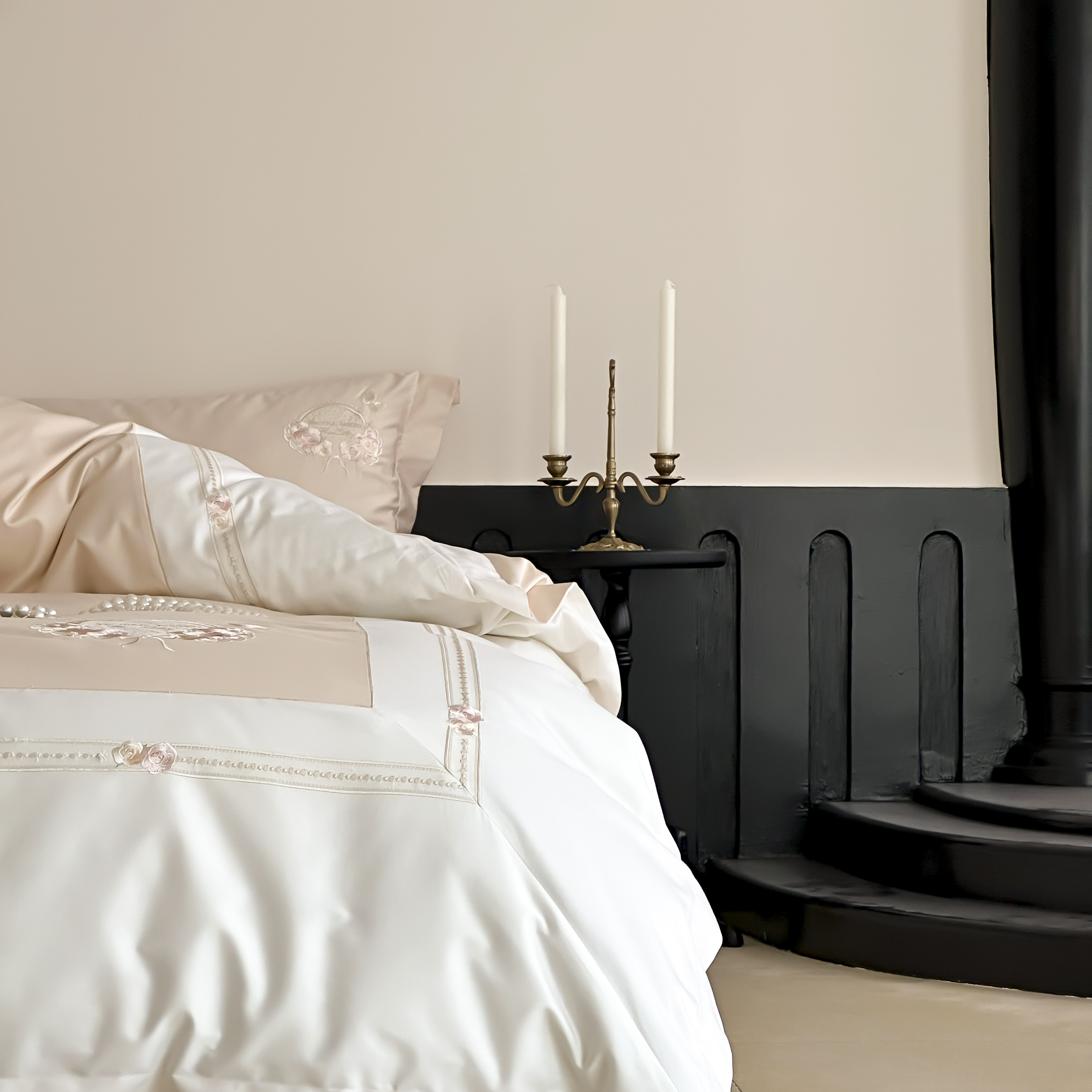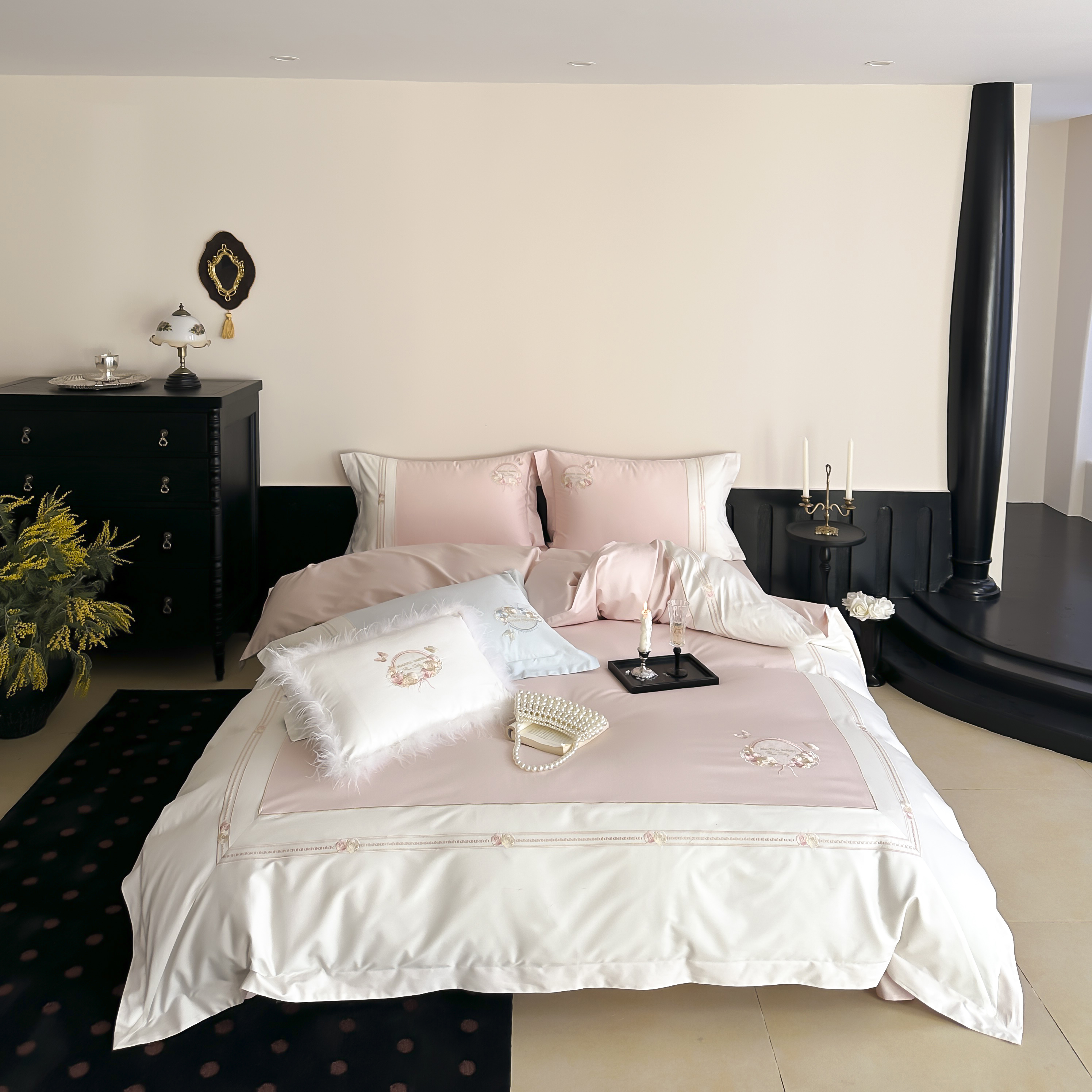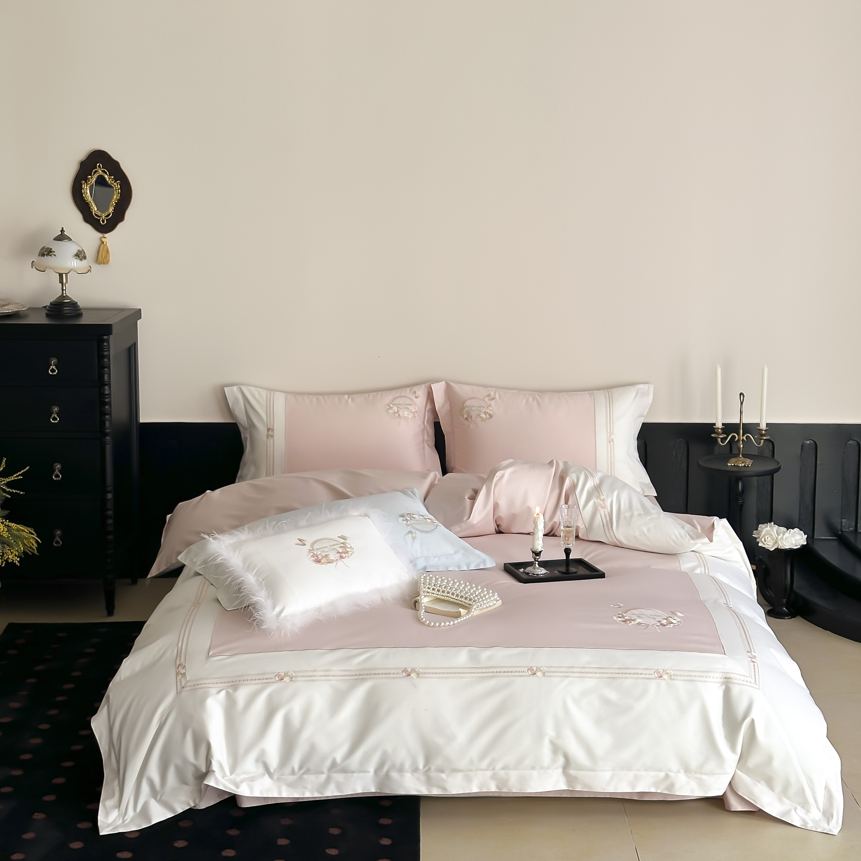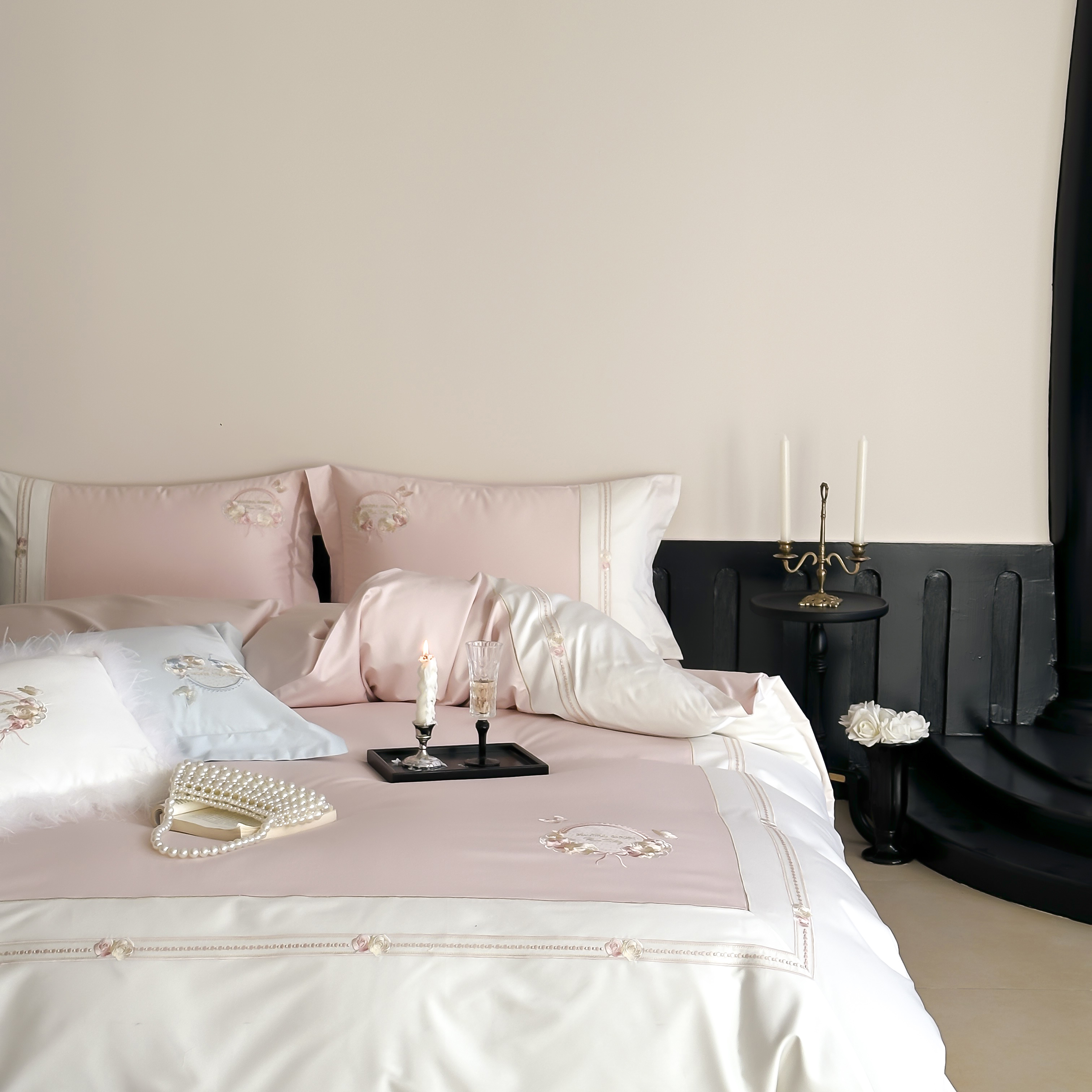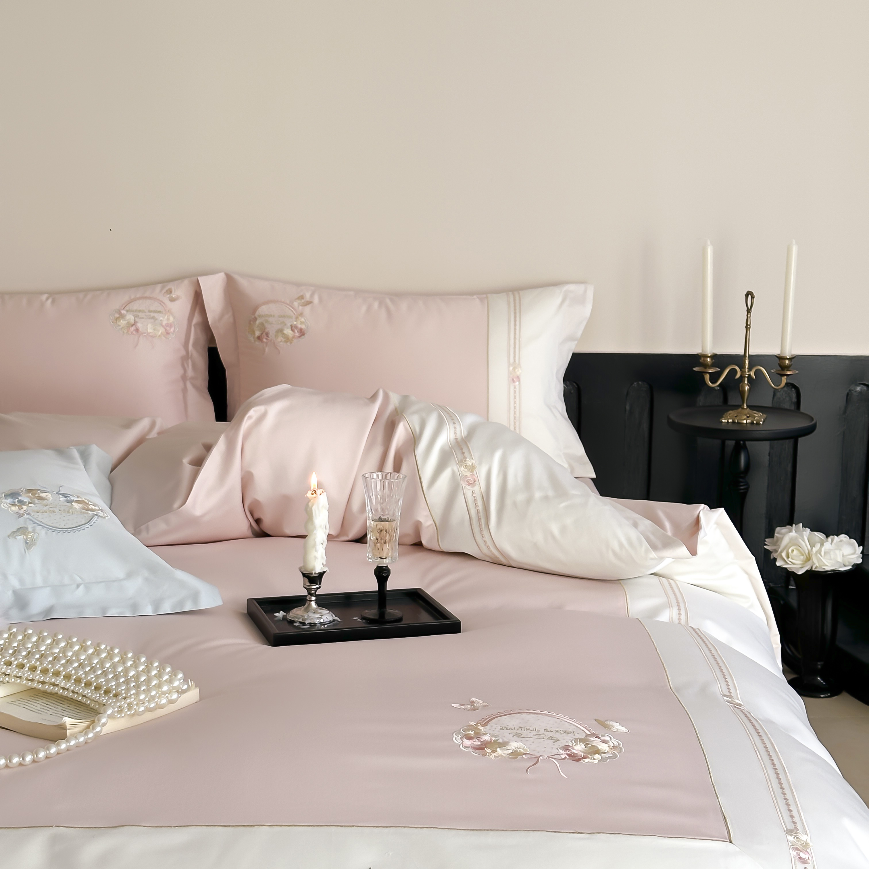 (总)初拾 2025新款230g牛奶绒“高级感“绣花四件套—曼岛邂逅,曼岛邂逅-奶油粉,曼岛邂逅-气质灰,曼岛邂逅-香槟