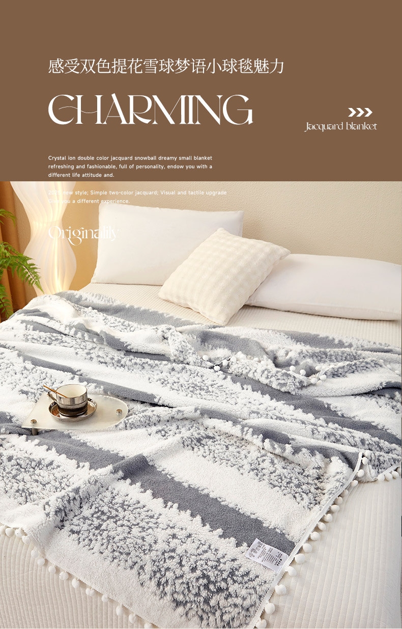 商品名称:肖恩毯业 2025新款阳离子双色提花雪球梦语小球毯 雪球梦语烟灰
