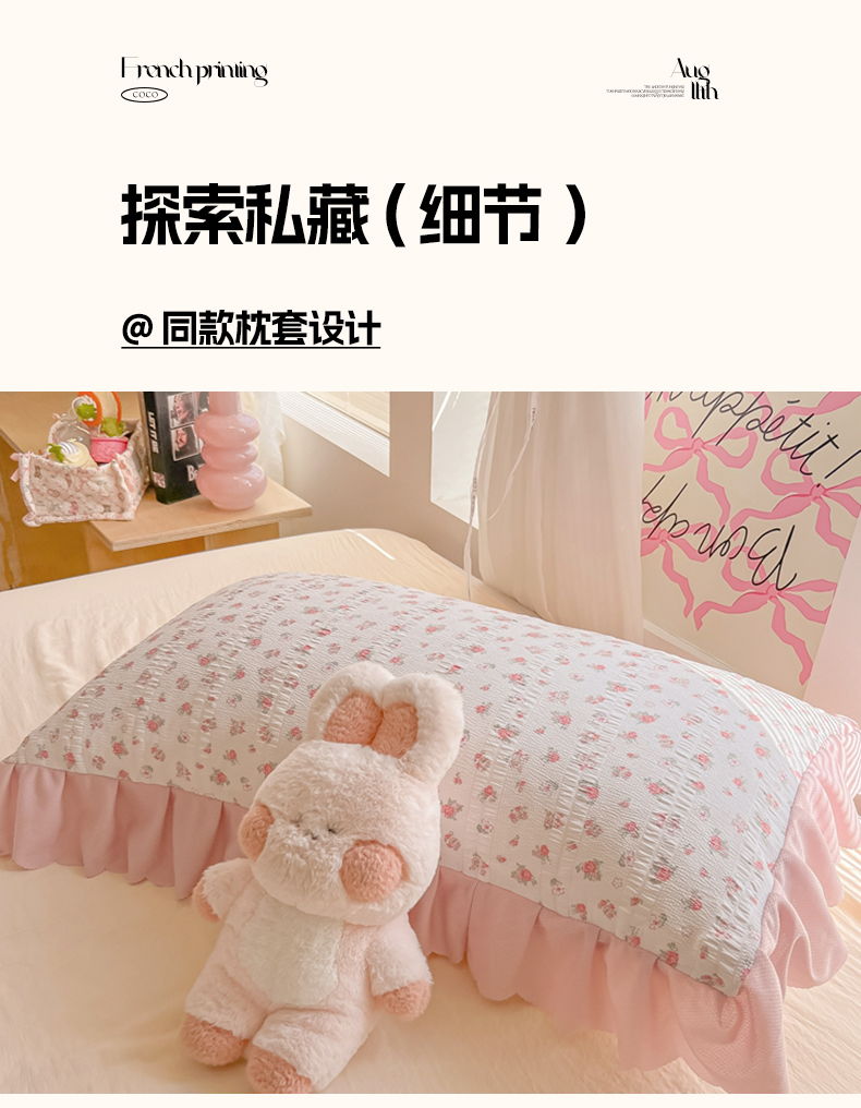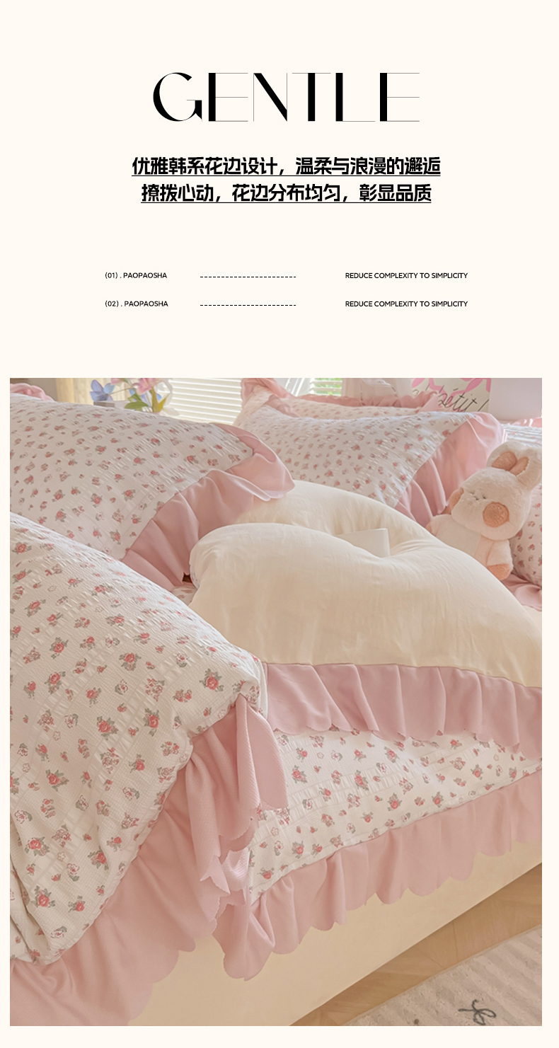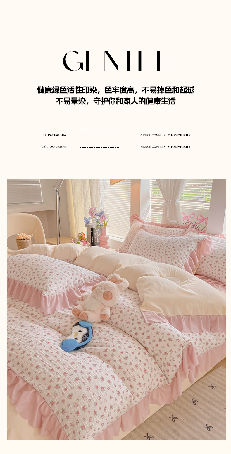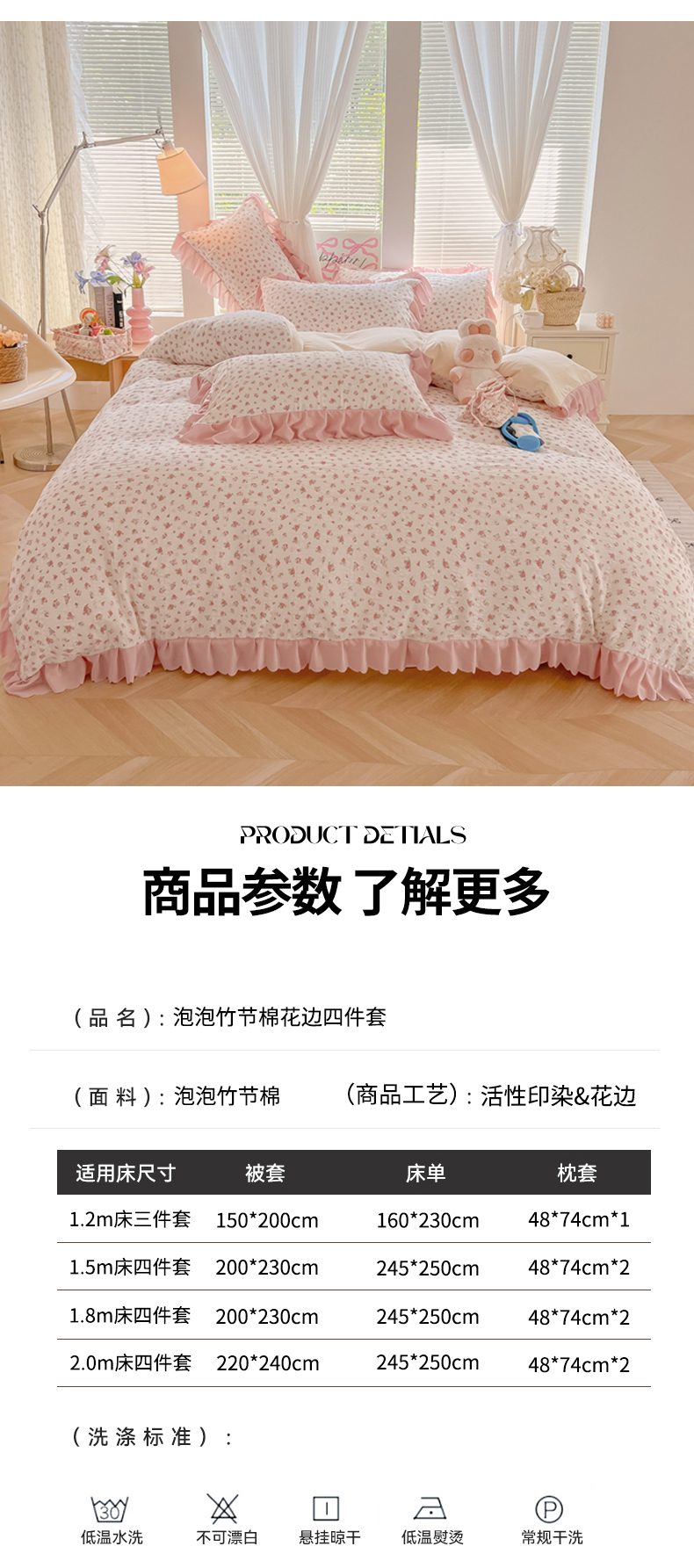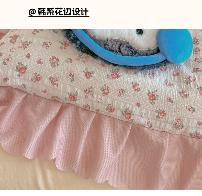 商品名称:(总)(含买家秀)2025年新款开学季泡泡棉小竹棉三件套学生季田园风花边款四件套床上用品