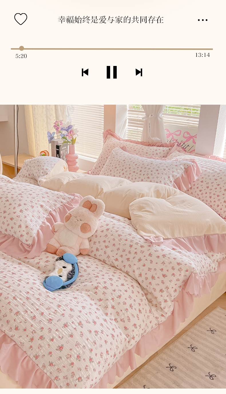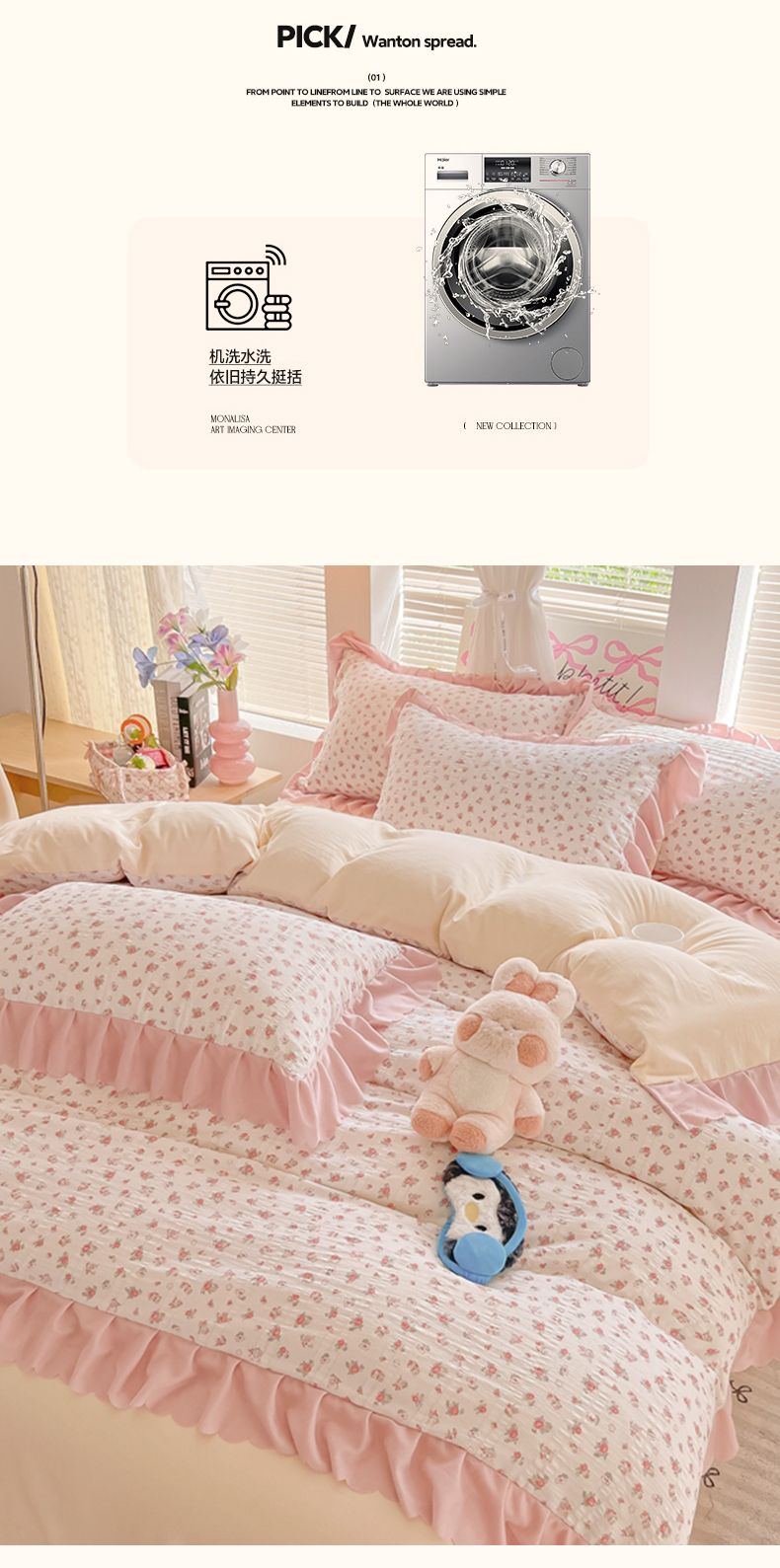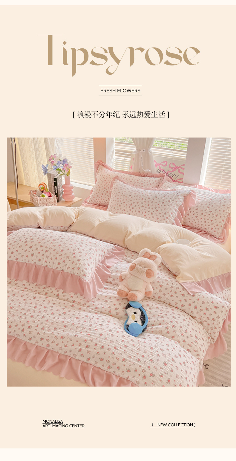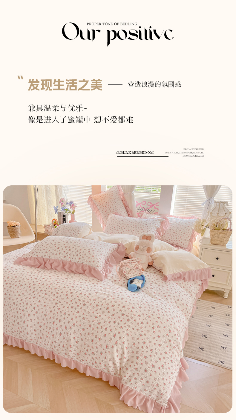商品名称:(总)(含买家秀)2025年新款开学季泡泡棉小竹棉三件套学生季田园风花边款四件套床上用品