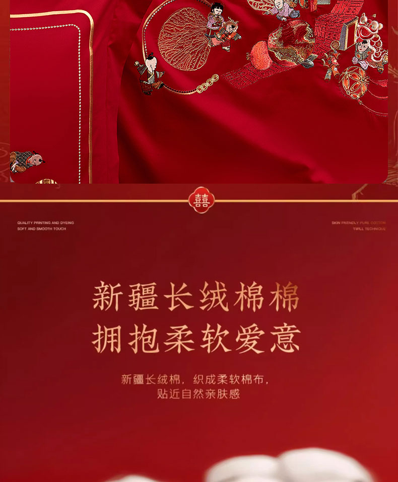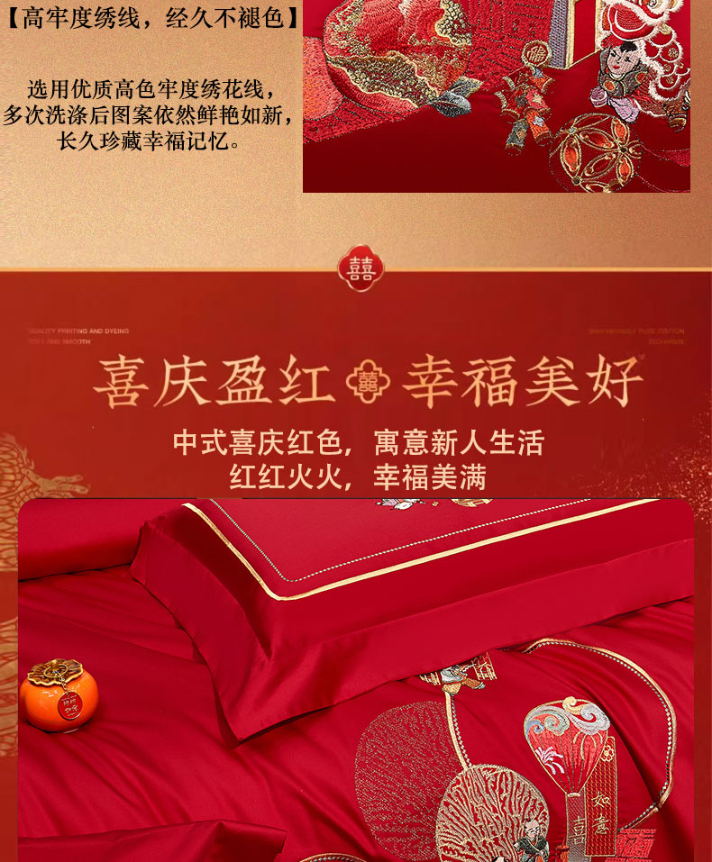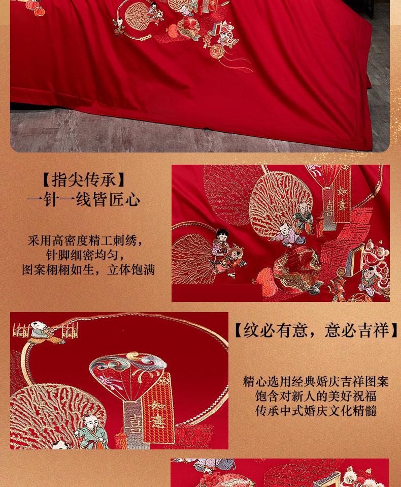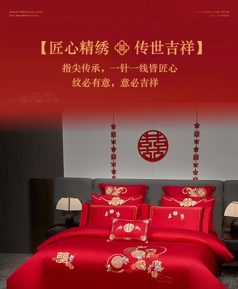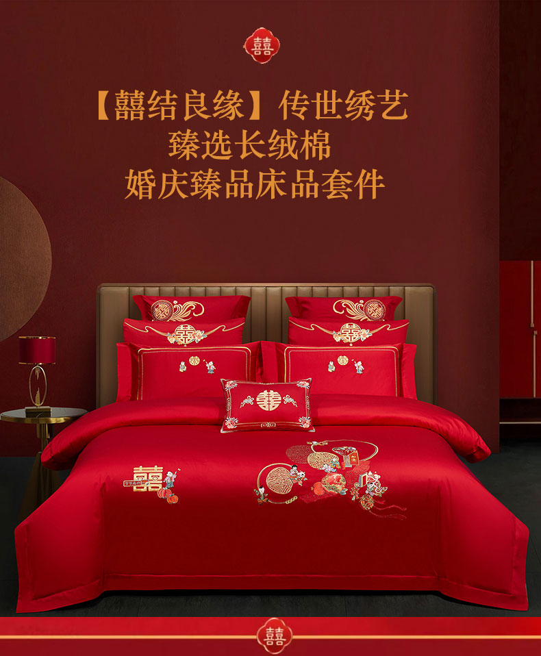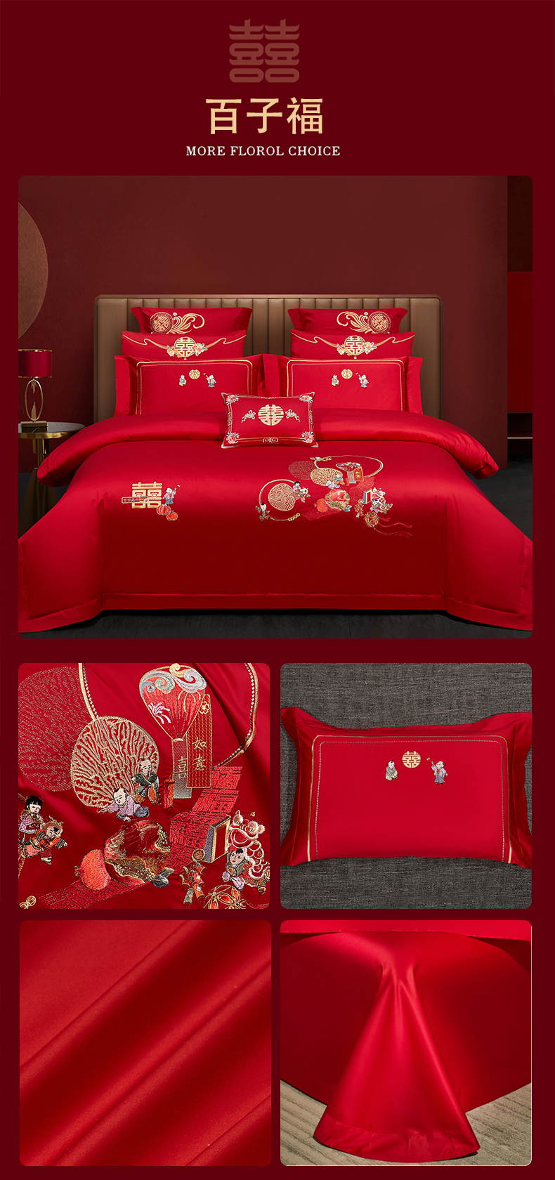 当前位置: 91家纺网 > 商品网购 > 床品套件 > 四件套 > 婚庆四件套 > 蒂爵 2025新款婚庆长绒棉时尚小红书爆款刺绣婚庆四件套多件套-无提花款 百子福