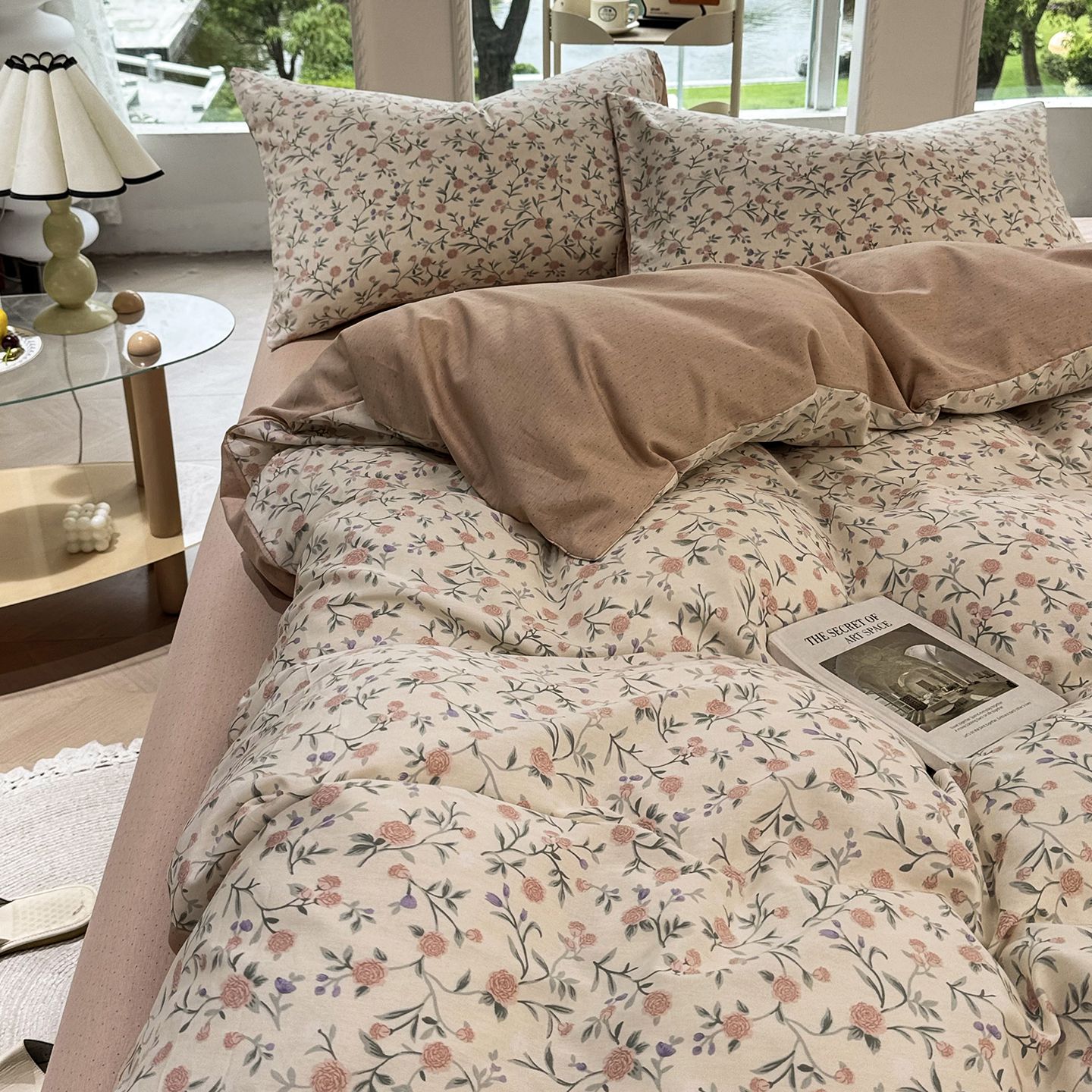 商品名称:缦纱2025新款全棉小清新喷气13372印花40支纯棉四件套 荷韵-咖