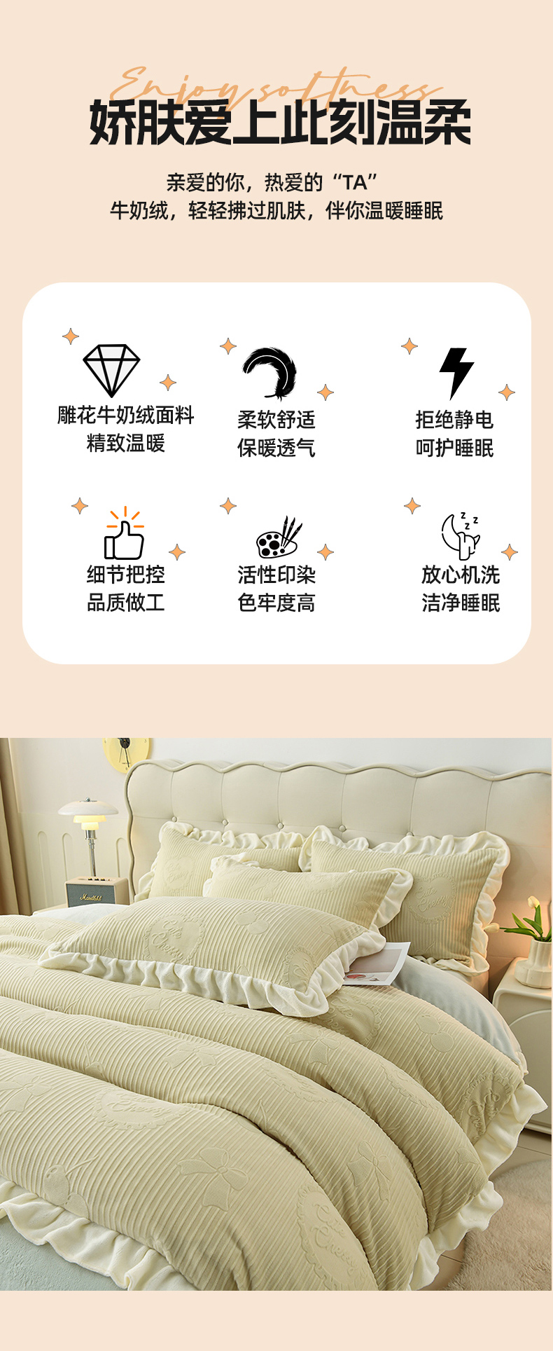 (总)千嘻汇家纺 2025新款8.5斤韩版雕花牛奶绒四件套,甜蜜蜜粉色,甜蜜蜜蓝色,甜蜜蜜米色,甜蜜蜜青色,甜蜜蜜紫色