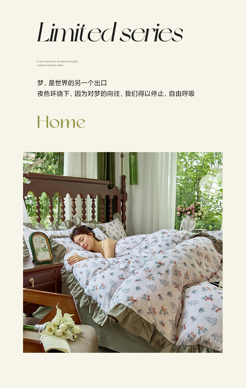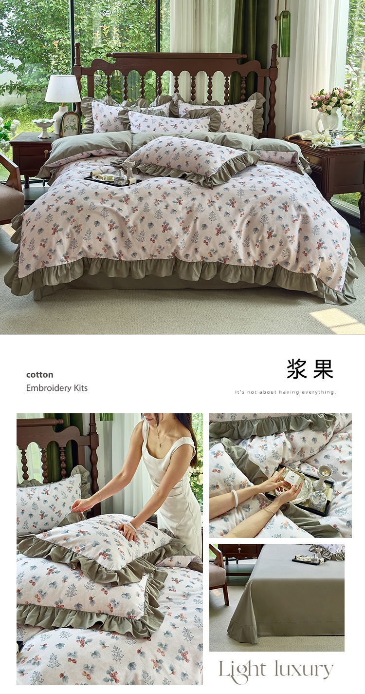 当前位置: 91家纺网 > 商品网购 > 床品套件 > 四件套 > 普通磨毛四件套 > 未来家居 2025秋冬新款全棉法式花边款磨毛四件套 浆果