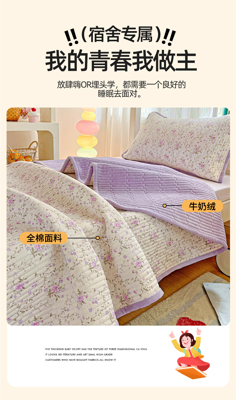 当前位置: 91家纺网 > 商品网购 > 床垫/床褥 > 普通床垫 > 恒尚居 2025新款纯棉牛奶绒学生床垫 双面两用夹棉床单床垫-秋冬款四季通用-系列一 【熏衣紫】A纯棉-B牛奶绒
