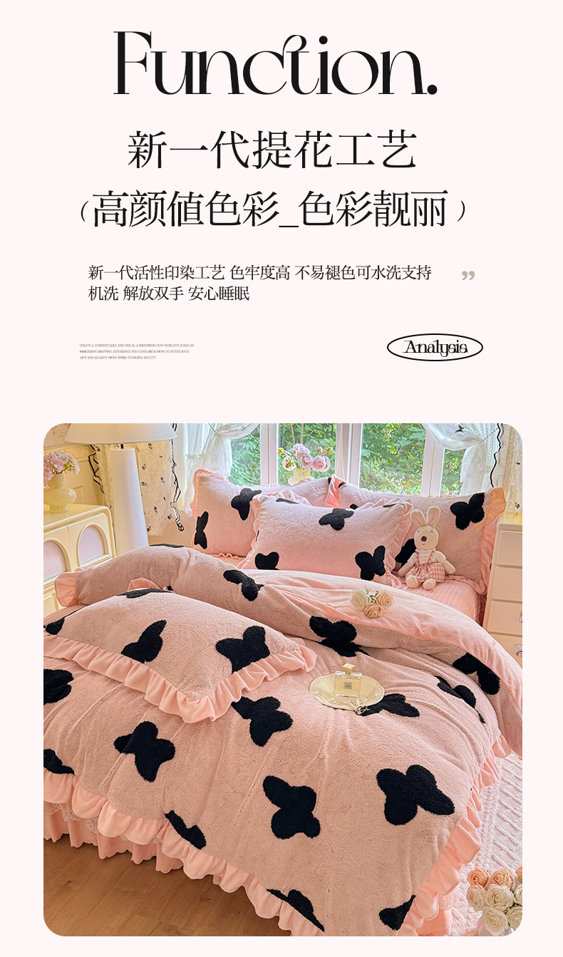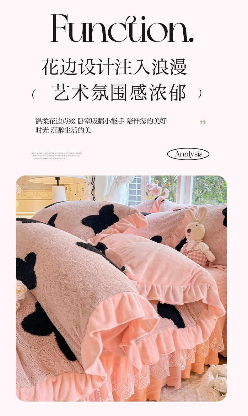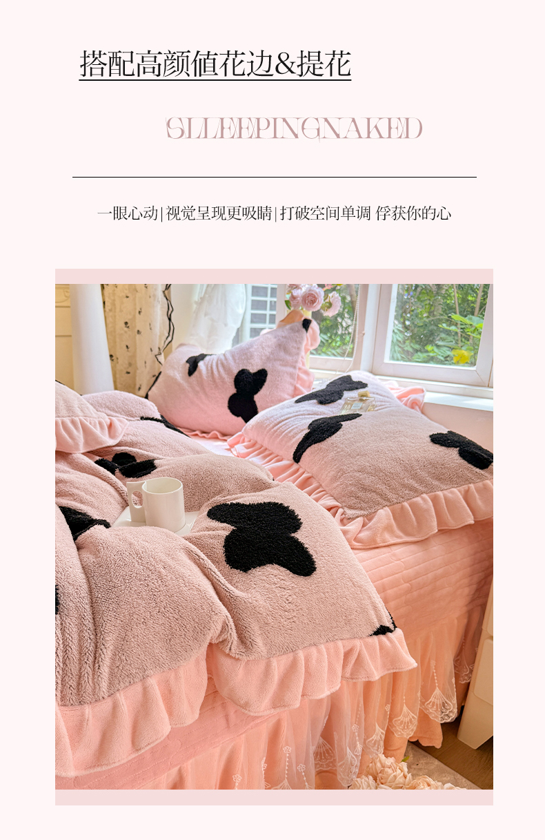 商品名称:(总)唐人居 2025新款高克重阳离子牛奶绒花边夹棉床盖四件套