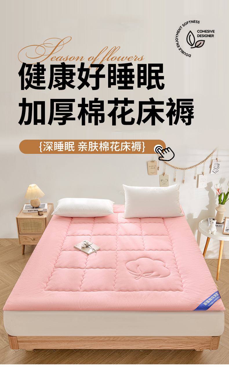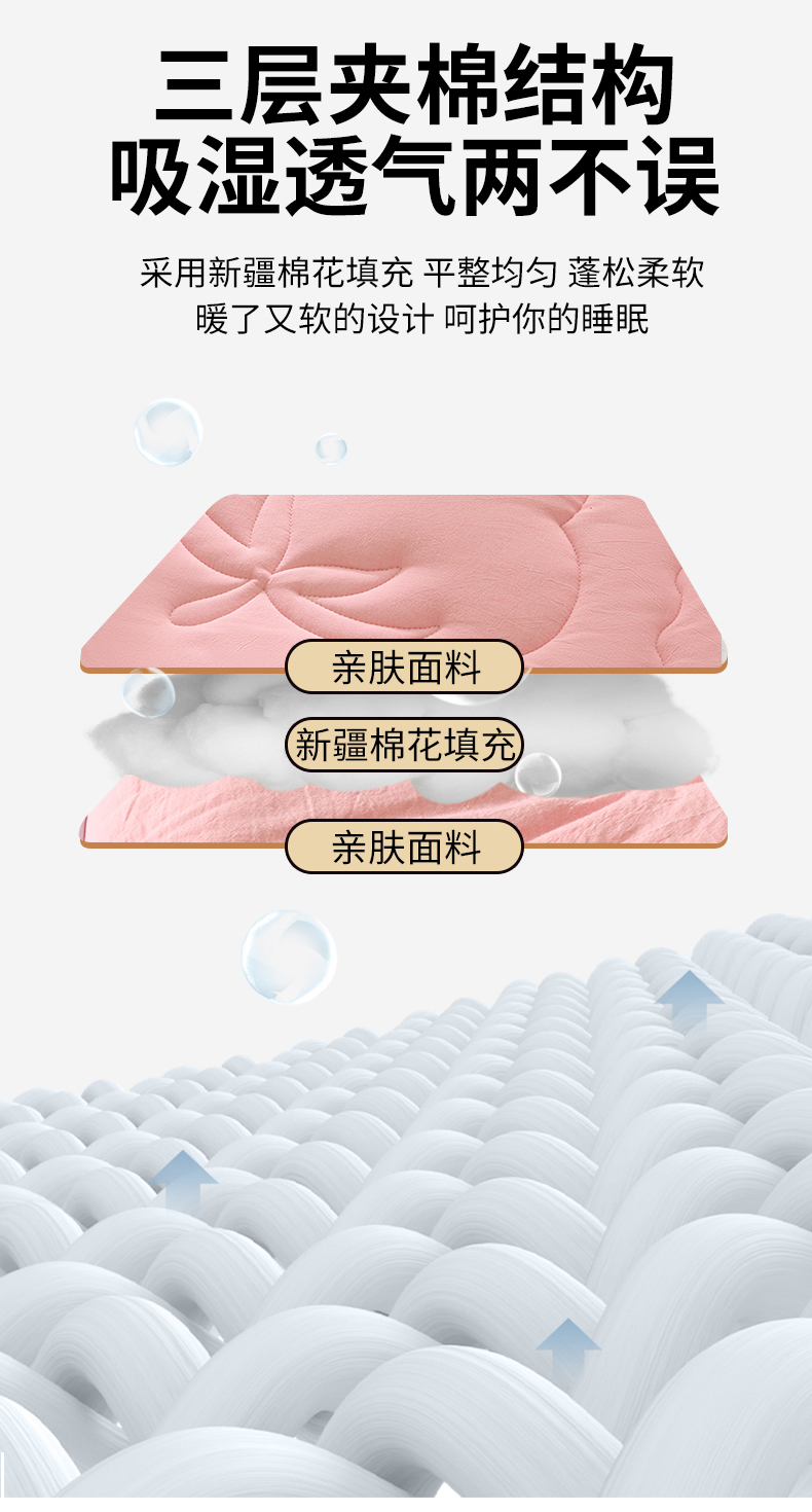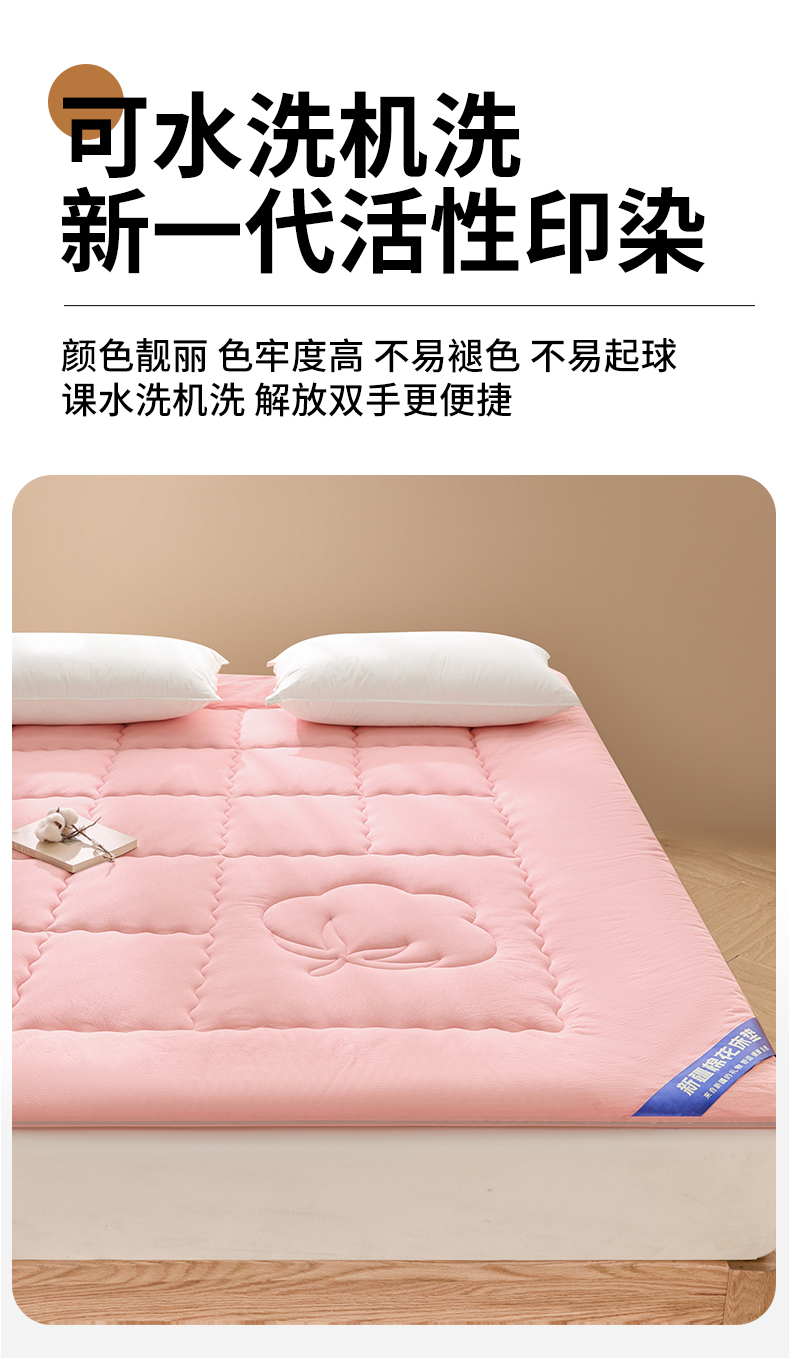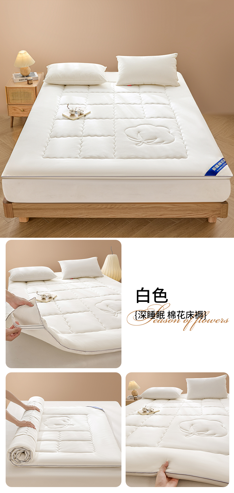 (总)悠米悠家 2025新款亲肤加厚棉花夹棉床褥,白色,粉色,灰色,蓝色