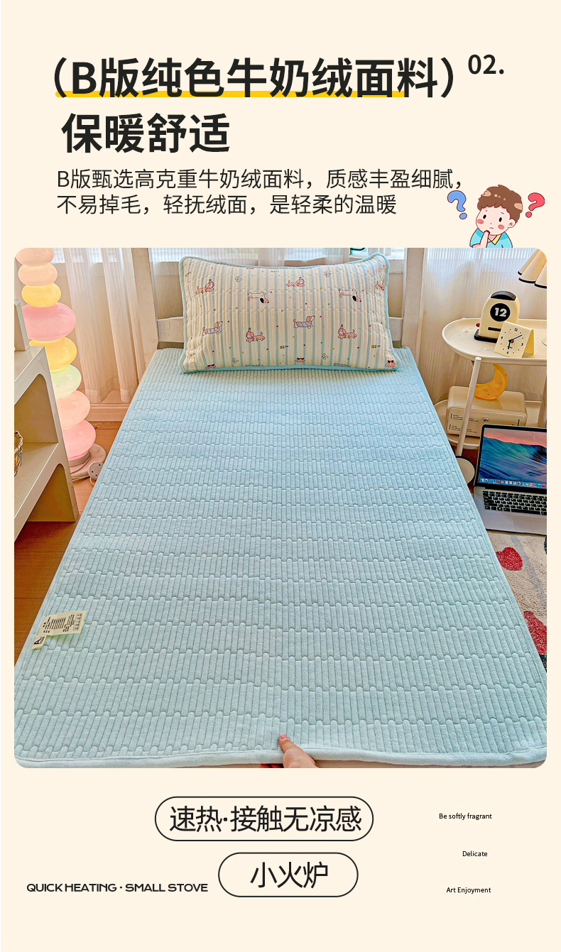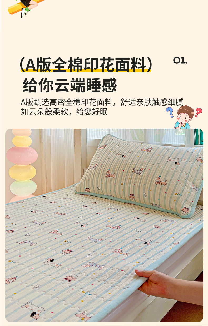 当前位置: 91家纺网 > 商品网购 > 床垫/床褥 > 普通床垫 > 恒尚居 2025新款纯棉牛奶绒学生床垫 双面两用夹棉床单床垫-秋冬款 四季通用-系列二 【机灵旺仔】-A纯棉-B牛奶绒