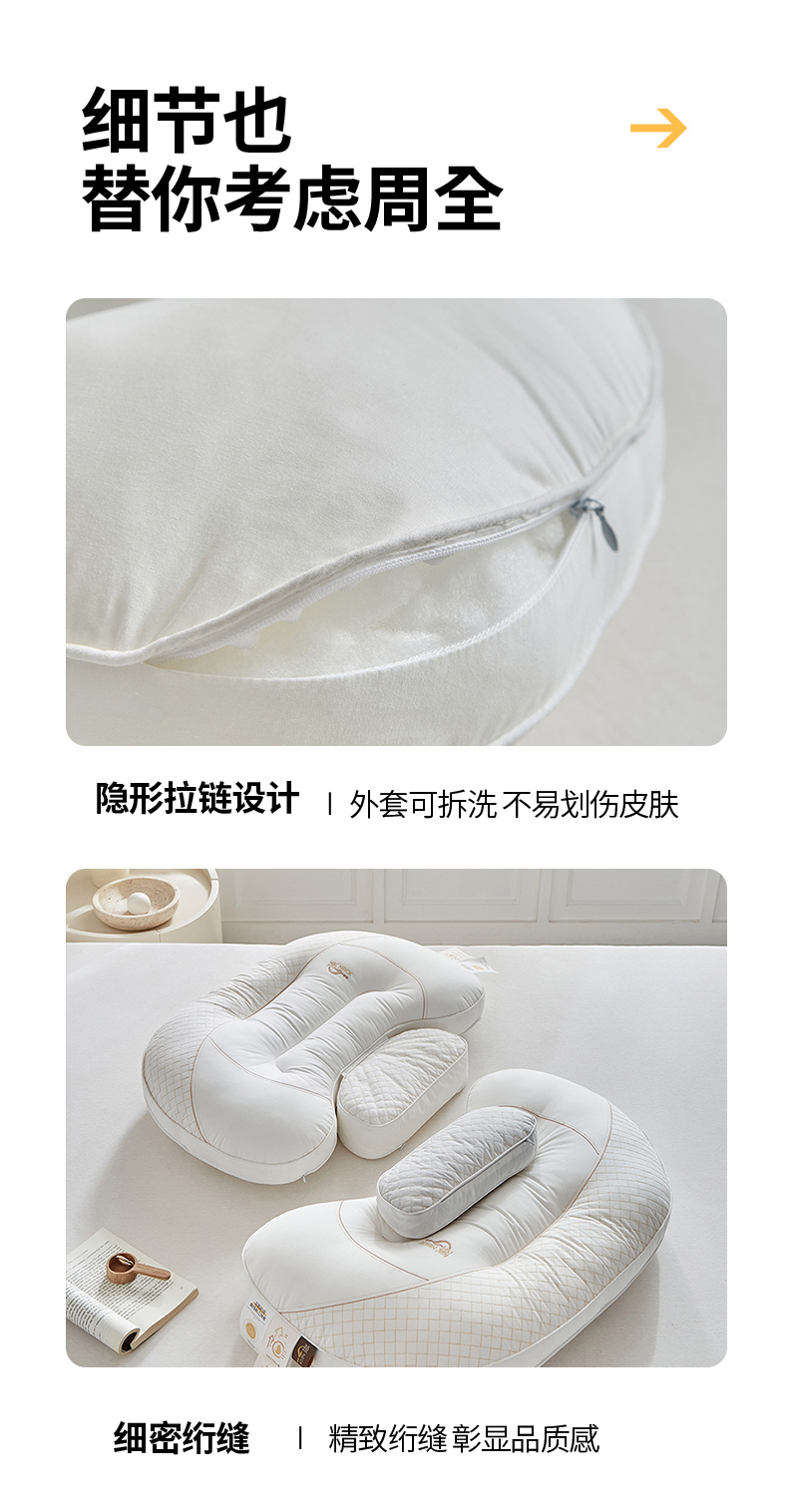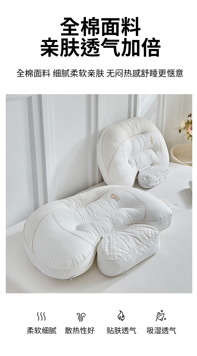 (总)梵希良品 2024新款纯棉双层三合一护颈枕助睡眠枕头枕芯40*60cm,双层三合一护颈枕800g,双层三合一护颈枕900g,双层三合一护颈枕1000g