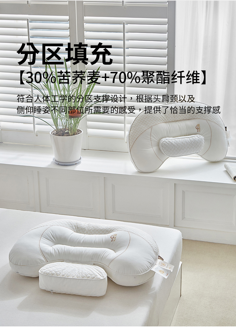 商品名称:(总)梵希良品家纺 2025新款全棉分区荞麦护颈枕亲肤透气枕头解压深睡枕芯