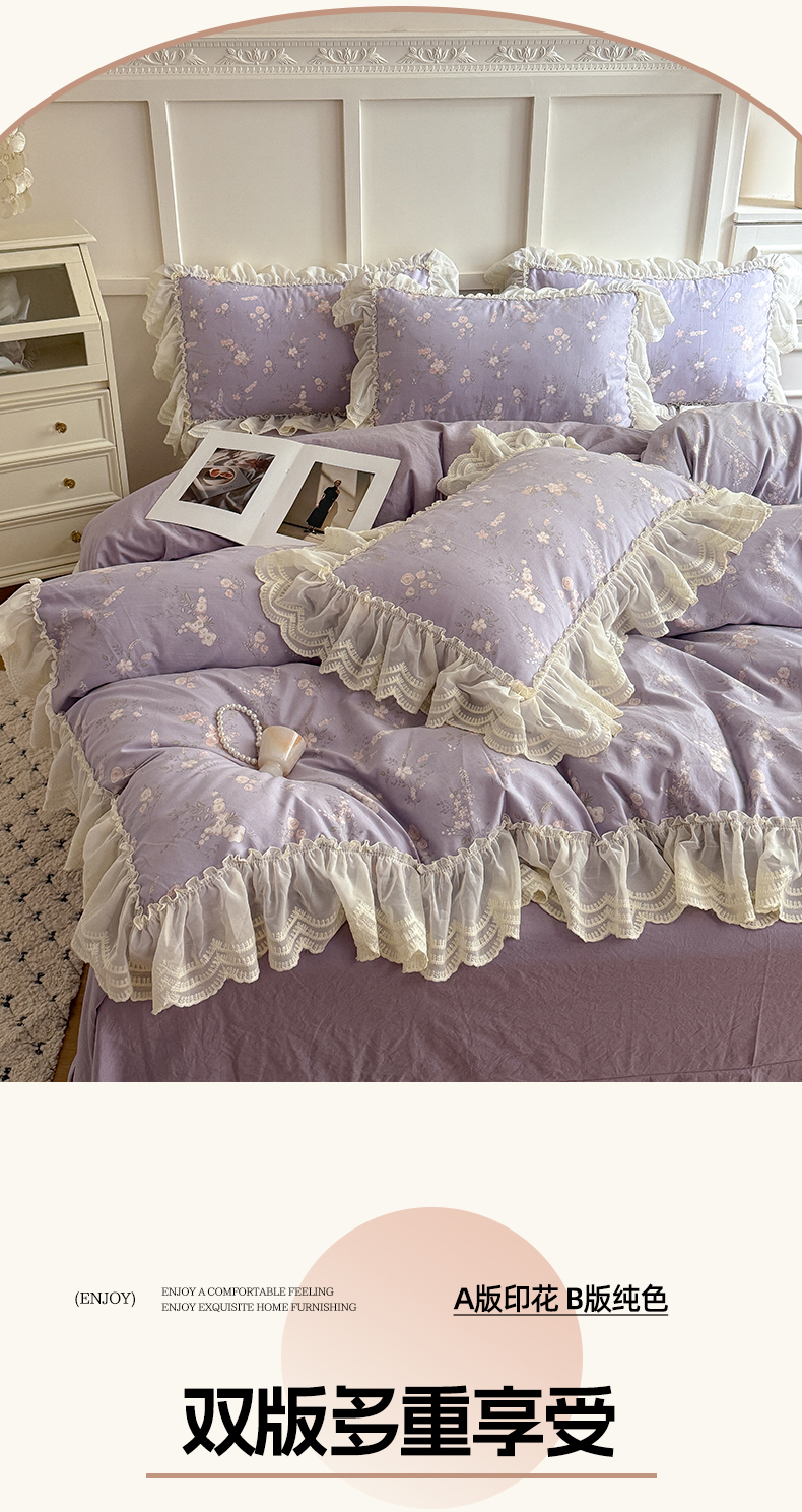 (总)吾欢心 2026春夏新款古法水洗仿棉韩版双层花边四件套,KT猫,斑马,彩色蝴蝶结,卡通小狗,可爱星星人,萌宠宝贝,秘境花园,奶萌小狗,田园趣味,汐颜,小草莓,樱桃派