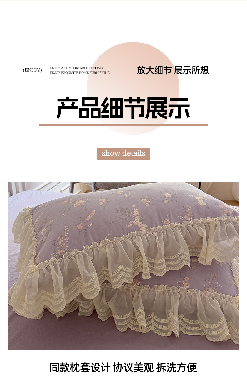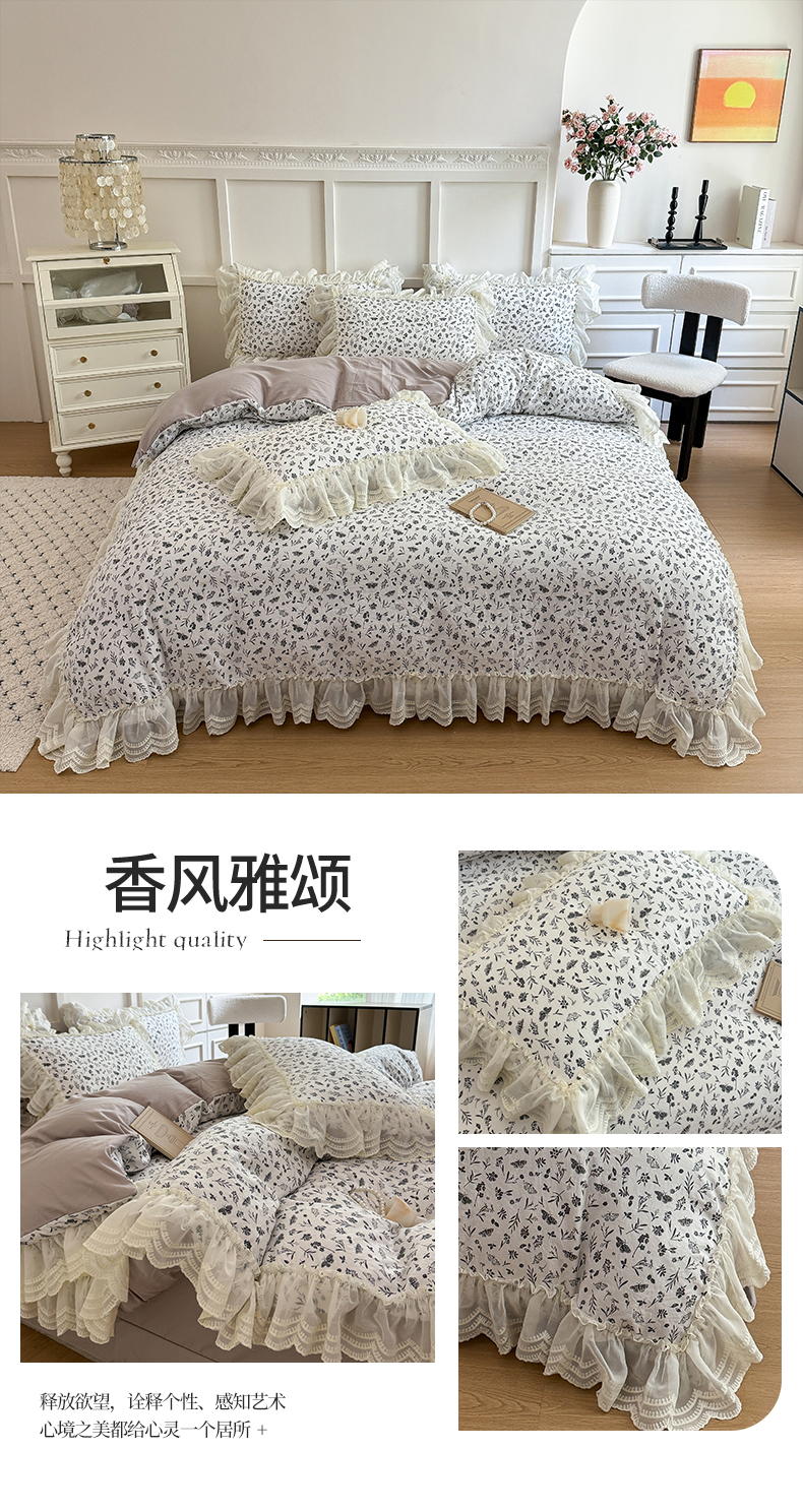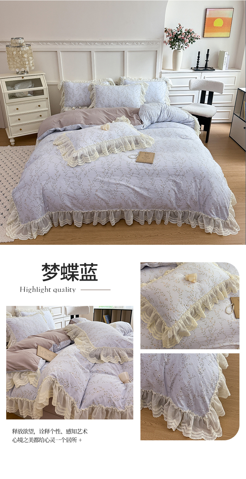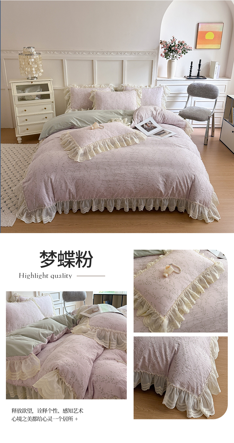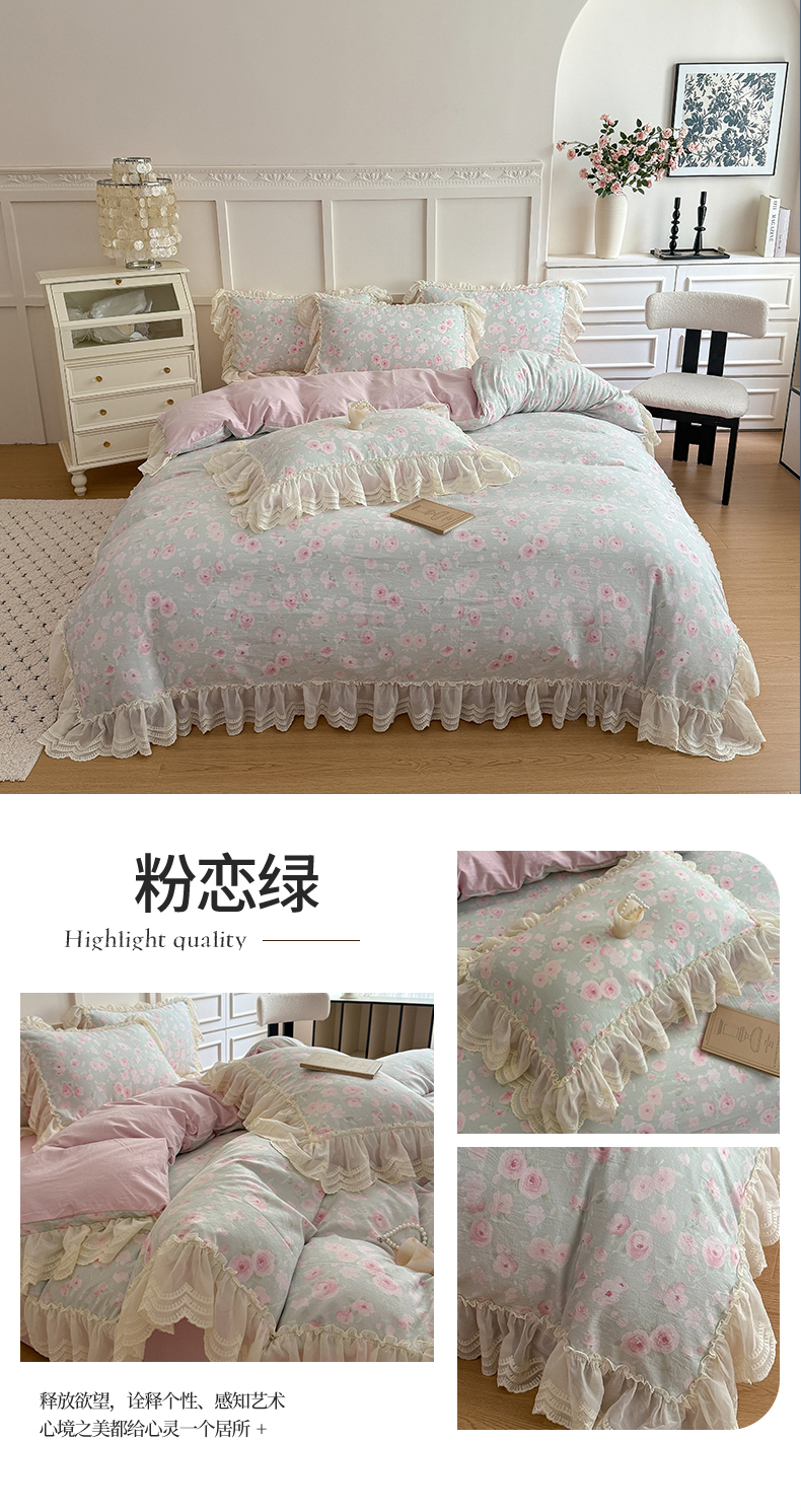 商品名称:吾欢心 2025新款韩版蕾丝花边加厚原棉四件套 粉恋绿