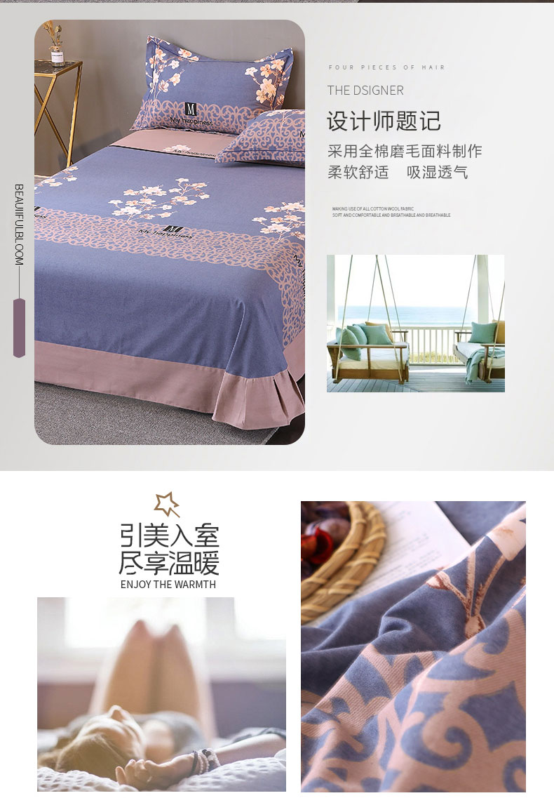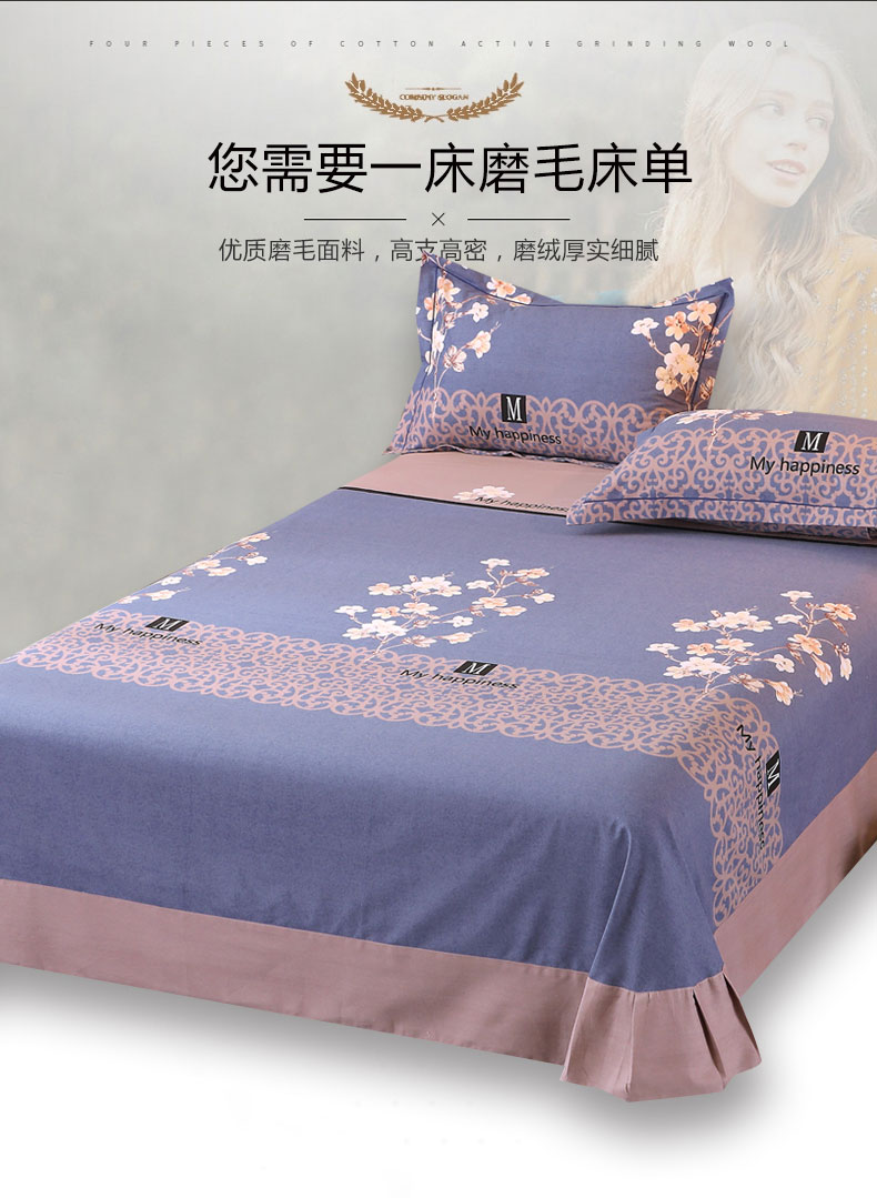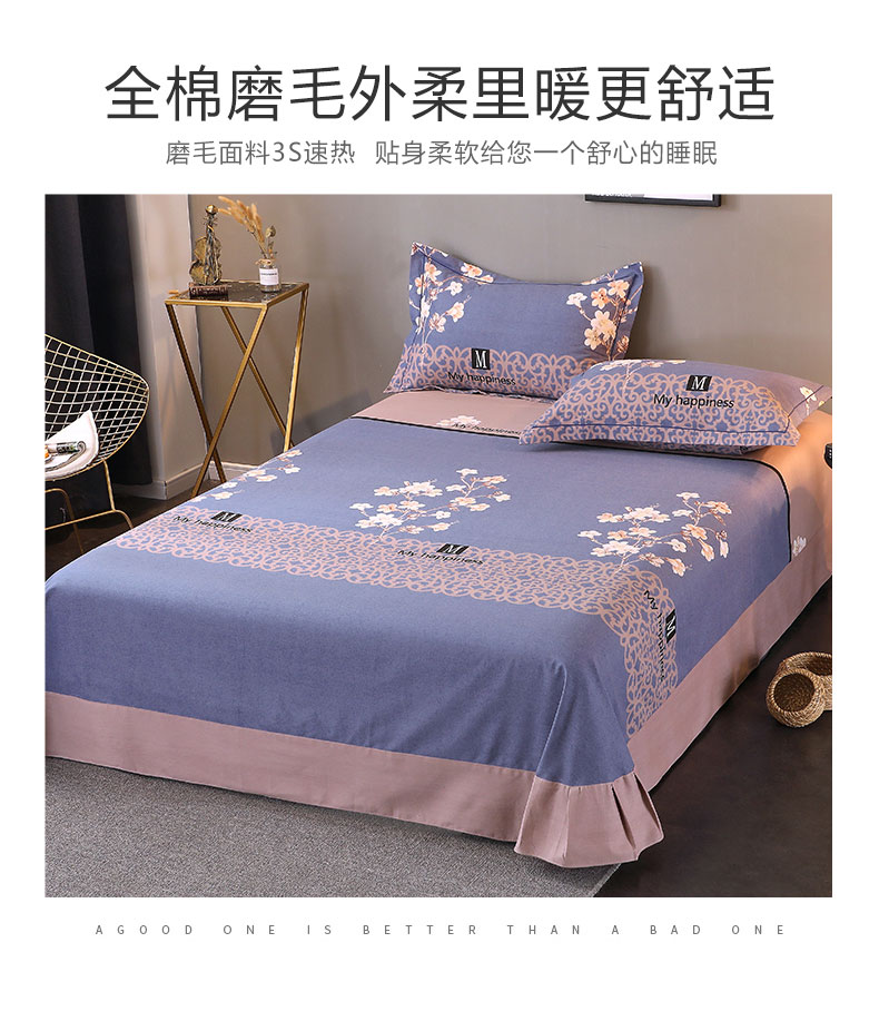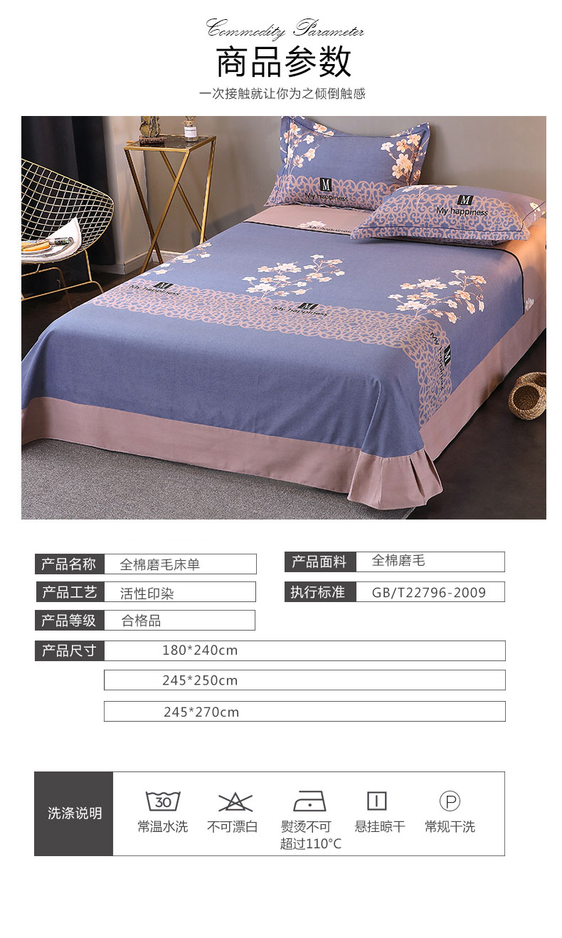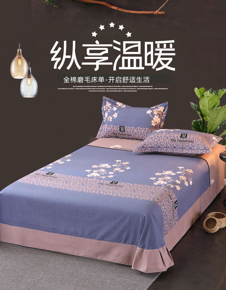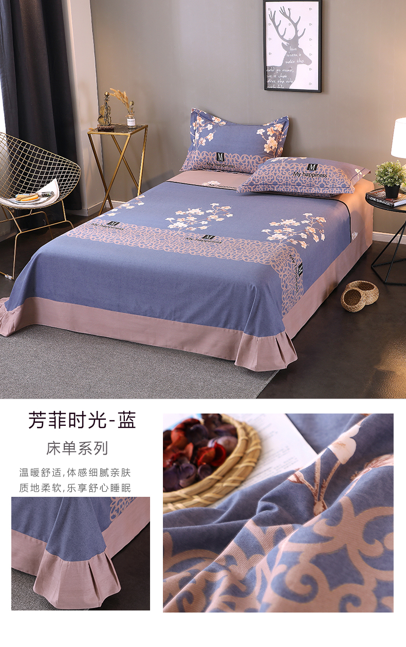 商品名称:馨雅家纺 2025新款全棉纯棉磨毛系列床单单品床单单件单床单 芳菲时光-蓝