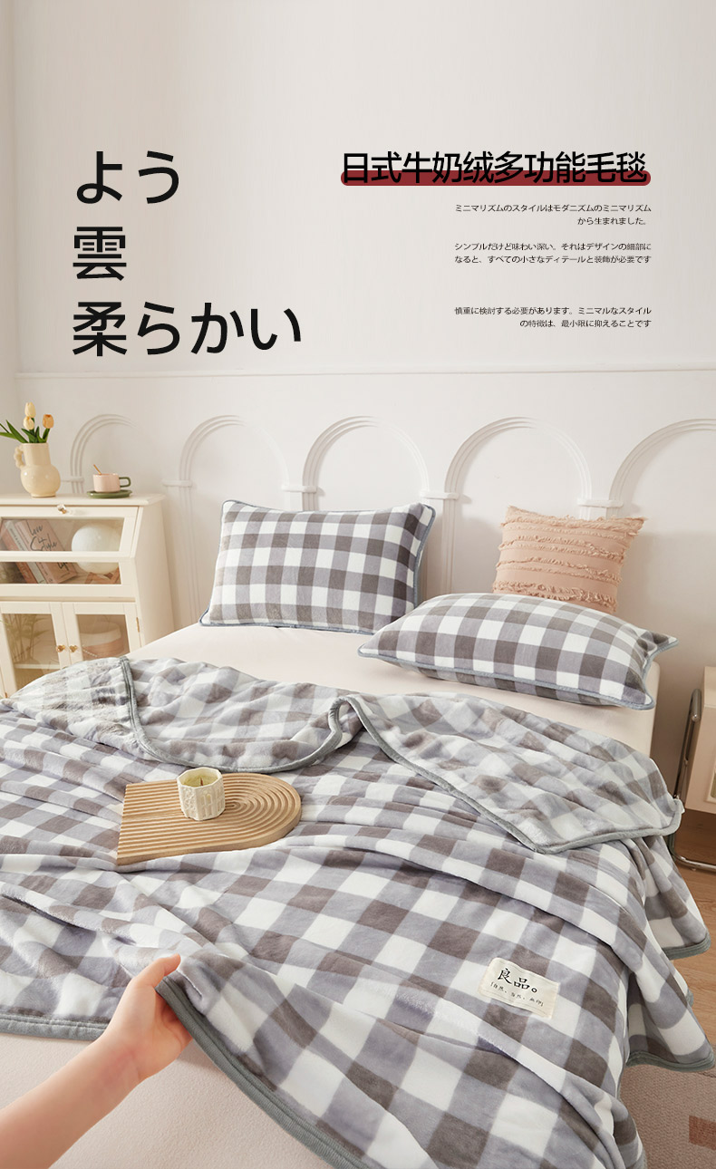 当前位置: 91家纺网 > 商品网购 > 毛毯休闲毯绒毯 > 珊瑚绒毯 > 悦织湾家纺 2025新款牛奶绒毛毯高克重日式良品盖毯毯子办公室休闲沙发毯跨境专供外贸出口 灰大格