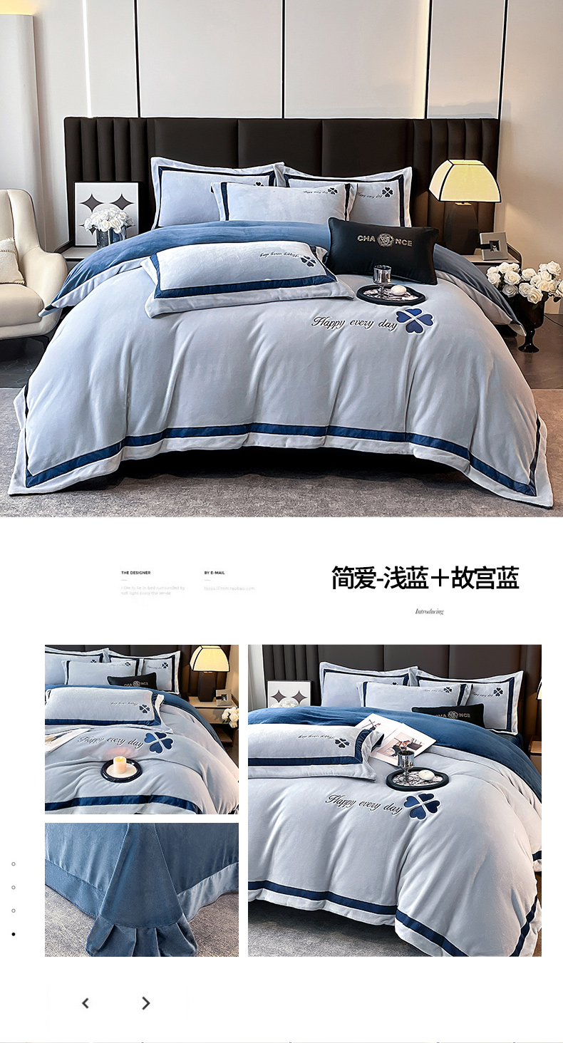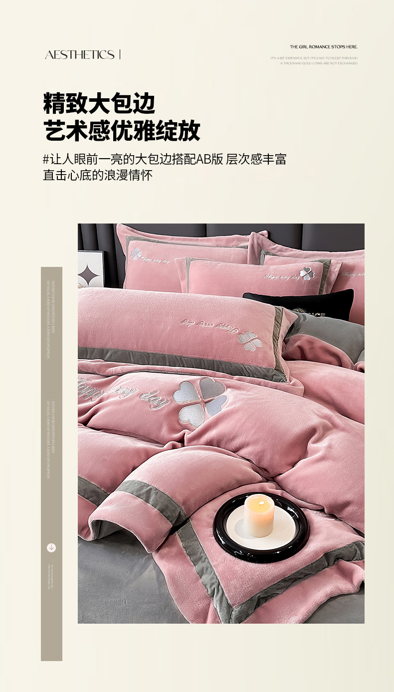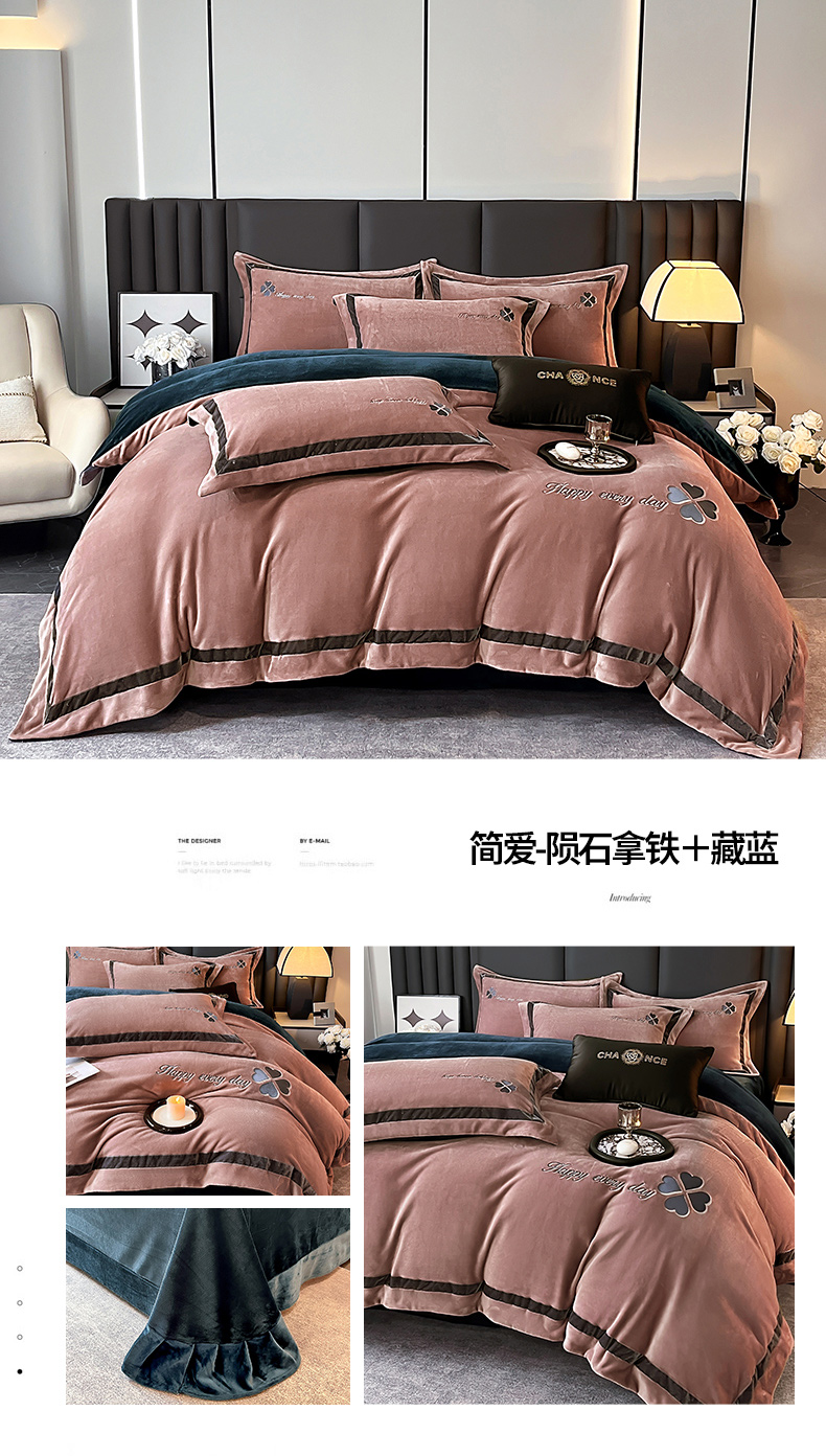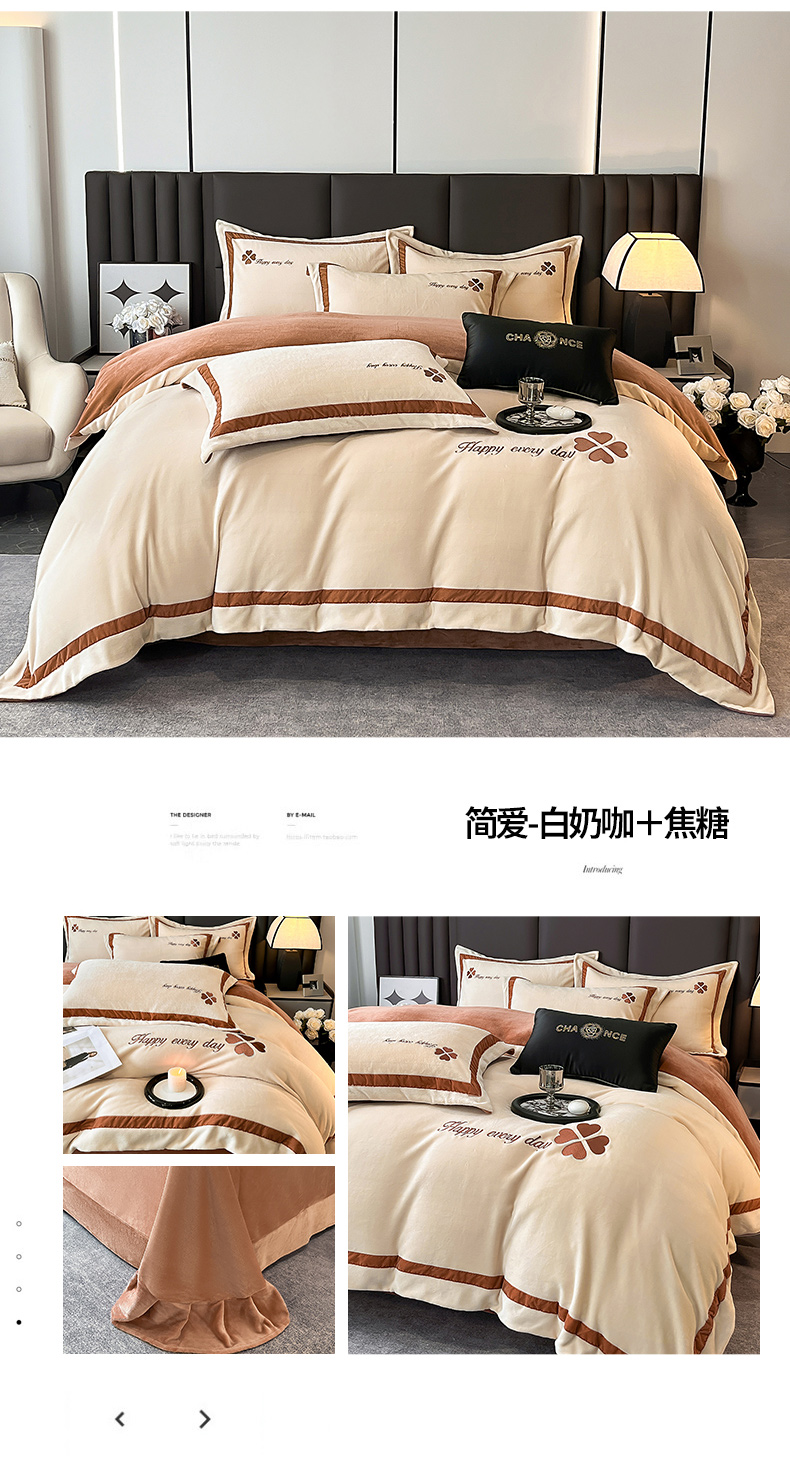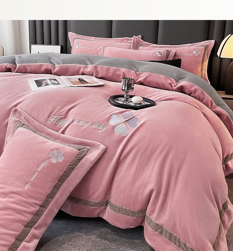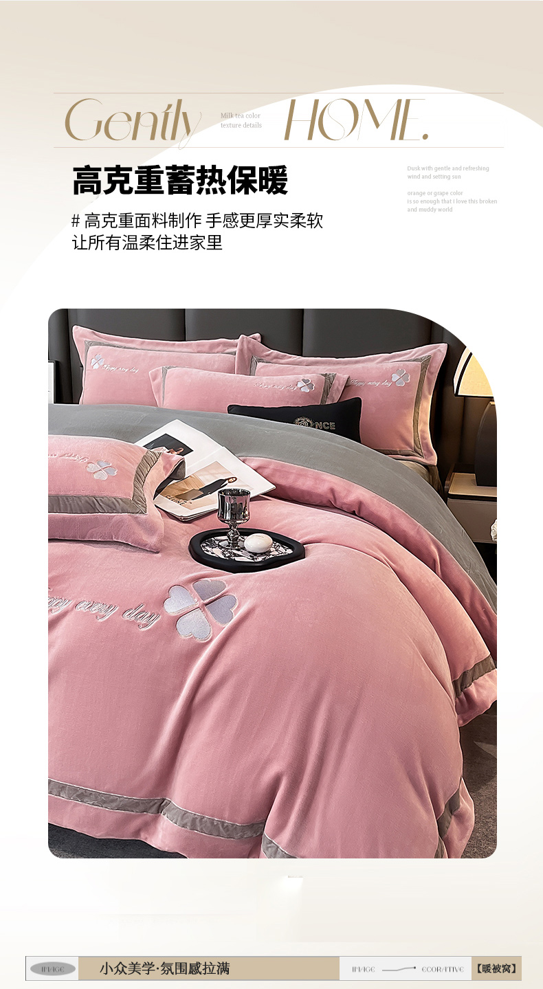 当前位置: 91家纺网 > 商品网购 > 床品套件 > 四件套 > 牛奶绒四件套 > 妮恒美家纺 2025新款牛奶绒刺绣四件套-简爱系列 简爱-豆沙+浅灰