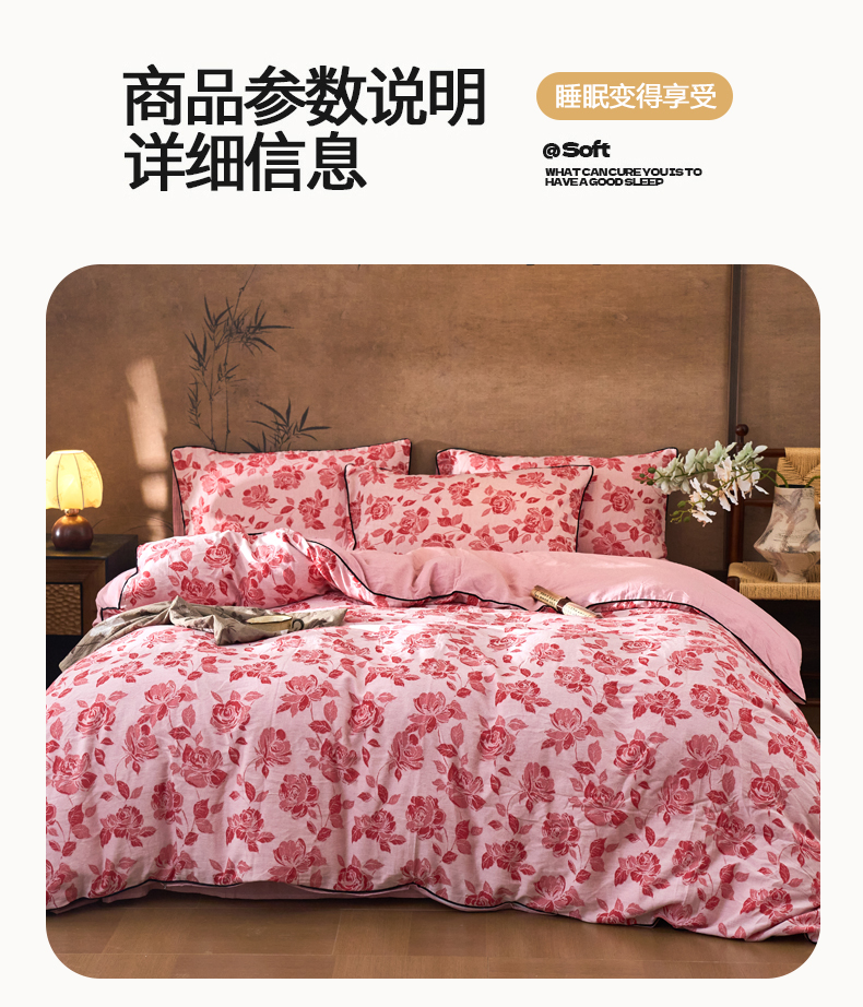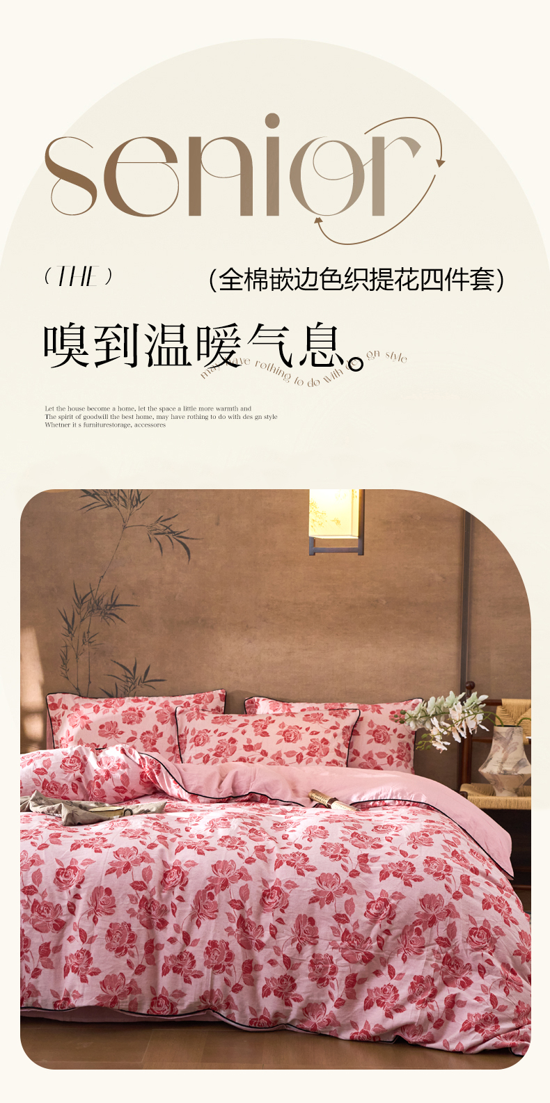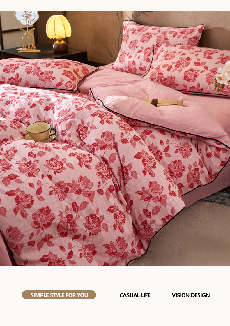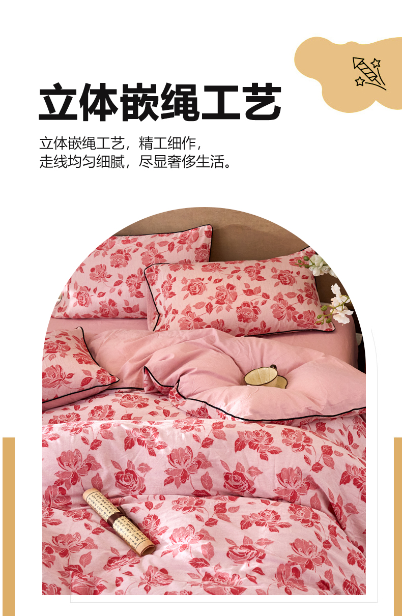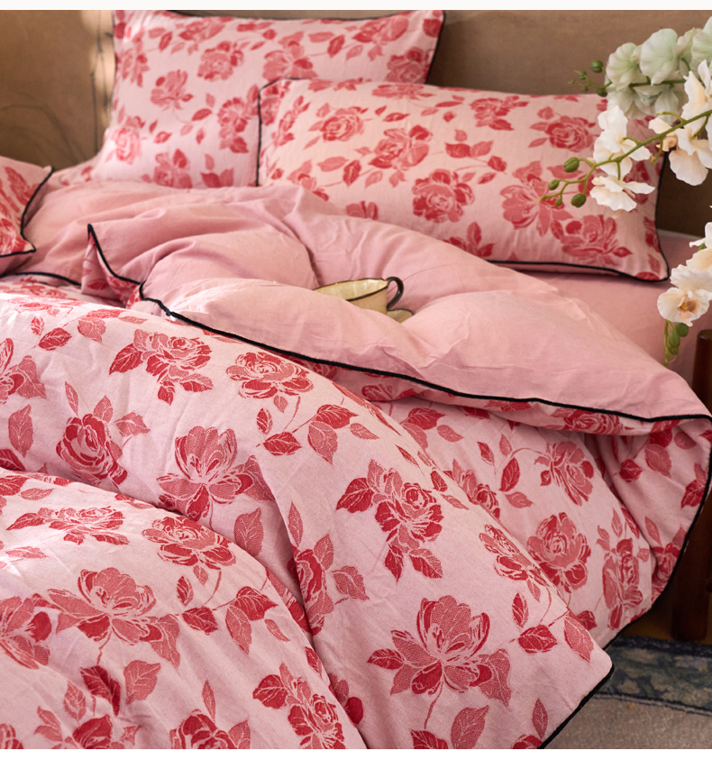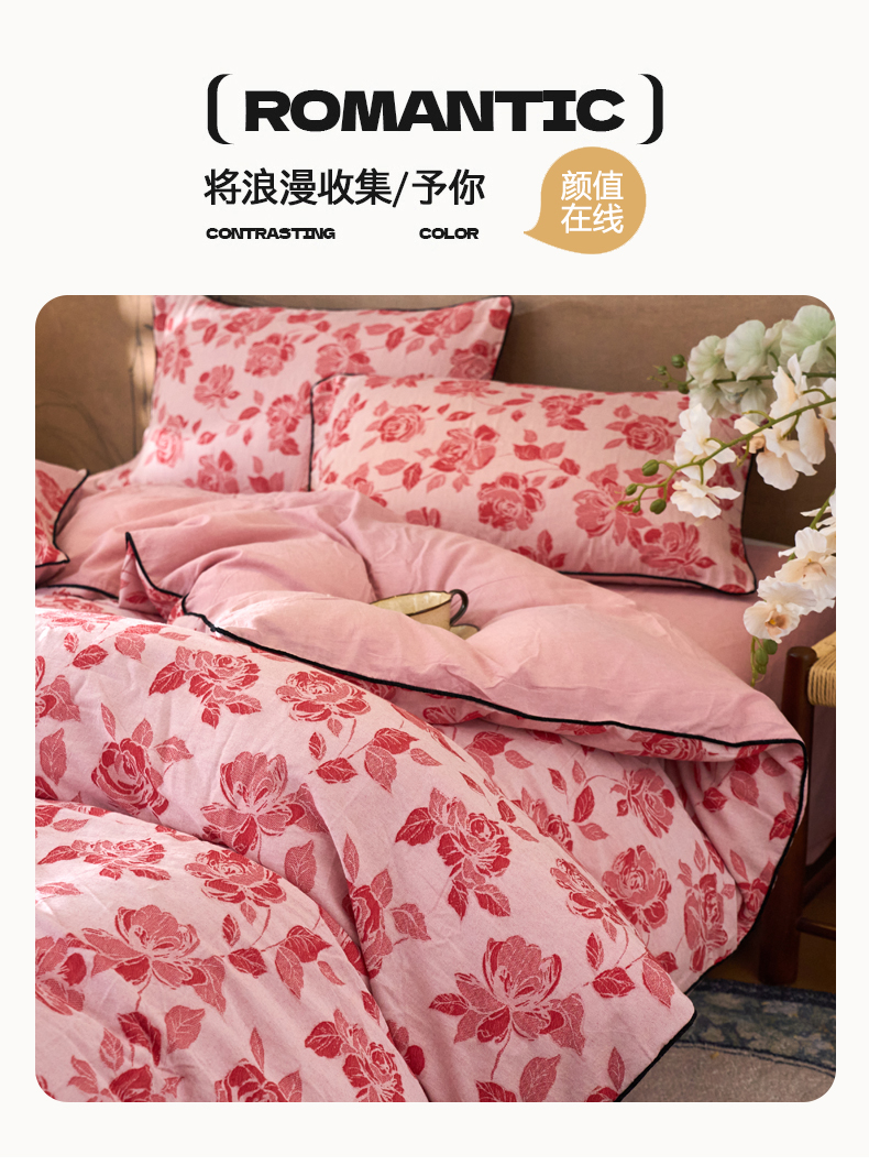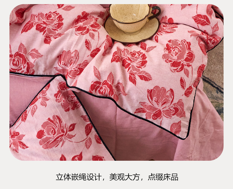 当前位置: 91家纺网 > 商品网购 > 床品套件 > 四件套 > 全棉普通四件套 > 兰紫橙家纺 2025新款全棉纯棉嵌边色织提花四件套 玫瑰之约-大红