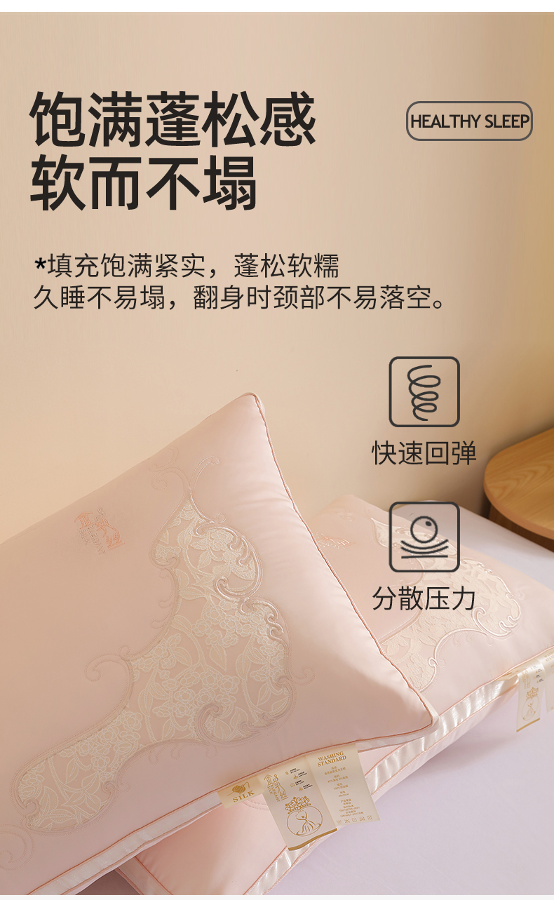 当前位置: 91家纺网 > 商品网购 > 枕头/枕芯/保健枕/颈椎枕 > 枕头枕芯 > 麦肯锡 2025新款金乳丝刺绣羽丝绒枕枕头枕芯 金乳胶丝刺绣羽丝绒枕粉色