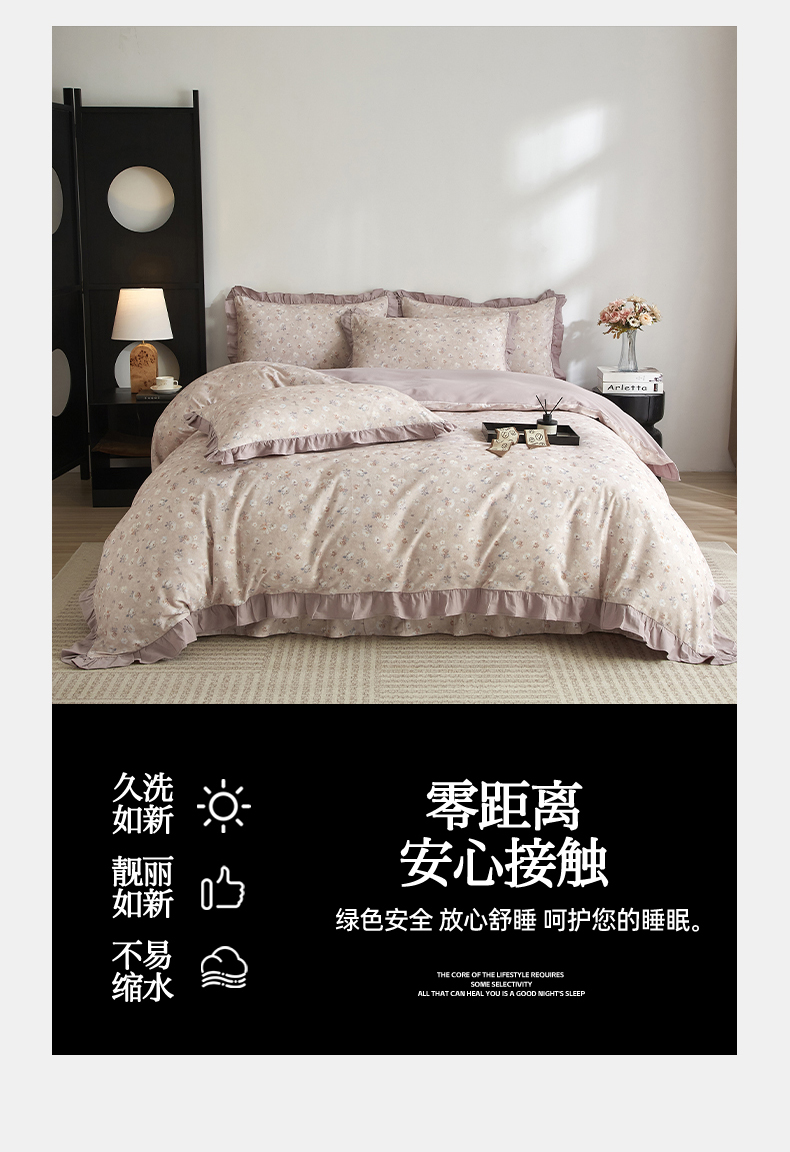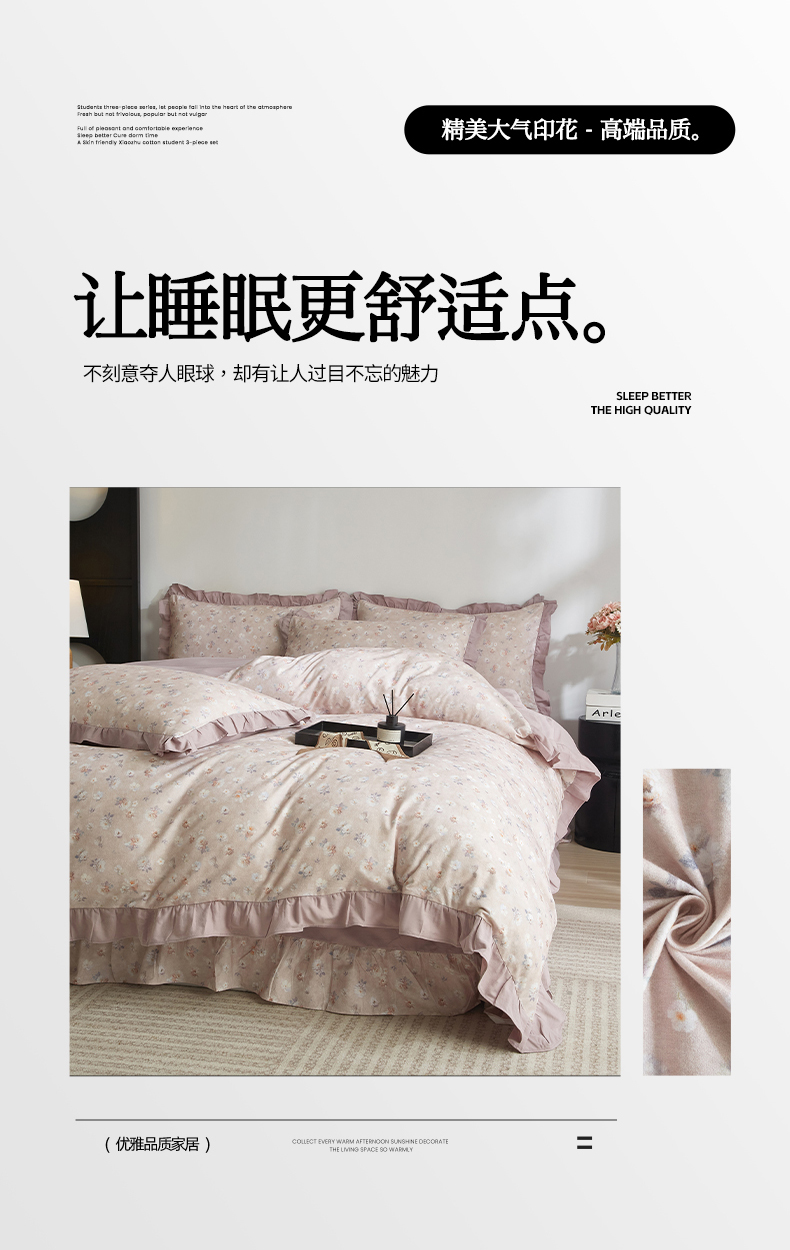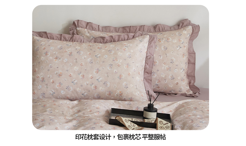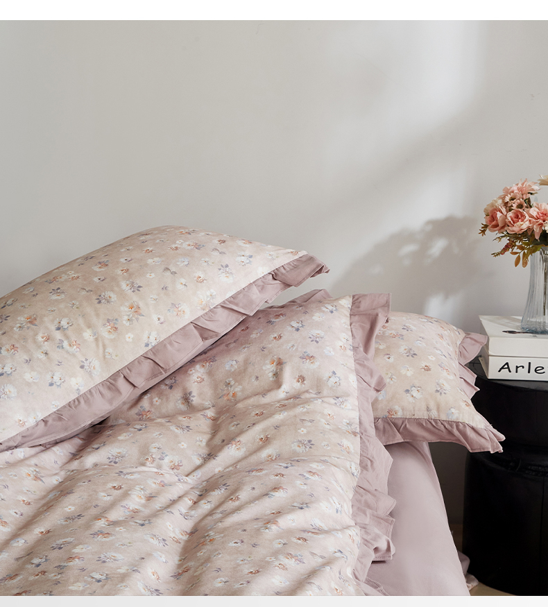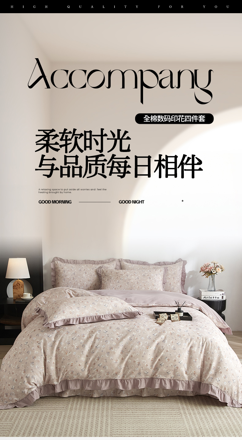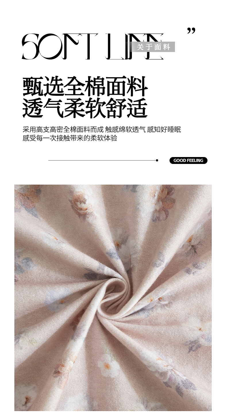 商品名称:金纱玉纺家纺 2025韩版数码印花加厚100%棉四件套 花语初晴-豆沙