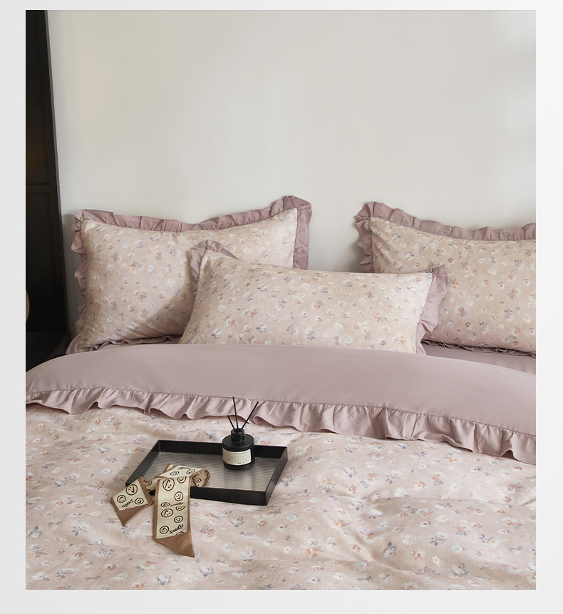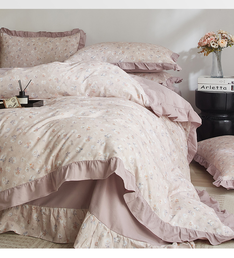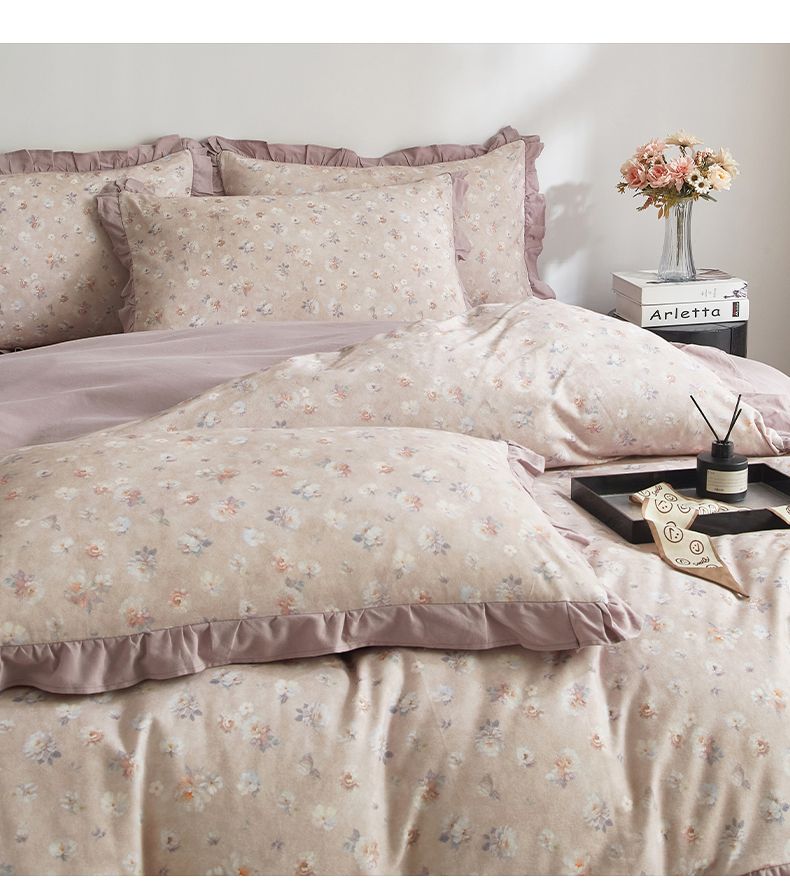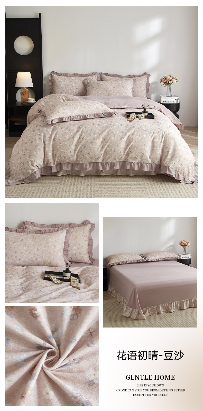 金纱玉纺家纺 2025韩版数码印花加厚100%棉四件套 花语初晴-豆沙