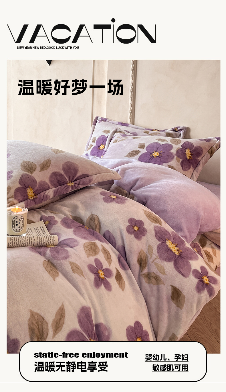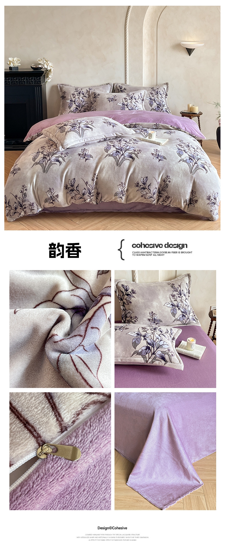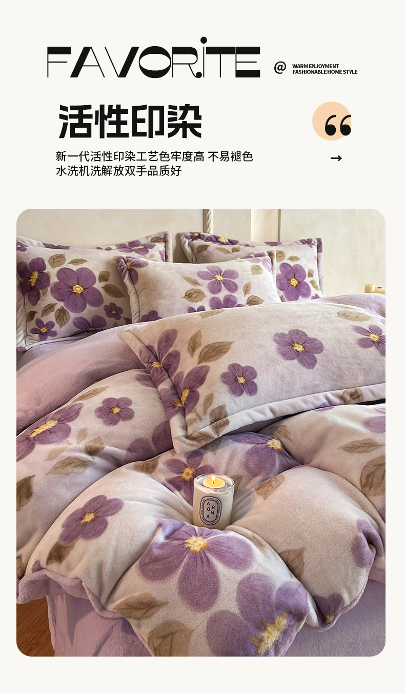 当前位置: 91家纺网 > 商品网购 > 床品套件 > 四件套 > 牛奶绒四件套 > 川悦生活 2025新款轻奢风高克重牛奶绒印花保暖四件套 香妃沐光
