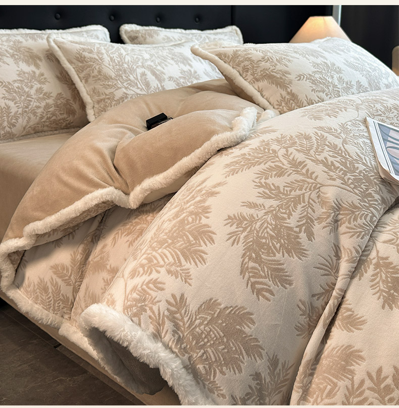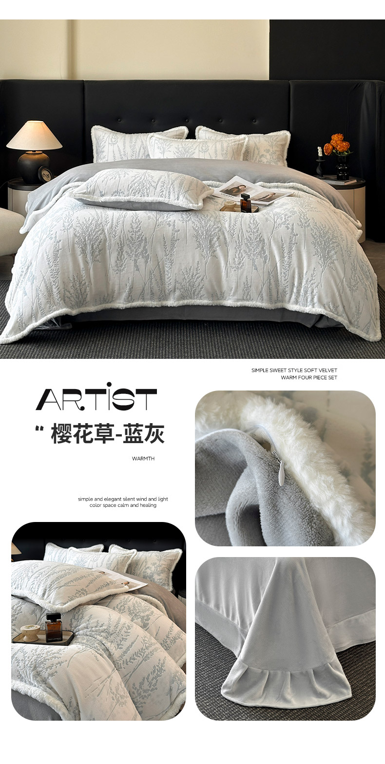 当前位置: 91家纺网 > 商品网购 > 床品套件 > 四件套 > 牛奶绒四件套 > 金阳光家纺 2025新款A类雕花绒兔毛包边牛奶绒四件套 繁花倾心-粉色