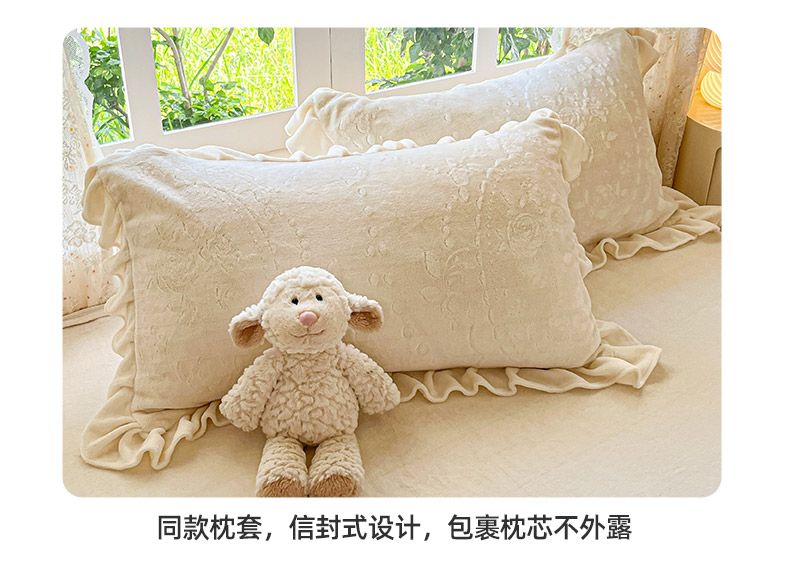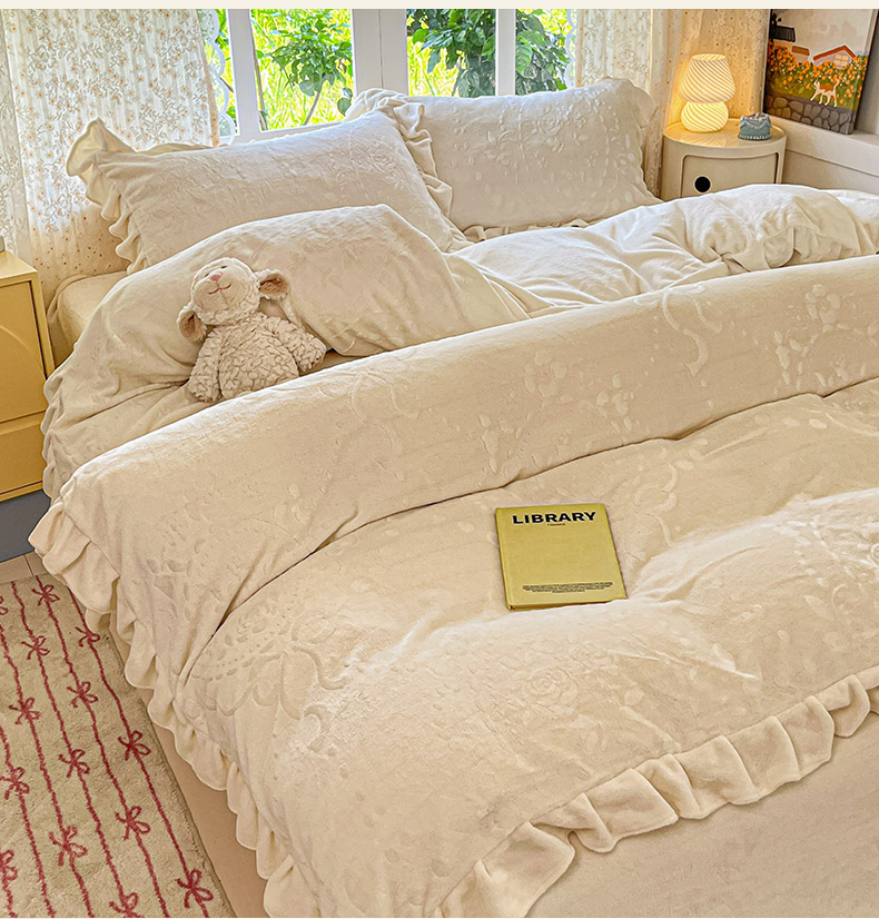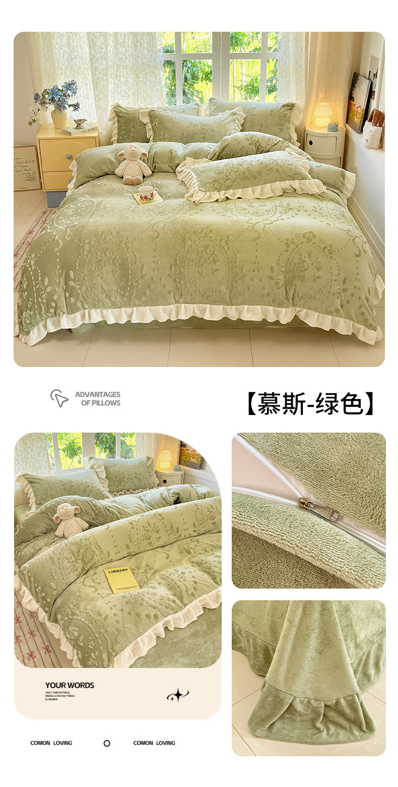 金阳光家纺 2025新款A类花边款法式风立体雕花牛奶绒四件套-慕斯系列 慕斯-绿色