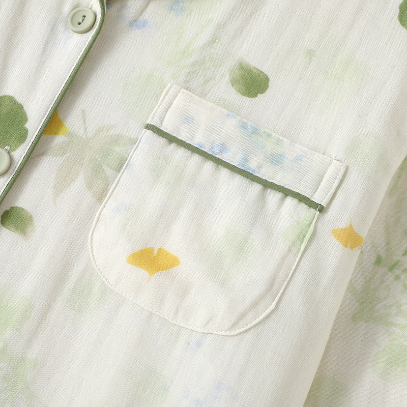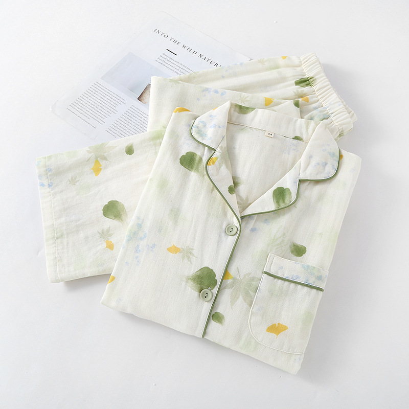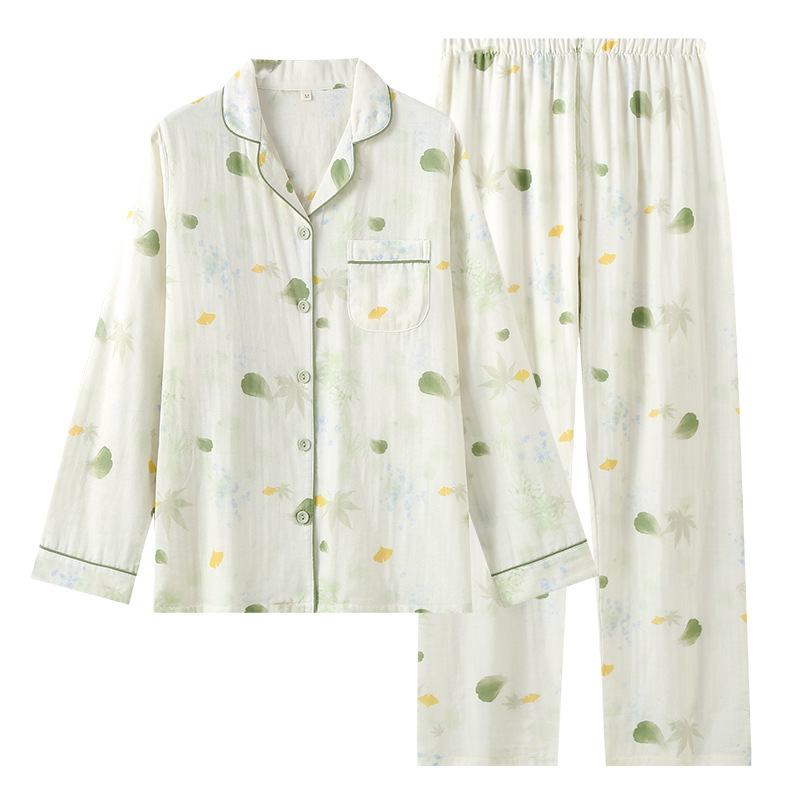 商品名称:(总)洛兰沙家居馆【只代发】【只代发】2025新款日系简约纯棉双层纱布女士睡衣春秋夏季薄款长袖长裤可外穿家居服