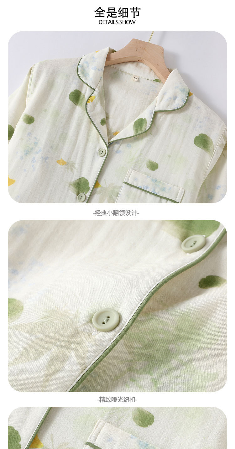 (总)洛兰沙家居馆【只代发】【只代发】2025新款日系简约纯棉双层纱布女士睡衣春秋夏季薄款长袖长裤可外穿家居服