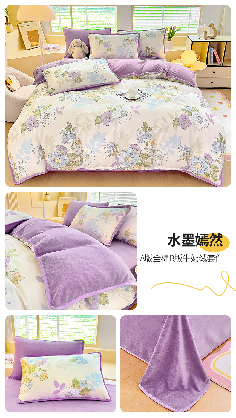 当前位置: 91家纺网 > 商品网购 > 床品套件 > 四件套 > 牛奶绒四件套 > 琪琪阁家纺 2025新款A类全棉纯棉加牛奶绒包边款单被套四件套 花满城