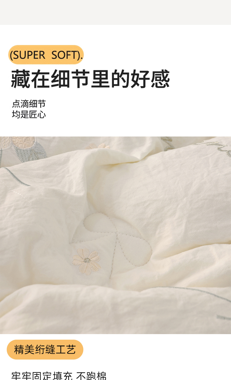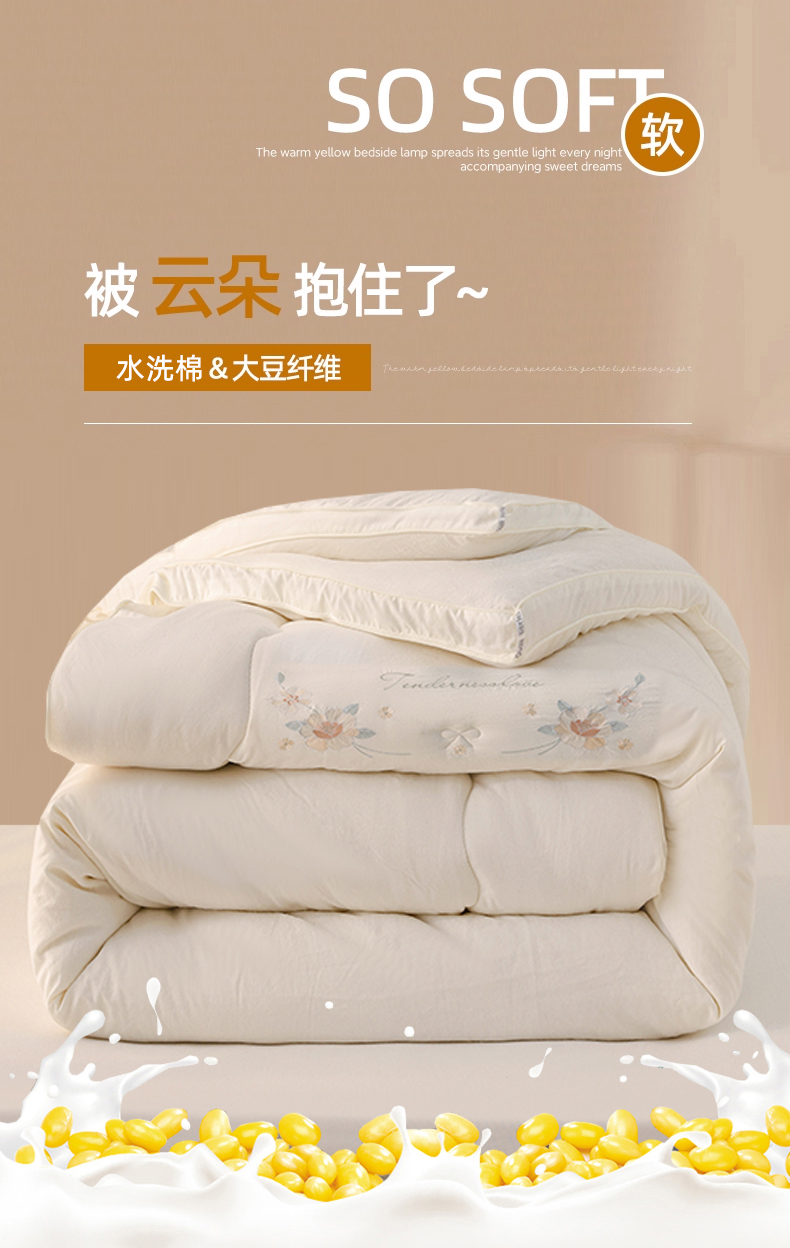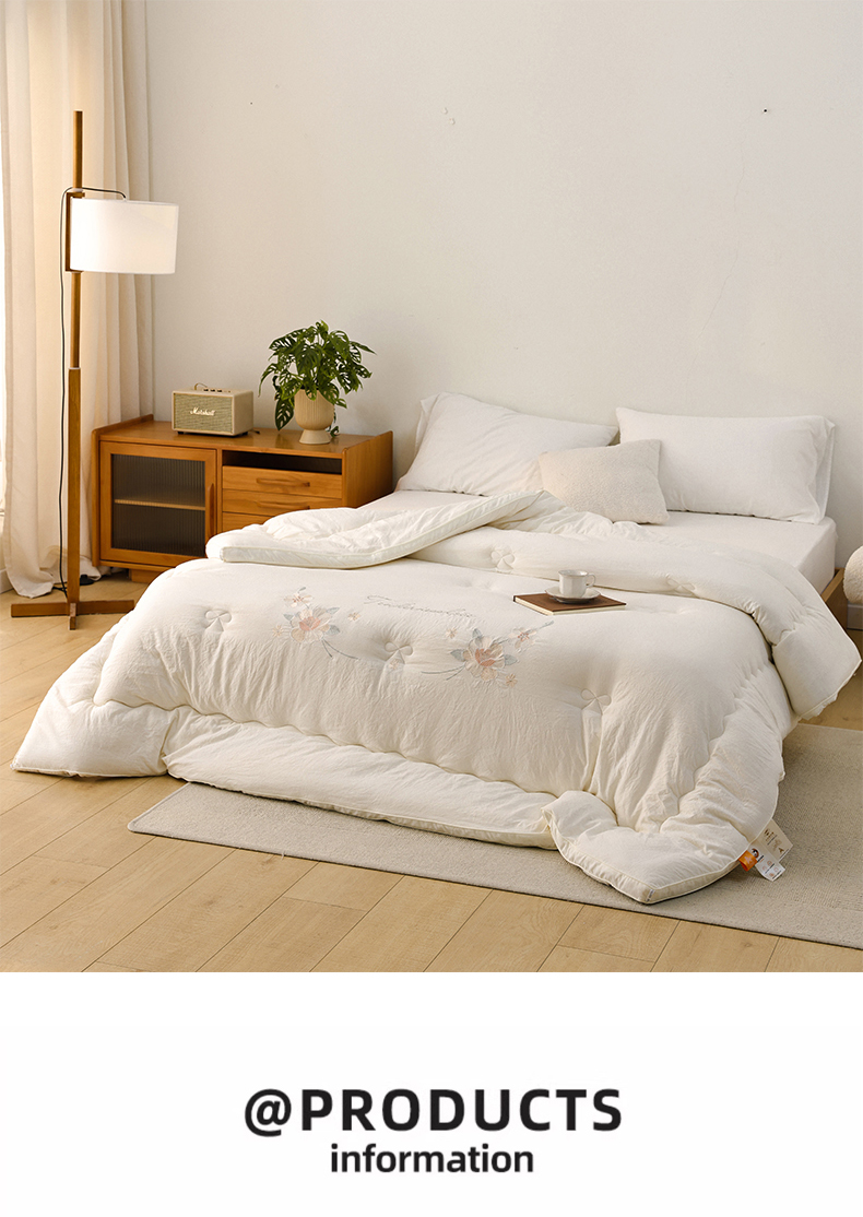 商品名称:雯雨家纺 2025新款A类绣花立体麻绳大豆被被子冬被春秋被被芯纤维被冬被被子被芯 绣花-白