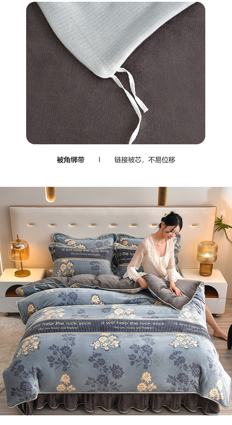 商品名称:亿品2025直播爆款9.5斤牛奶绒四件套加厚保暖床裙四件套 拾光里