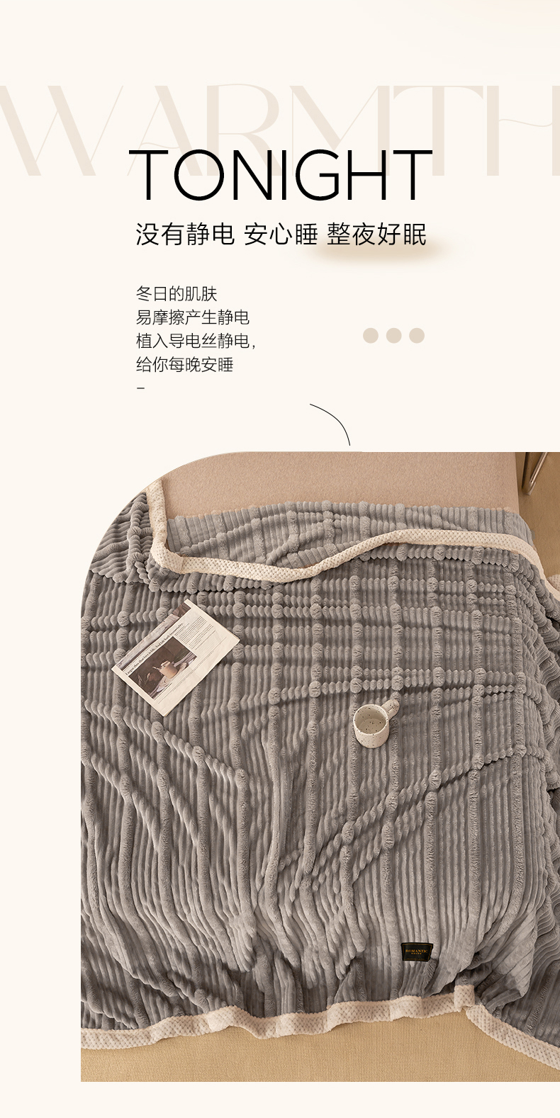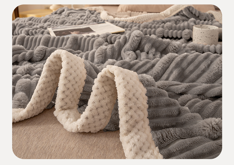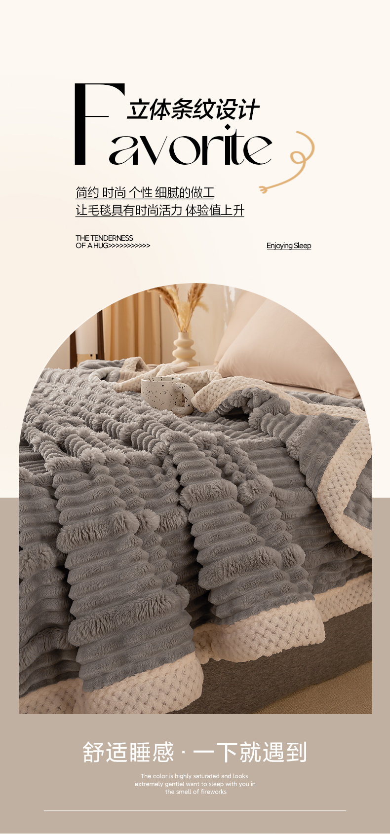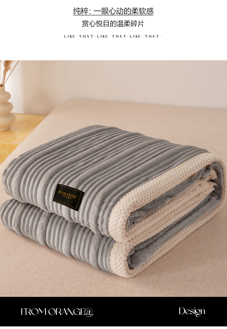 商品名称:雅诗帛 2025新款A类兔毛绒子母条毛毯双面云朵绒毛毯宿舍牛奶绒小被毯轻奢时尚加厚保暖盖毯休闲绒毯毯子 高级灰