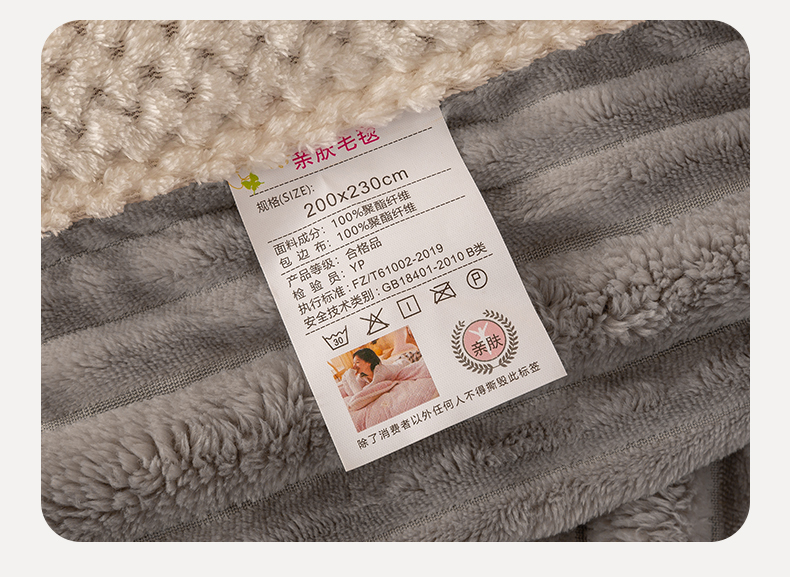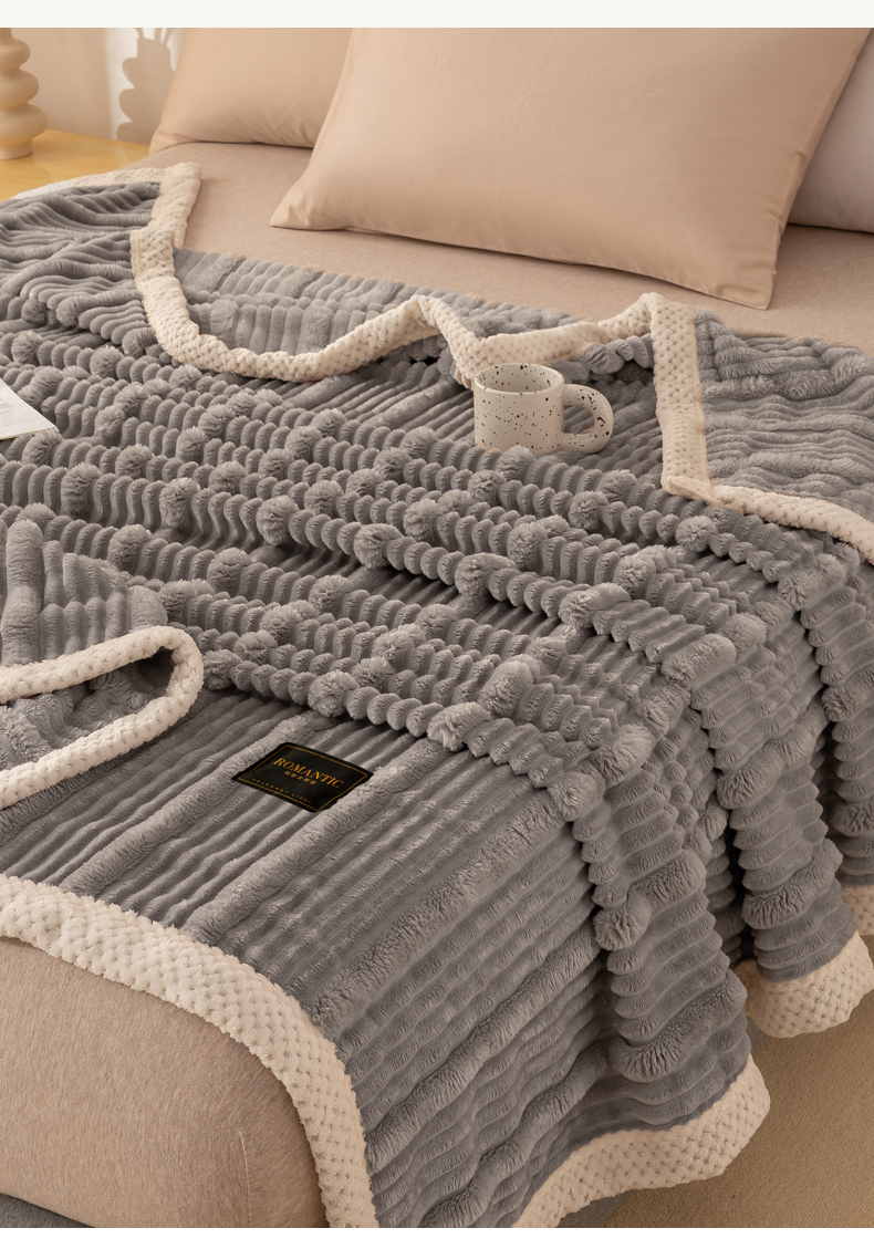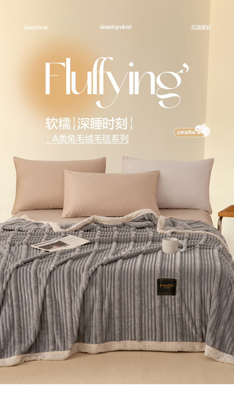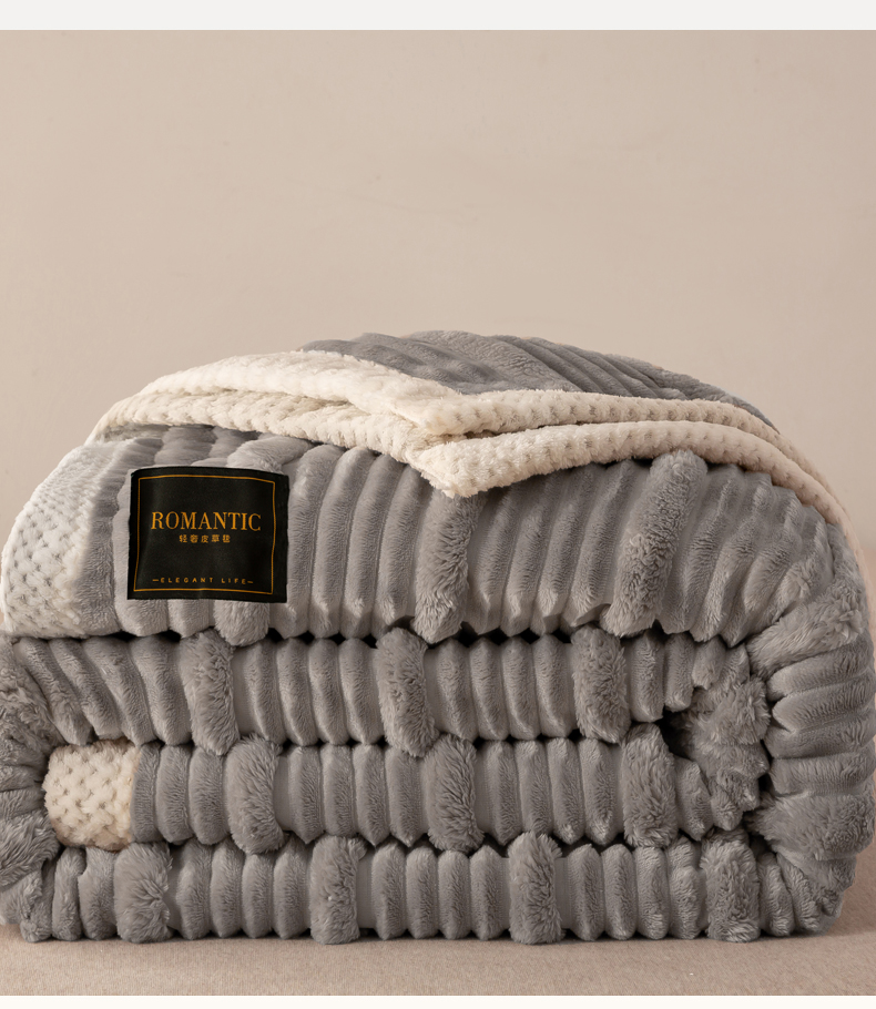 商品名称:雅诗帛 2025新款A类兔毛绒子母条毛毯双面云朵绒毛毯宿舍牛奶绒小被毯轻奢时尚加厚保暖盖毯休闲绒毯毯子 高级灰