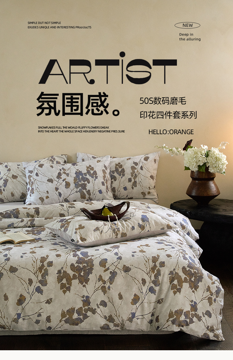 当前位置: 91家纺网 > 商品网购 > 床品套件 > 四件套 > 全棉普通四件套 > FORTWO家纺原创设计(FOR TWO家纺) 2025新款50全棉纯棉数码磨毛印花四件套-场景一 组合图仅做展示不可下单