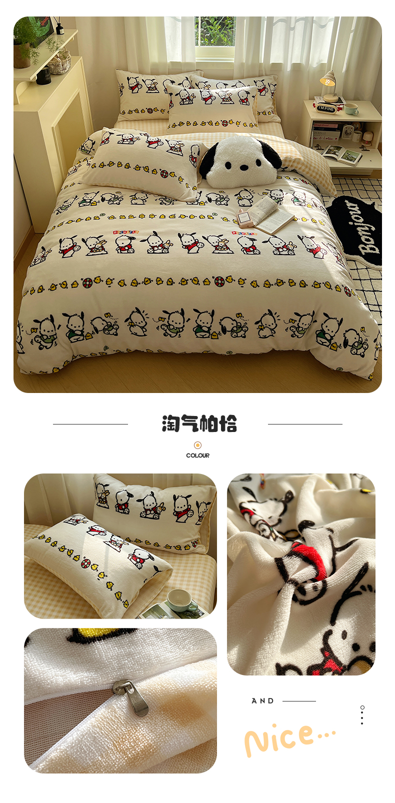 当前位置: 91家纺网 > 商品网购 > 床品套件 > 四件套 > 牛奶绒四件套 > 三朵家纺 2025新款三丽鸥印花牛奶绒四件套 字母帕恰