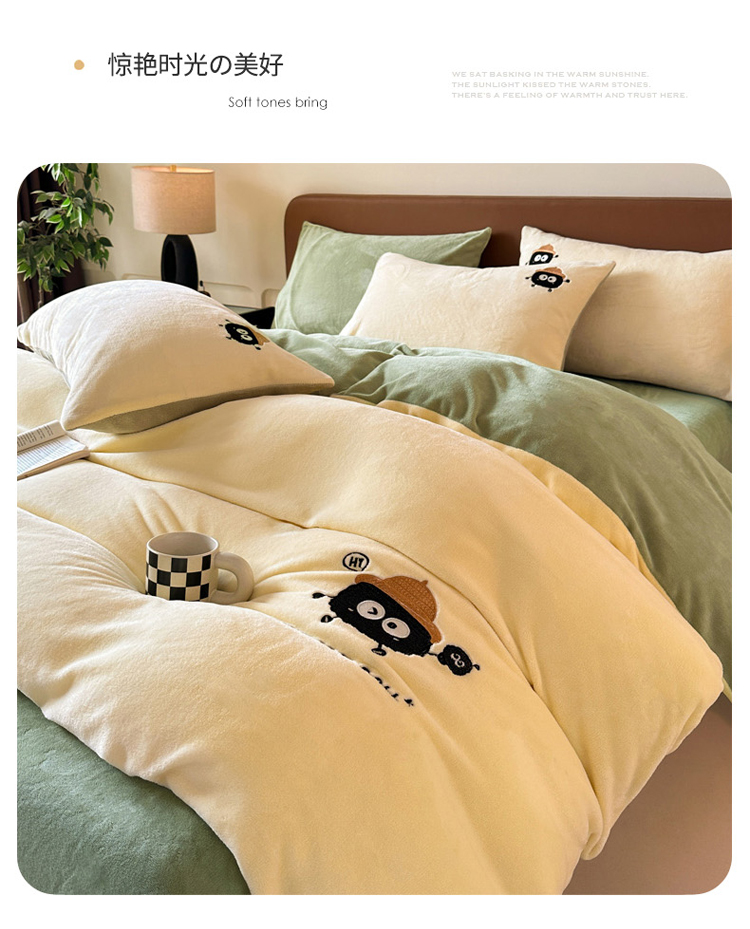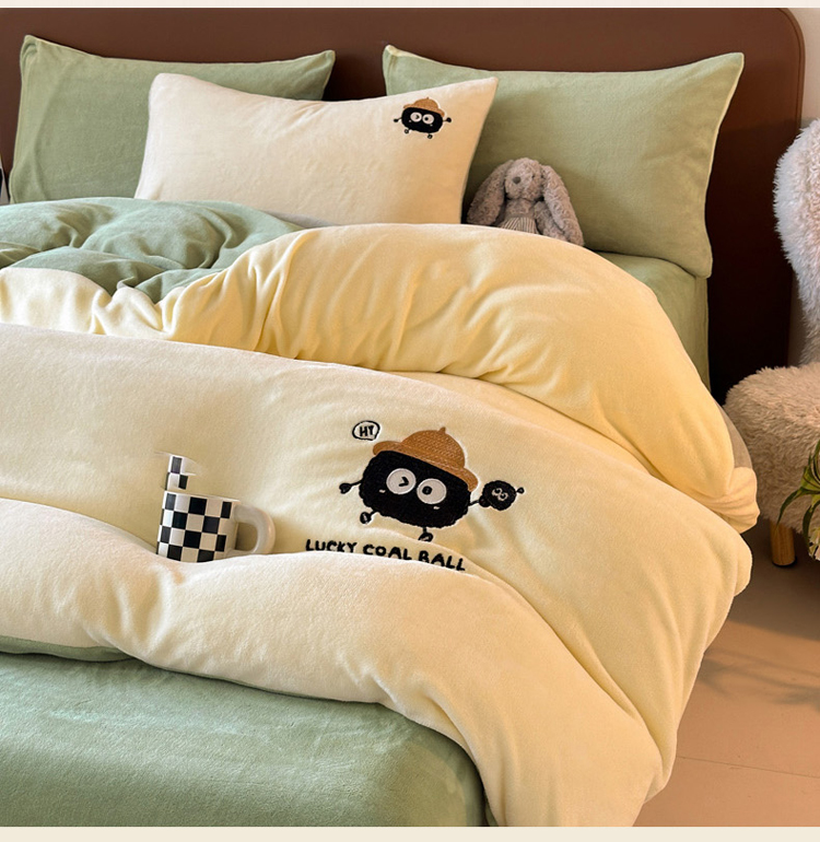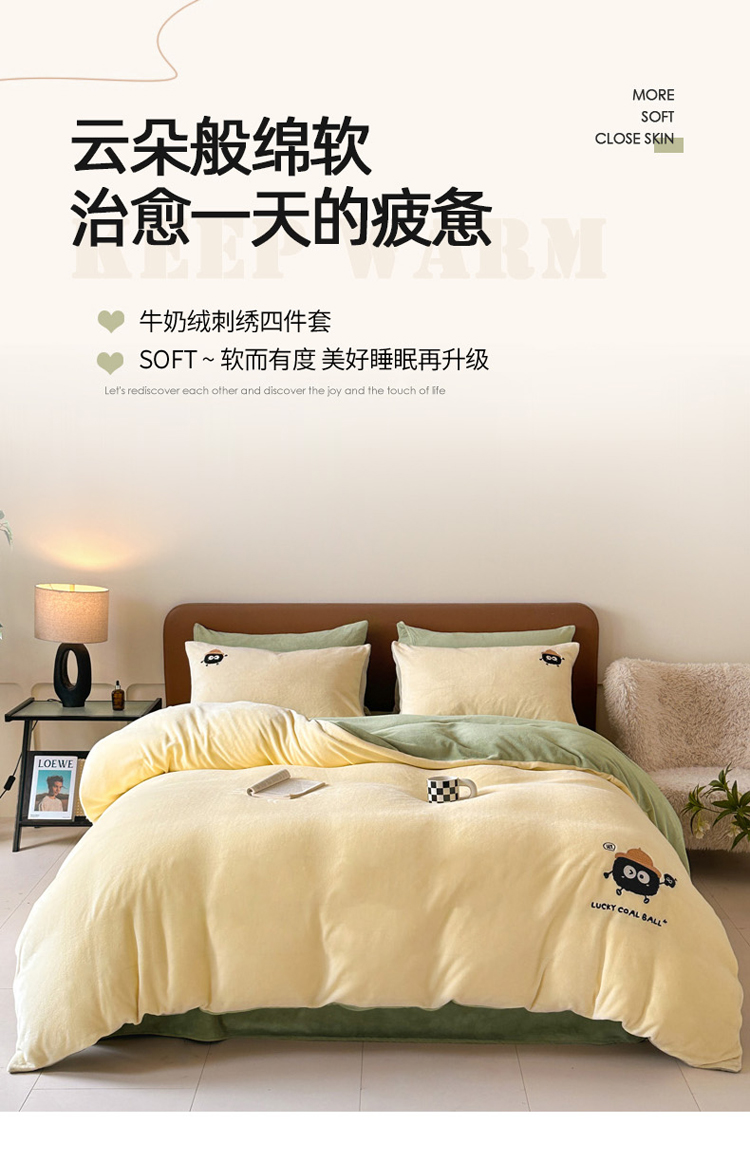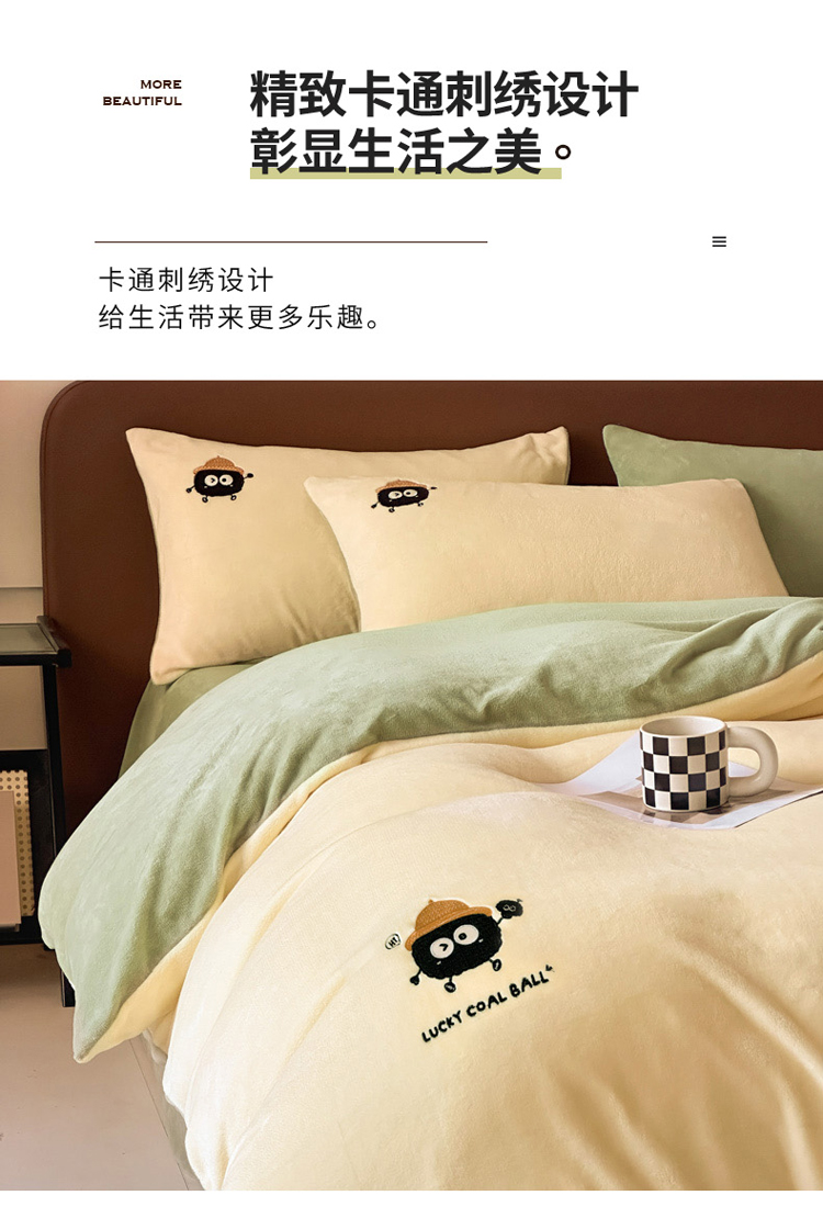 当前位置: 91家纺网 > 商品网购 > 床品套件 > 四件套 > 牛奶绒四件套 > 万盛家纺 2025新款卡通贴补绣牛奶绒四件套煤球-奶油黄-绿