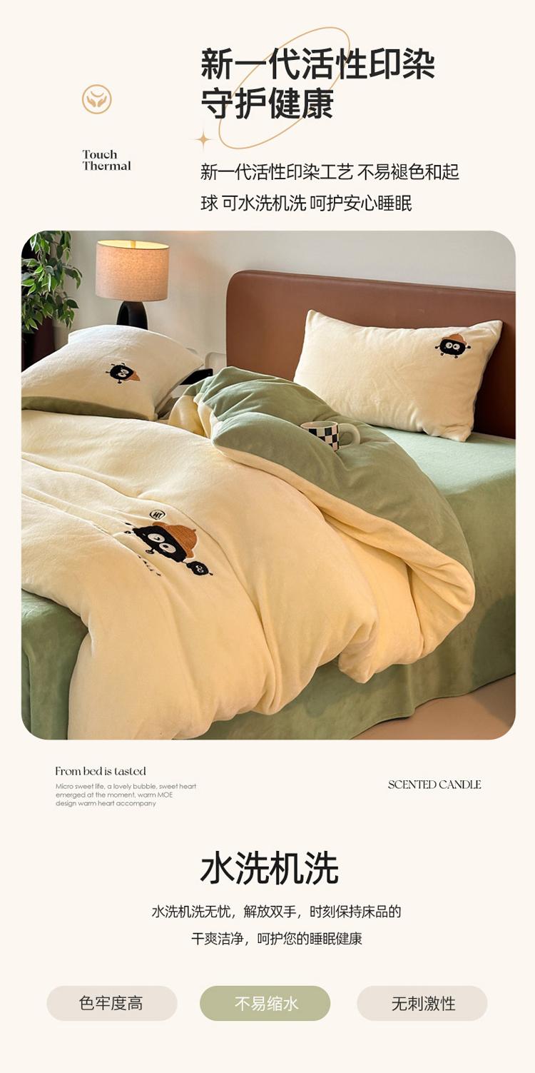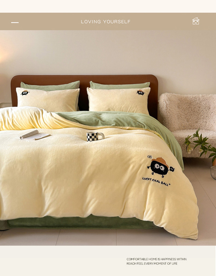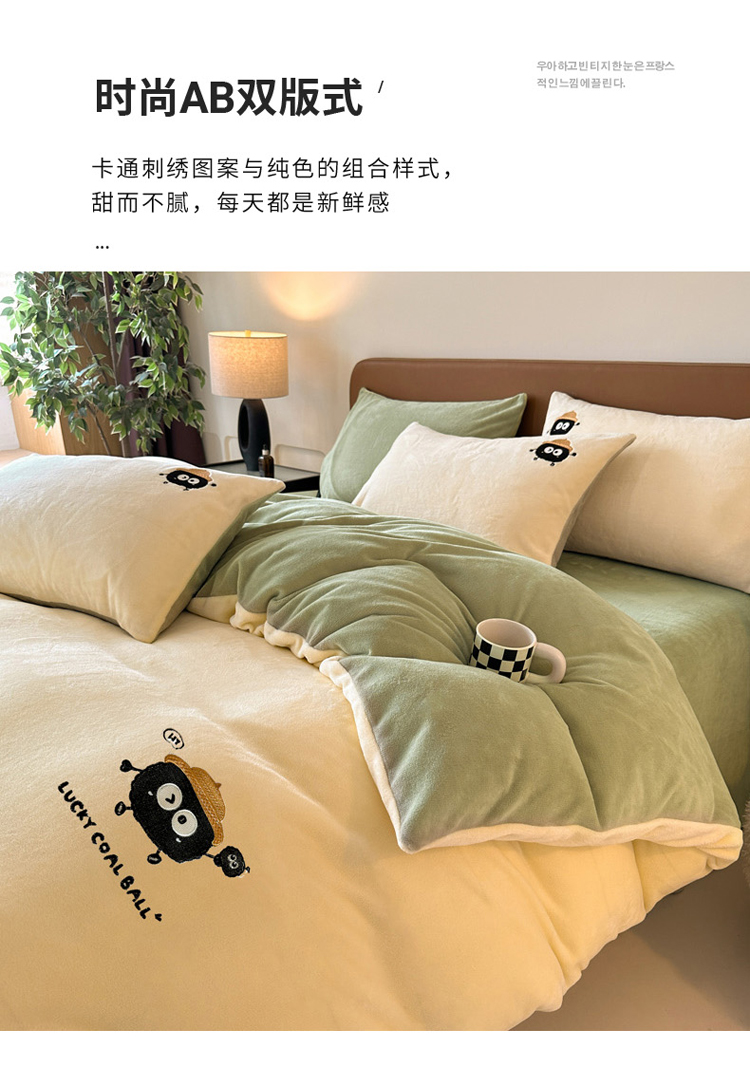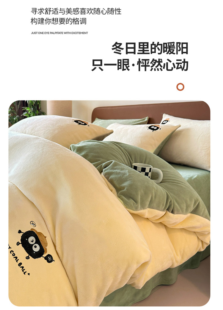 当前位置: 91家纺网 > 商品网购 > 床品套件 > 四件套 > 牛奶绒四件套 > 万盛家纺 2025新款卡通贴补绣牛奶绒四件套煤球-奶油黄-绿