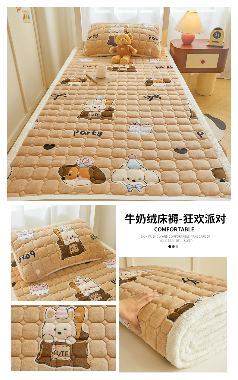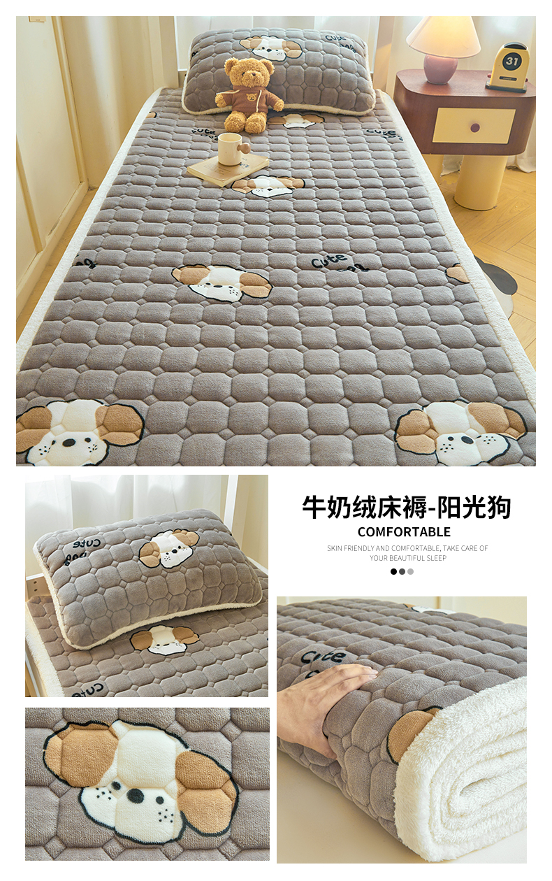 • 91家纺网 家纺一手货源 找家纺 雯豆家纺 【加厚款】2025新款牛奶绒床褥床垫学生宿舍床护垫子 牛奶绒床褥-假日小狗【加厚款】