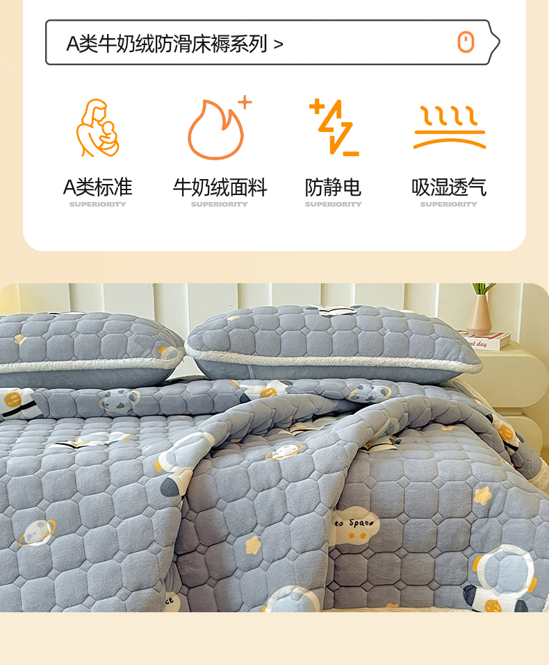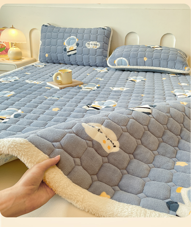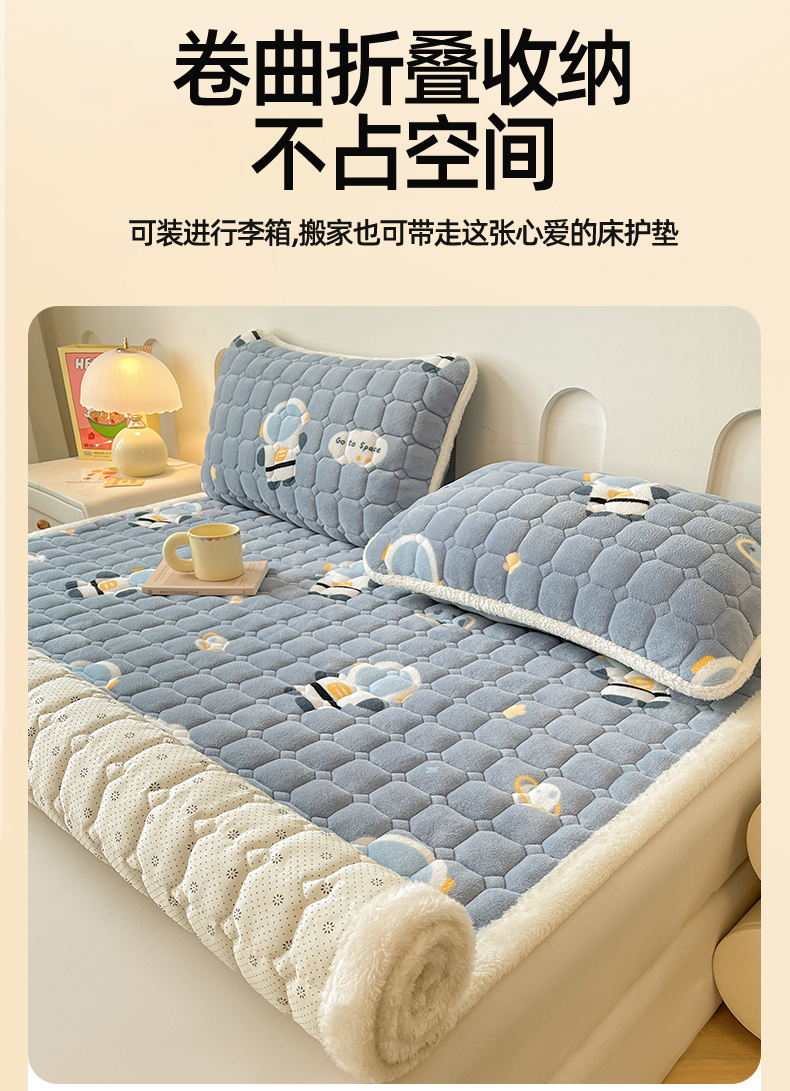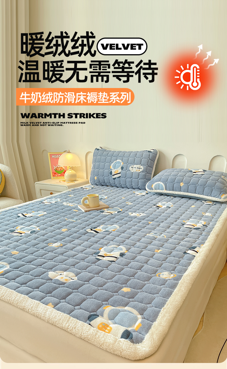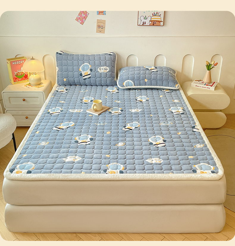 • 91家纺网 家纺一手货源 找家纺 雯豆家纺 【加厚款】2025新款牛奶绒床垫床护垫印花小清新床褥床垫子 牛奶绒床褥-小小太空人【加厚款】