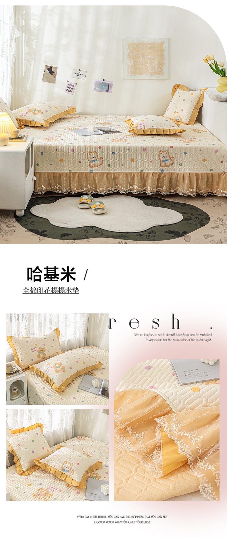 • 91家纺网 家纺一手货源 找家纺 美优兰 2025新款全棉防滑榻榻米炕垫纯棉床盖三件套 哈基米