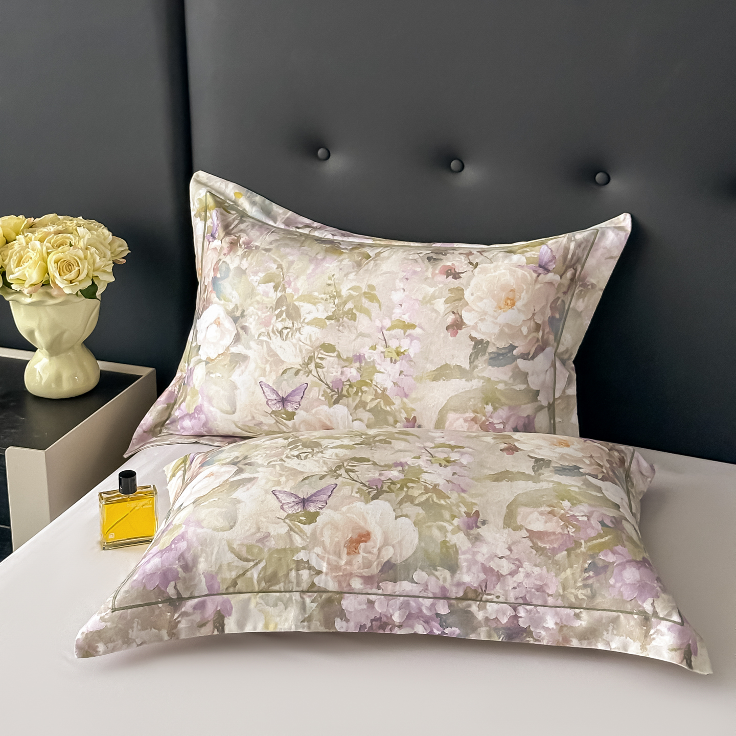 商品名称:益利多 2025新款纯棉A类全棉枕套加厚磨毛印花两只装枕头套信封开口48x74/50x80 雾野花蝶绿