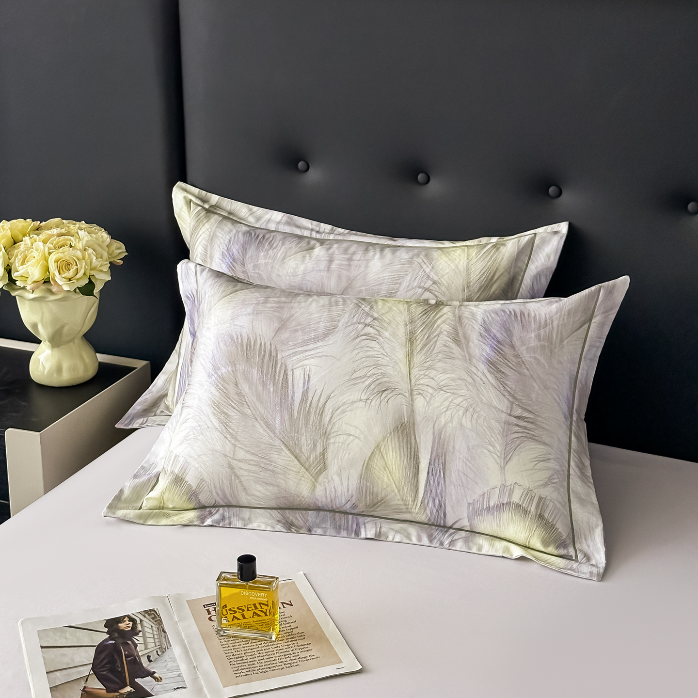 益利多 2025新款纯棉A类全棉枕套加厚磨毛印花两只装枕头套信封开口48x74/50x80 雾野花蝶绿