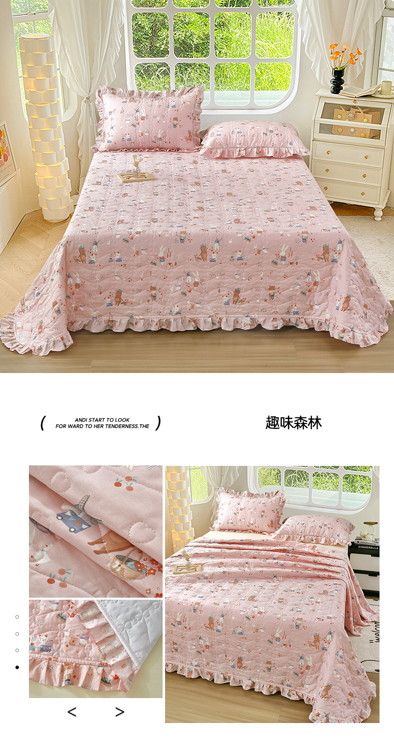 (总)益利多 2025新款130*70全棉斜纹夹棉绗缝小花边床盖纯棉加厚床盖三件套,薄荷微风,初野,动物乐园,繁花似锦,欢乐派,简逸,橘络,萌萌熊,青枝绿叶,清风佳人,趣味森林