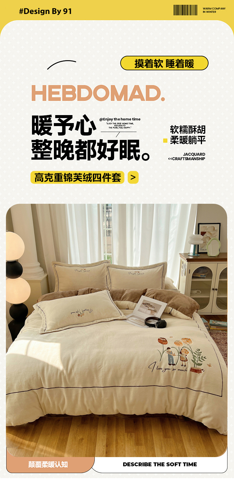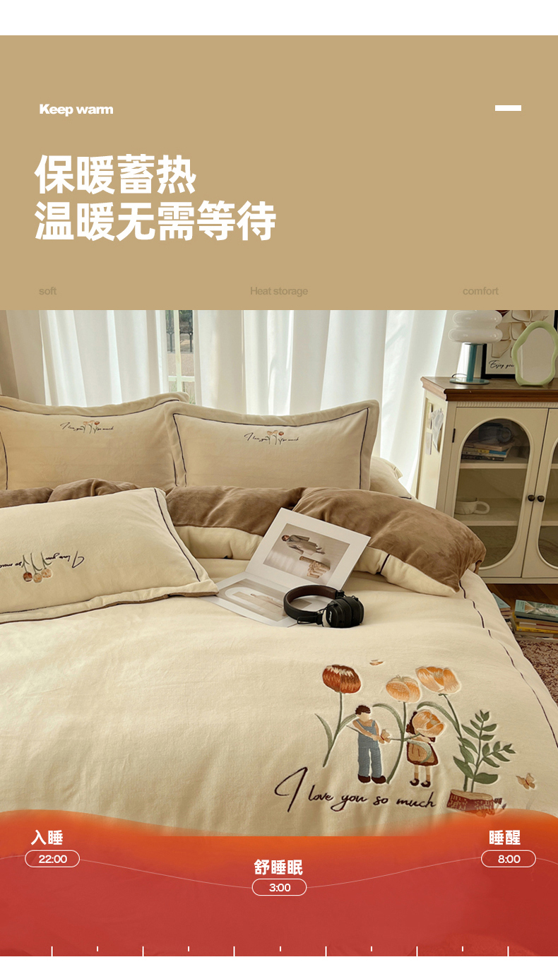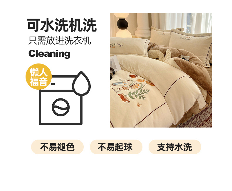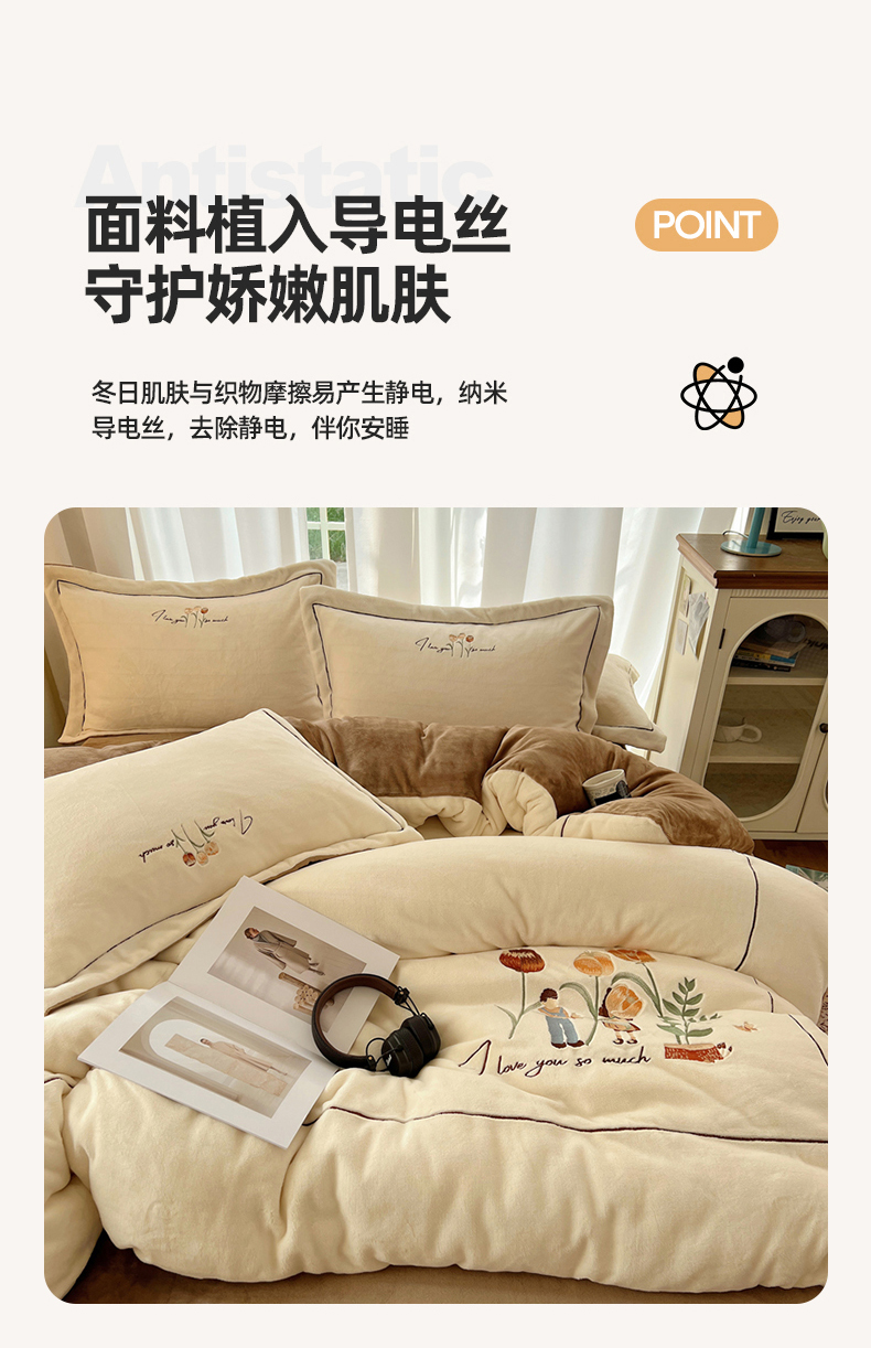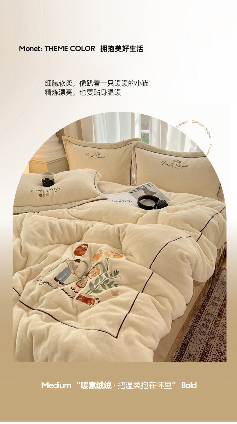 商品名称:丽涵家纺 2025新款全工艺消光锦芙绒绣花四件套 奶白咖