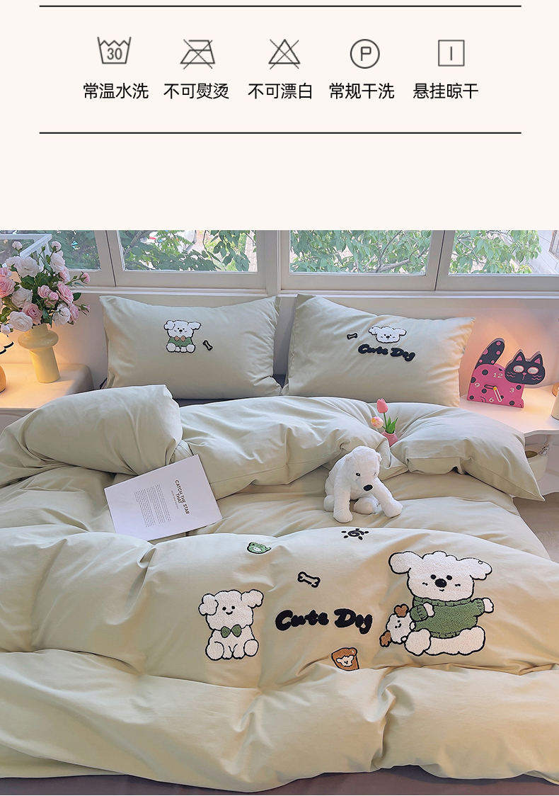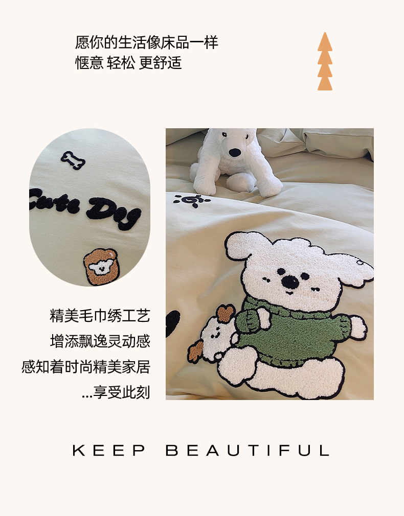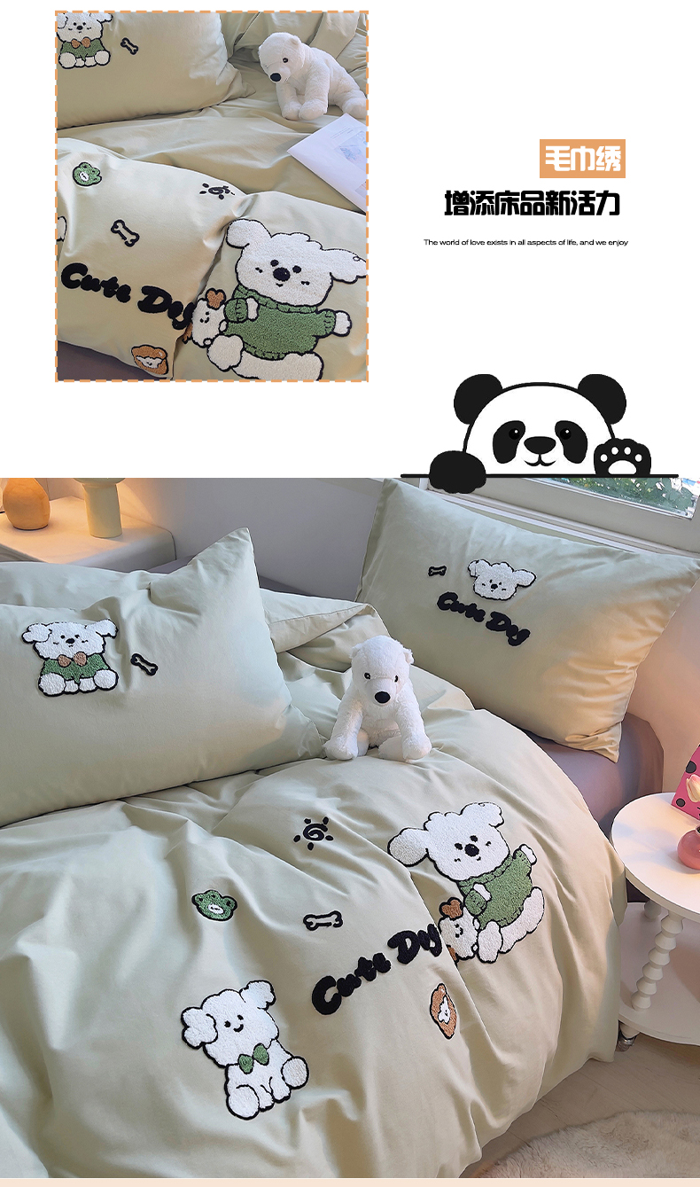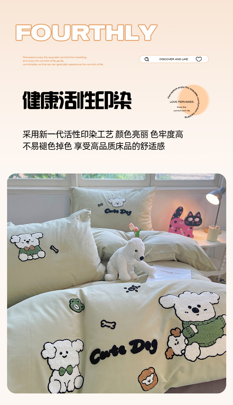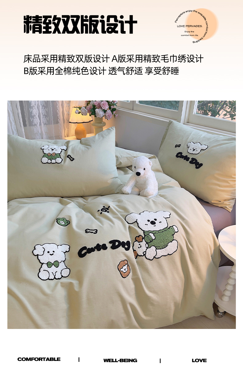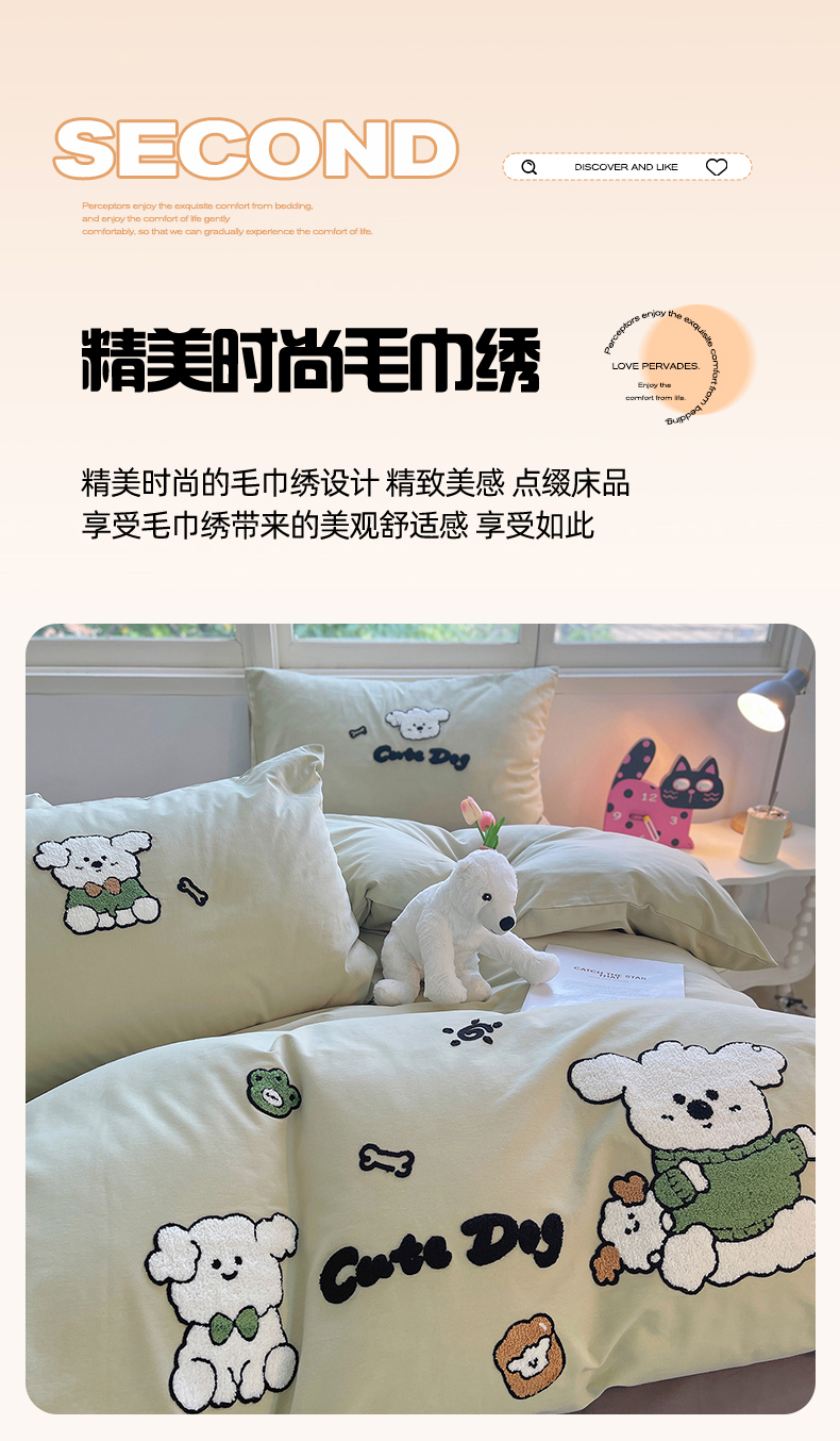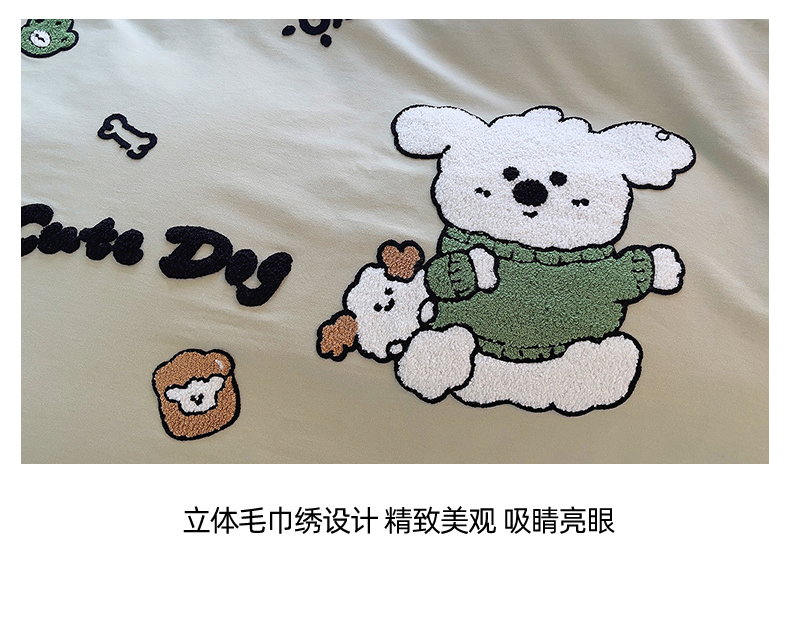 炫拼家纺 2025新款全棉磨毛卡通毛巾绣加厚纯棉四件套-可梦系列 可梦-乖乖狗