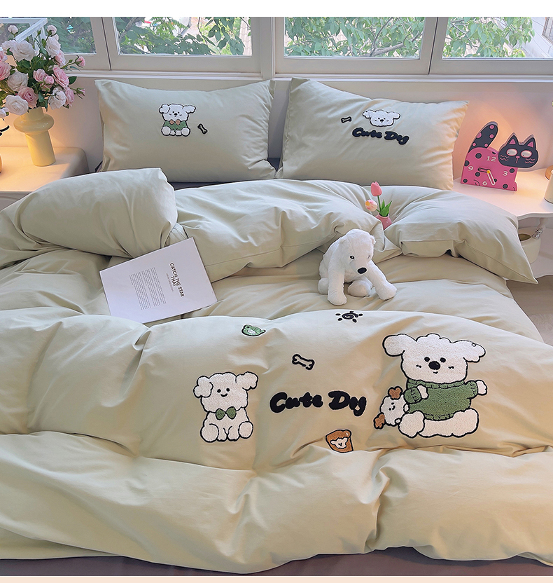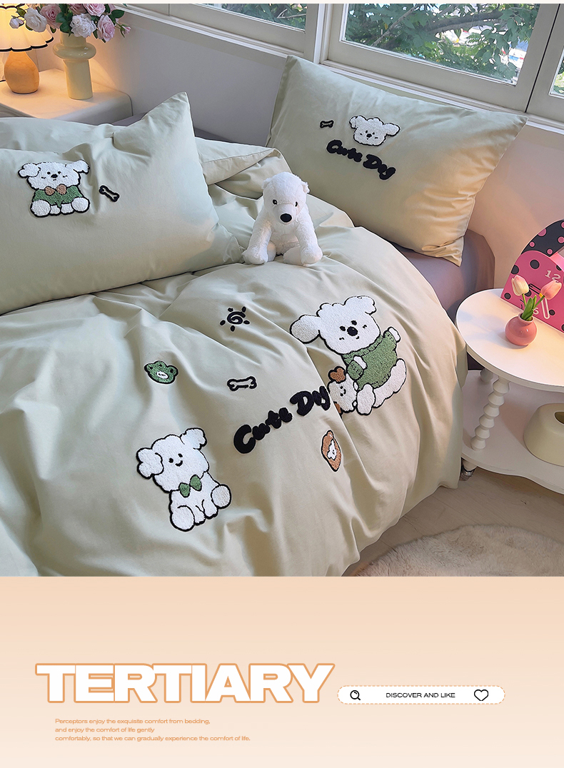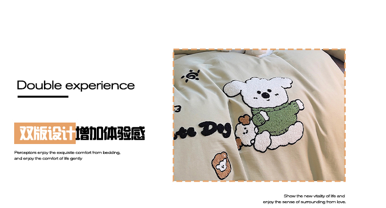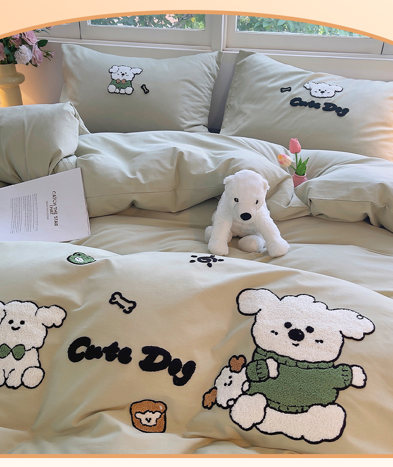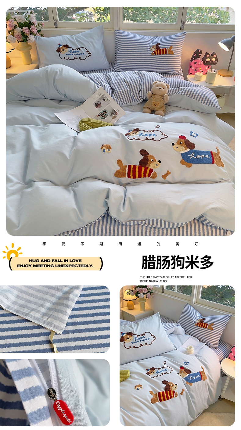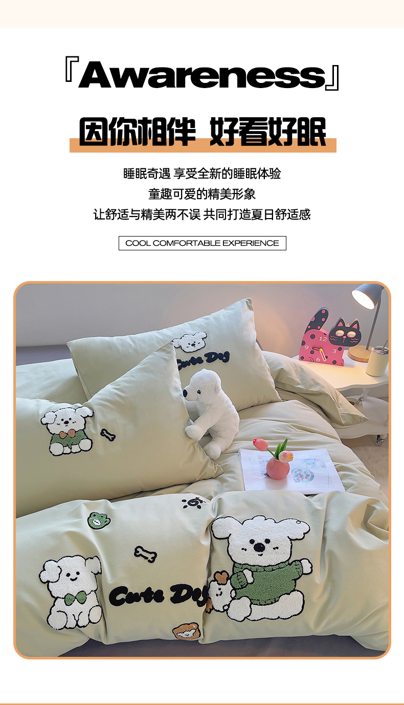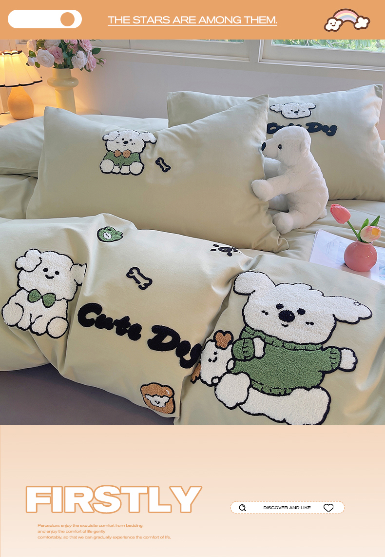 炫拼家纺 2025新款全棉磨毛卡通毛巾绣加厚纯棉四件套-可梦系列 可梦-乖乖狗